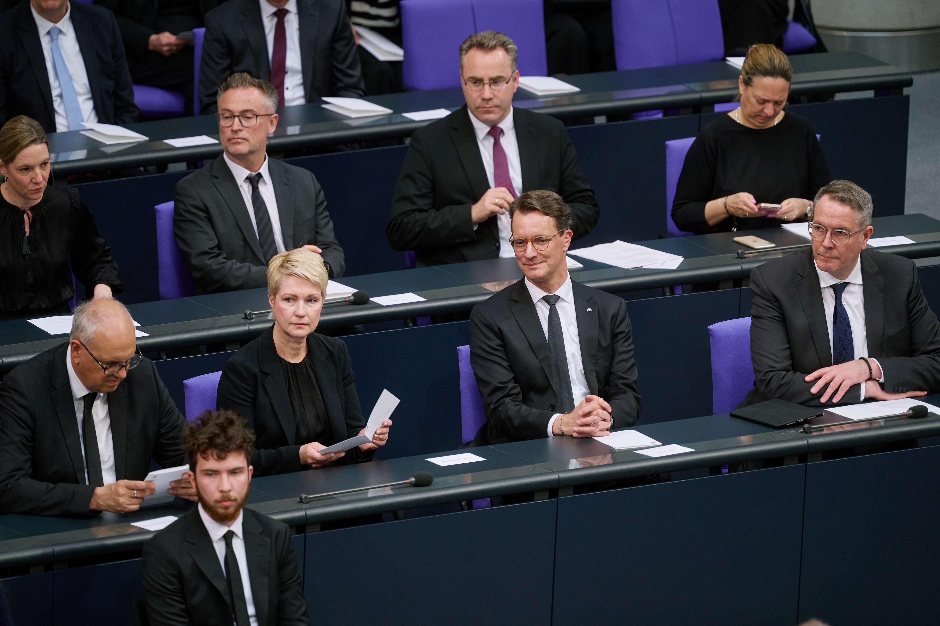 Der Deutsche Bundestag hat am Donnerstag, 8. Mai 2025, an das Ende des Zweiten Weltkriegs und der nationalsozialistischen Gewaltherrschaft in Europa vor 80 Jahren erinnert. Die deutsche Wehrmacht hatte am 8. Mai 1945 bedingungslos kapituliert. An der Gedenkstunde im Reichstagsgebäude nahm Ministerpräsident Hendrik Wüst für das Land Nordrhein-Westfalen teil.