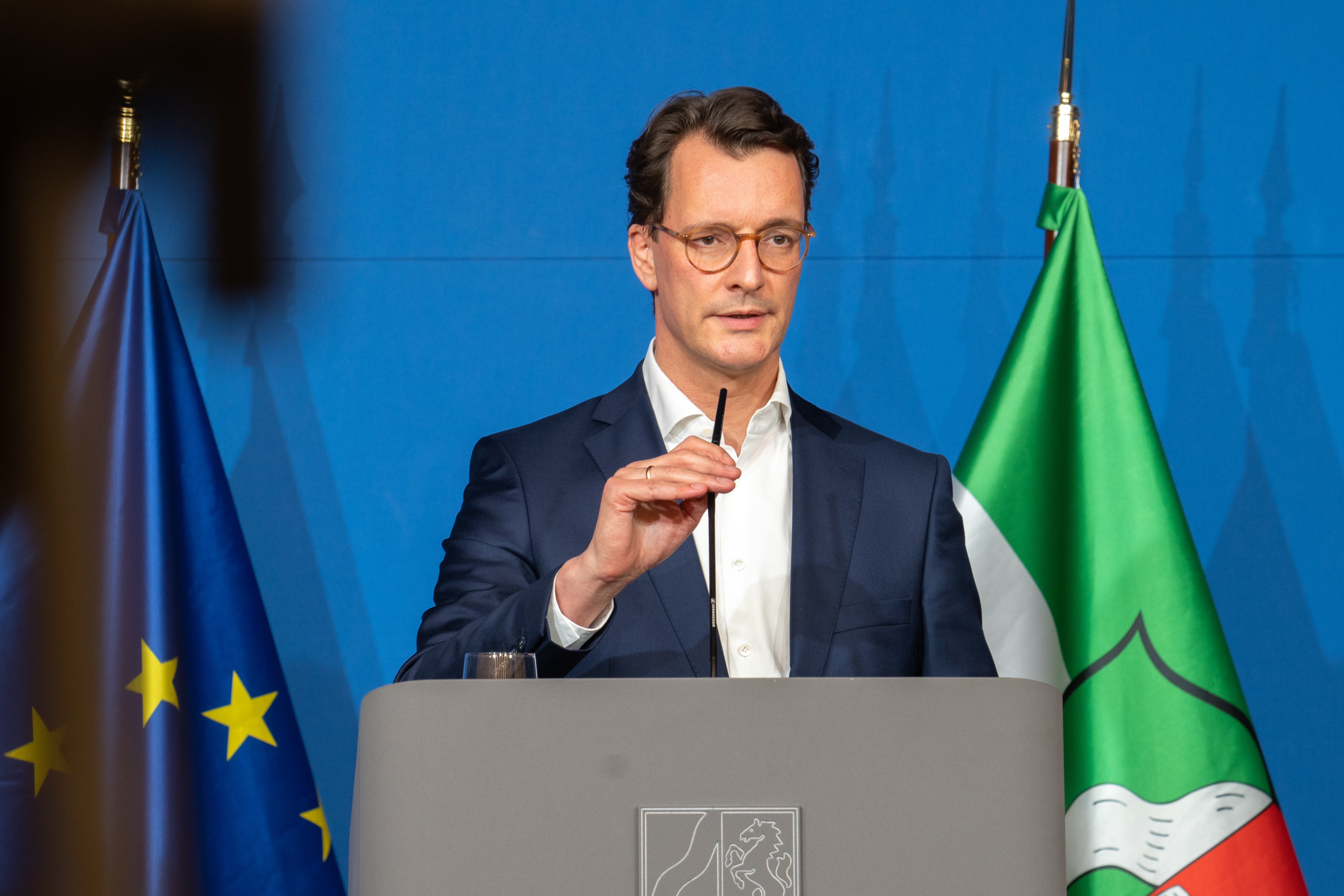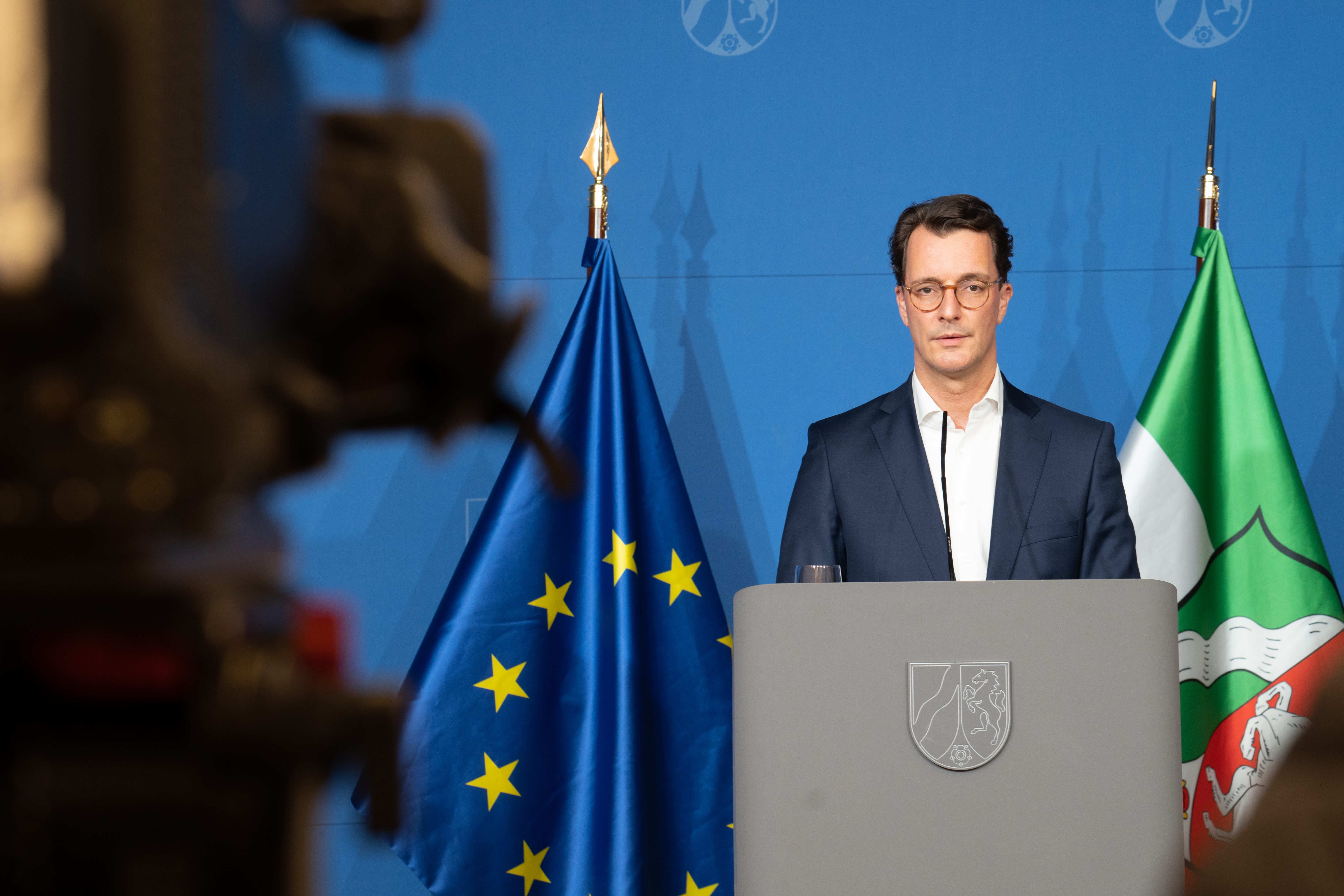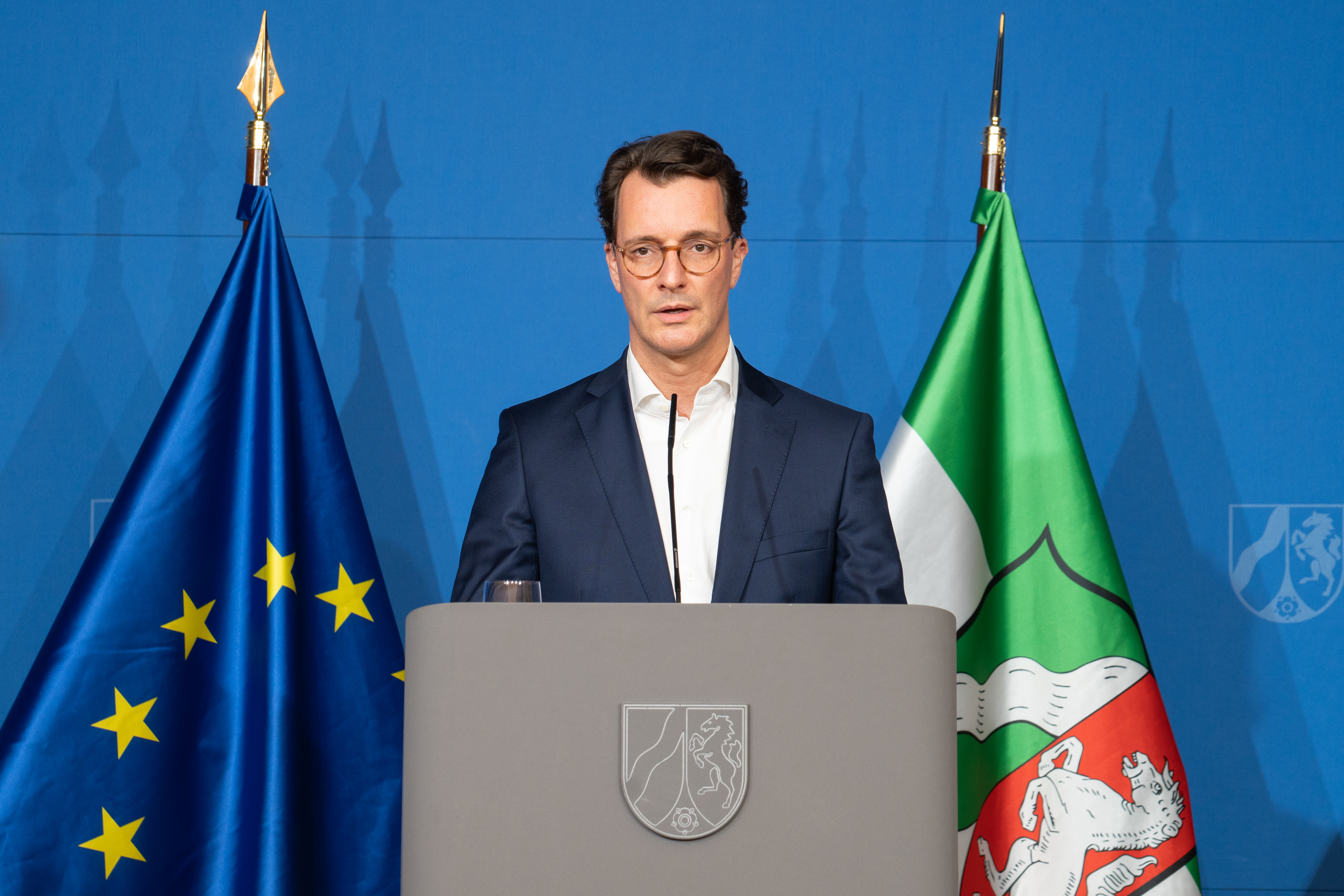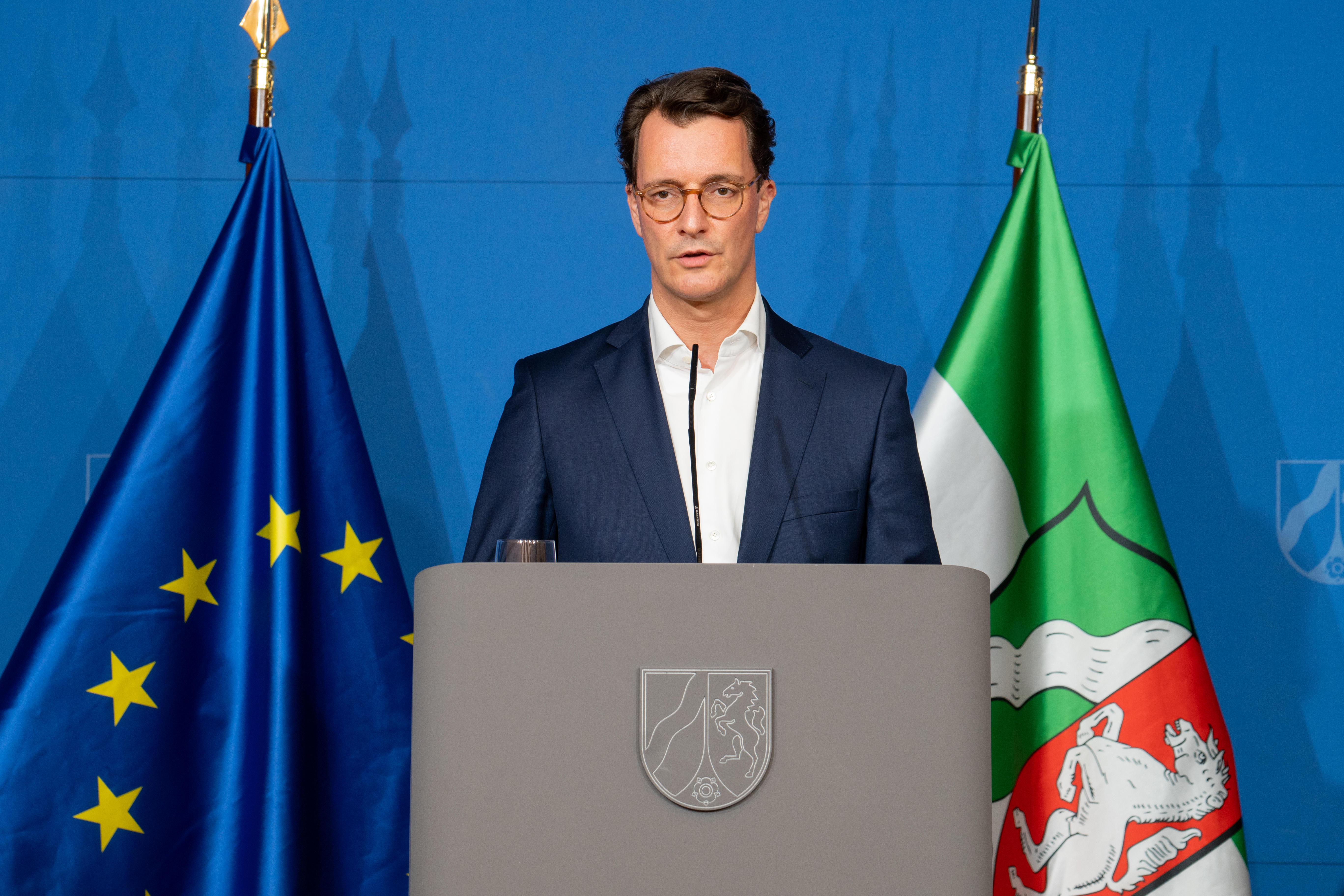 Ministerpräsident Hendrik Wüst, Vorsitzender der Ministerpräsidentenkonferenz (MPK), informiert im Anschluss an die Bund-Länder-Beratungen zu den Ergebnissen der Gespräche im Bund-Länder-Kreis und der Umsetzung in Nordrhein-Westfalen.