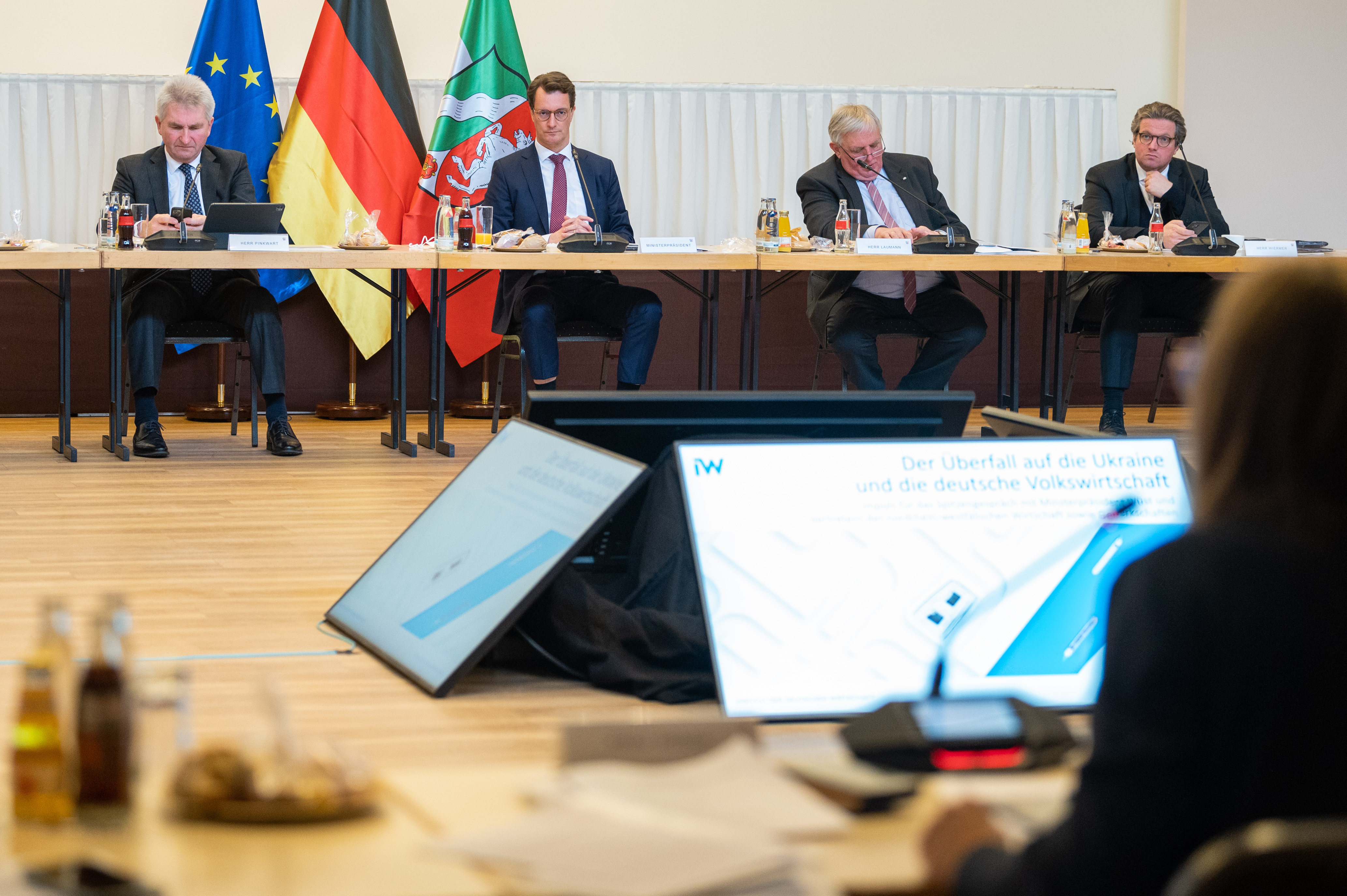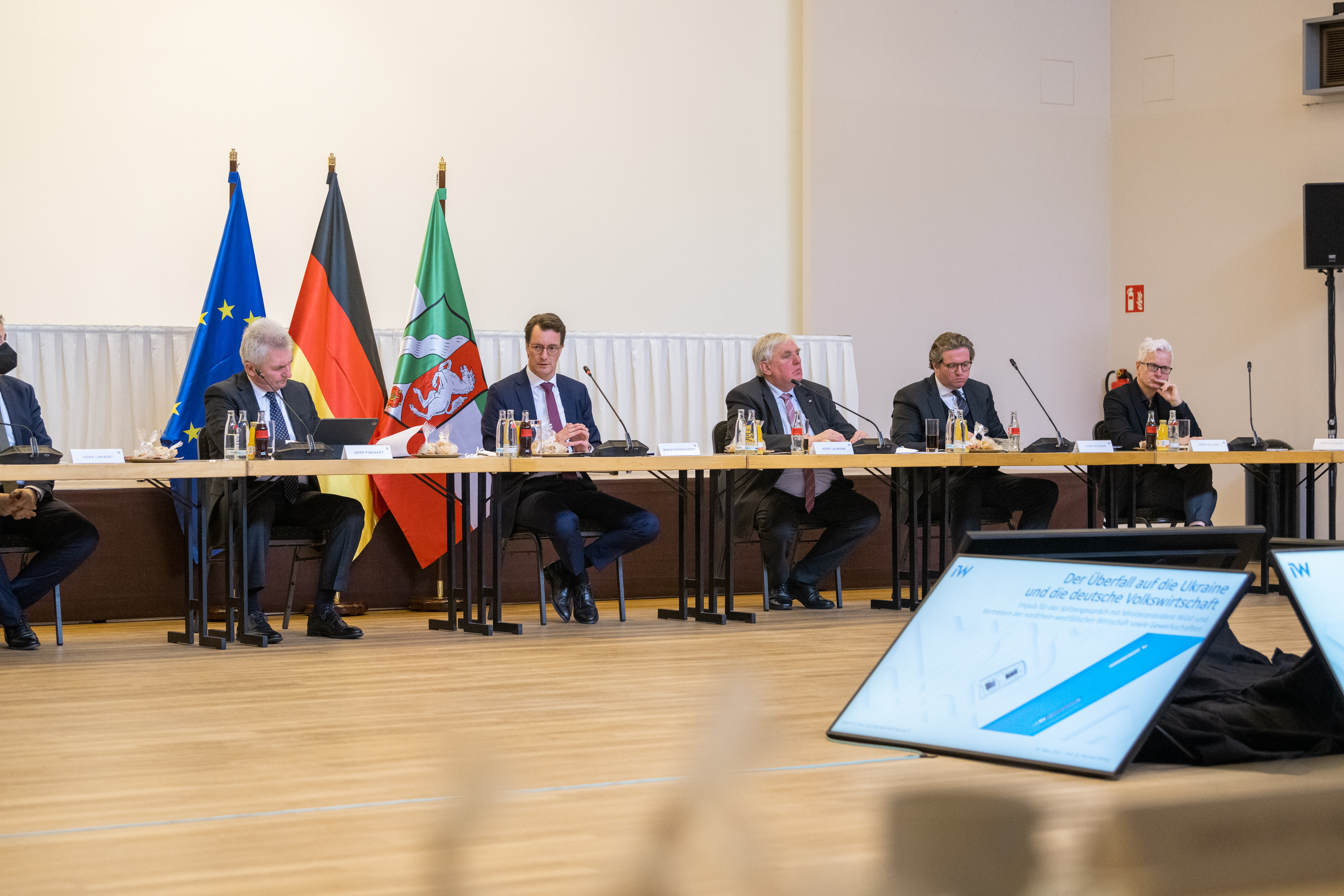 Spitzengespräch von Ministerpräsident Hendrik Wüst mit Gewerkschaften und Wirtschaft zu den Folgen des russischen Angriffs auf die Ukraine für Versorgungssicherheit und Arbeitsplätze in Nordrhein-Westfalen