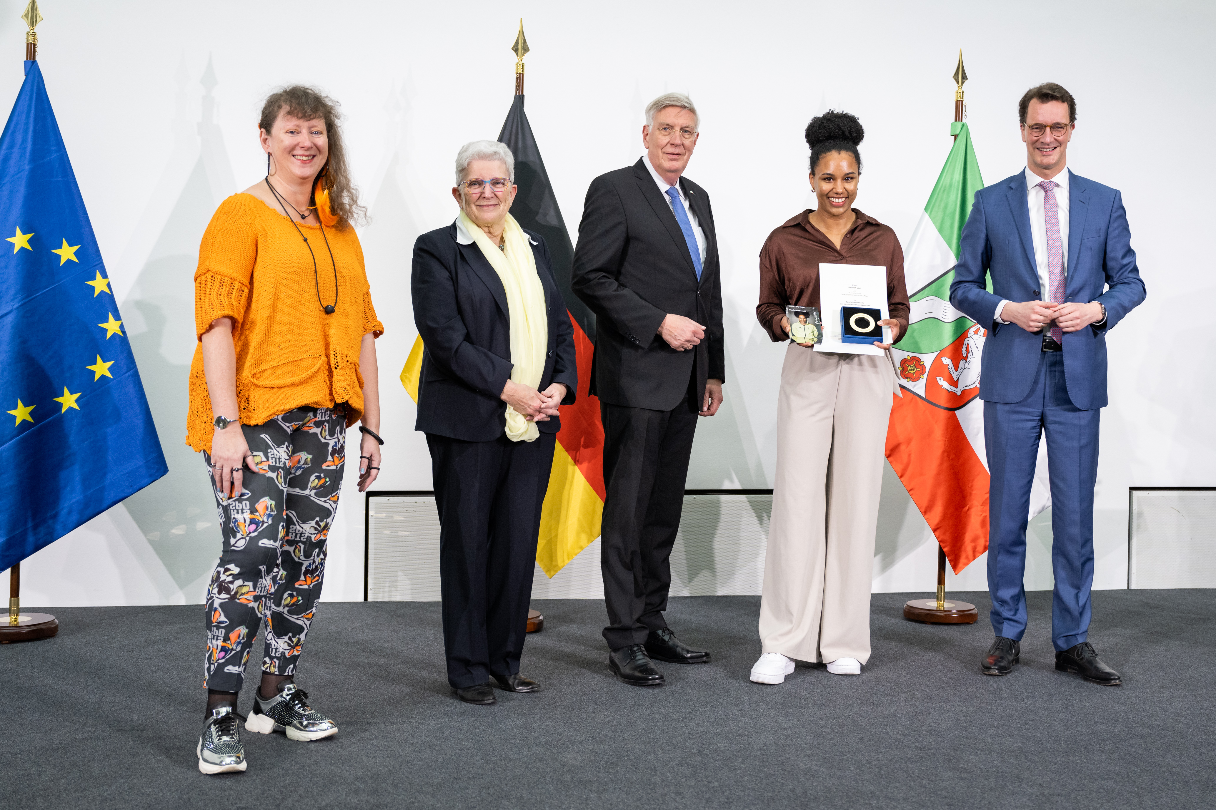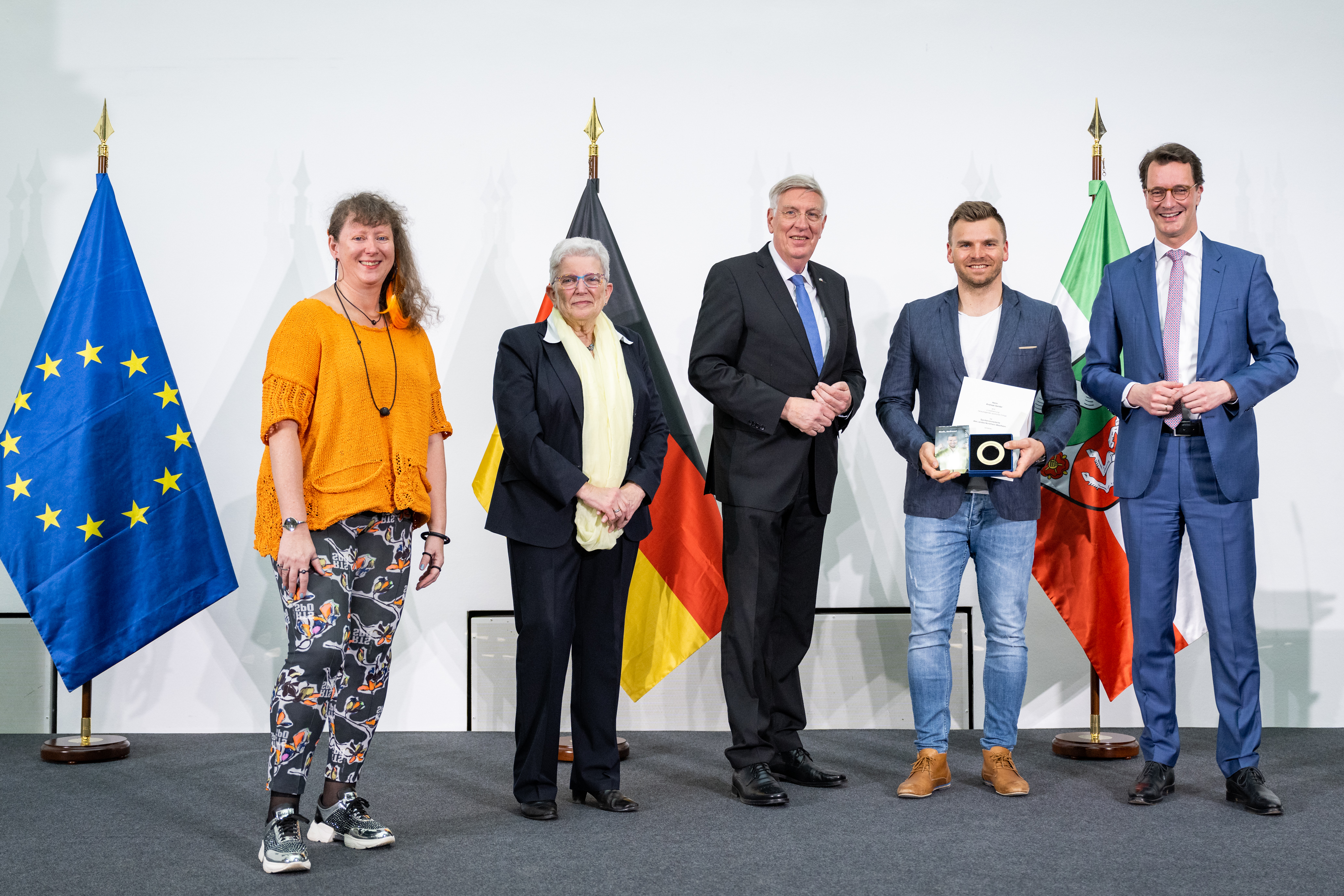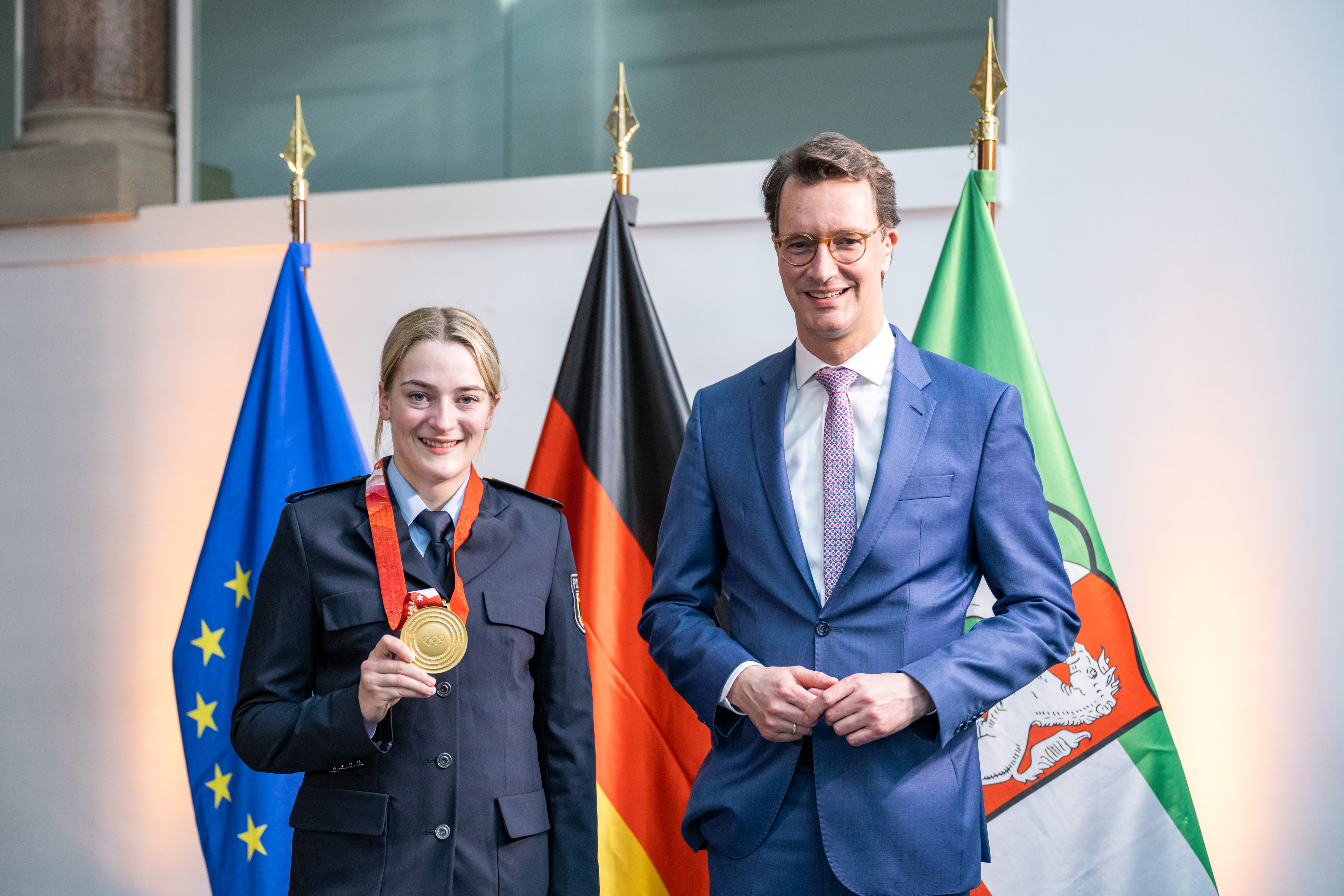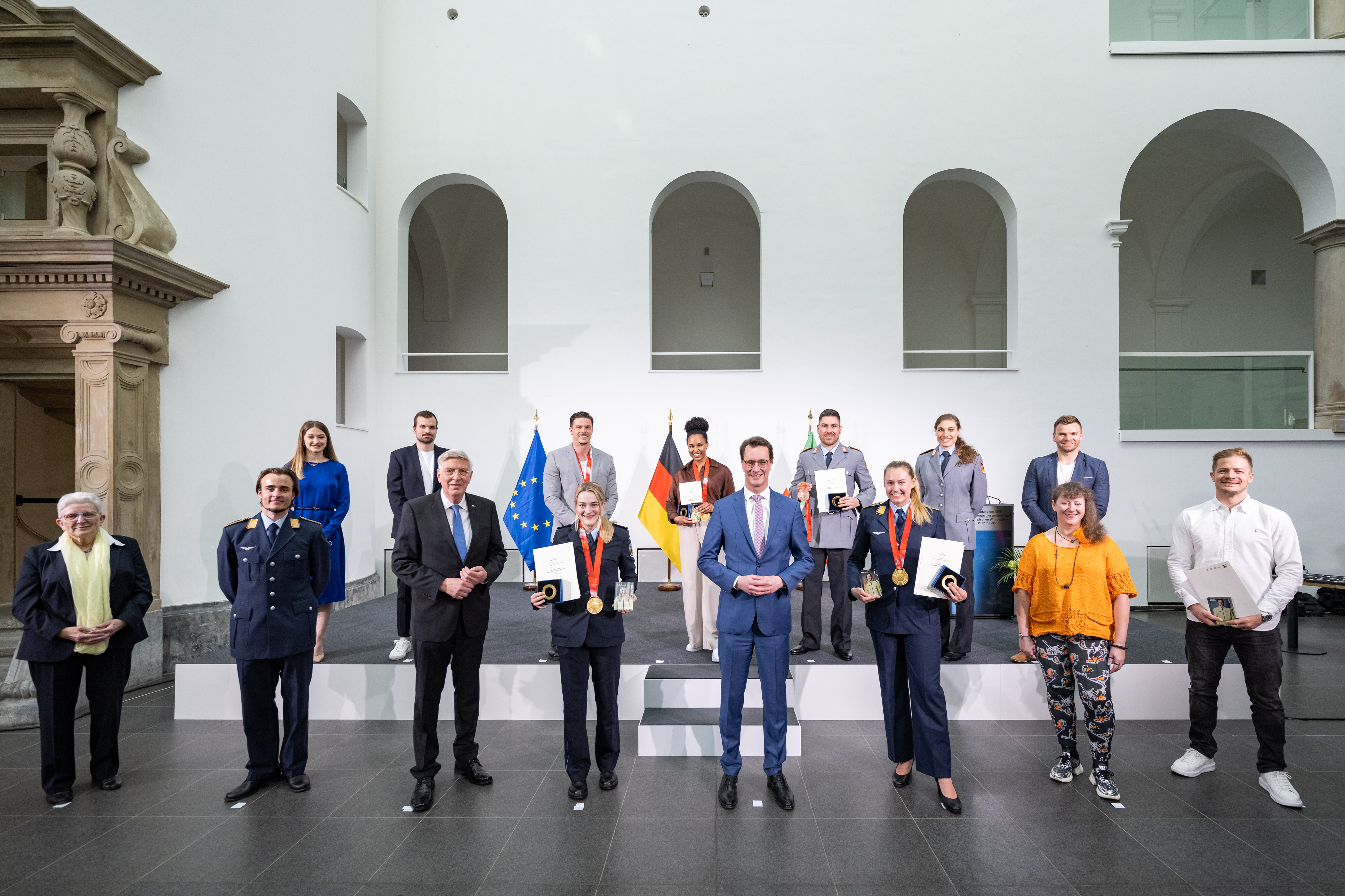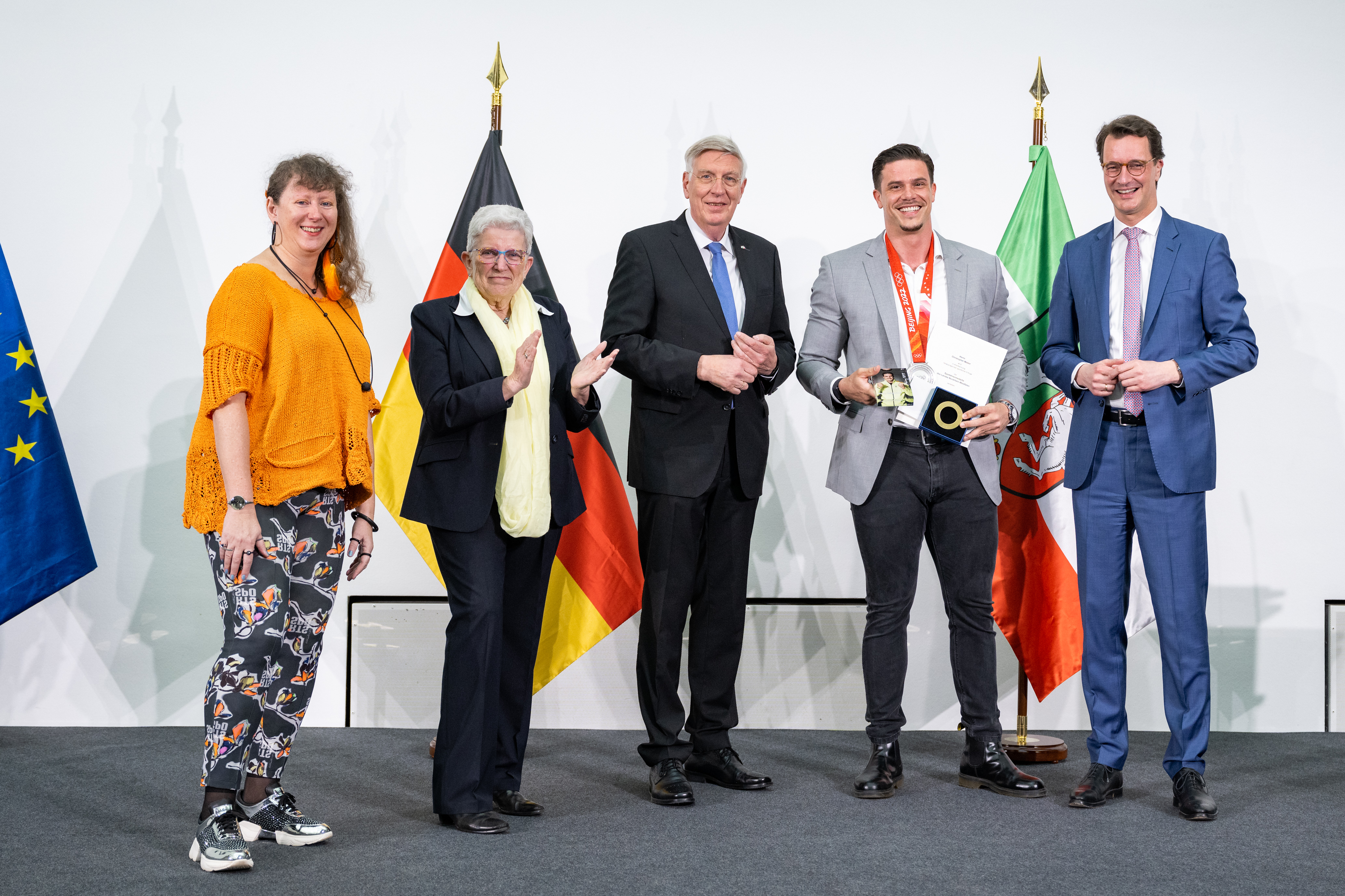 Ministerpräsident Hendrik Wüst ehrt die nordrhein-westfälischen Medaillengewinnerinnen und -gewinner und Teilnehmerinnen und Teilnehmer bei den Olympischen Winterspielen 2022