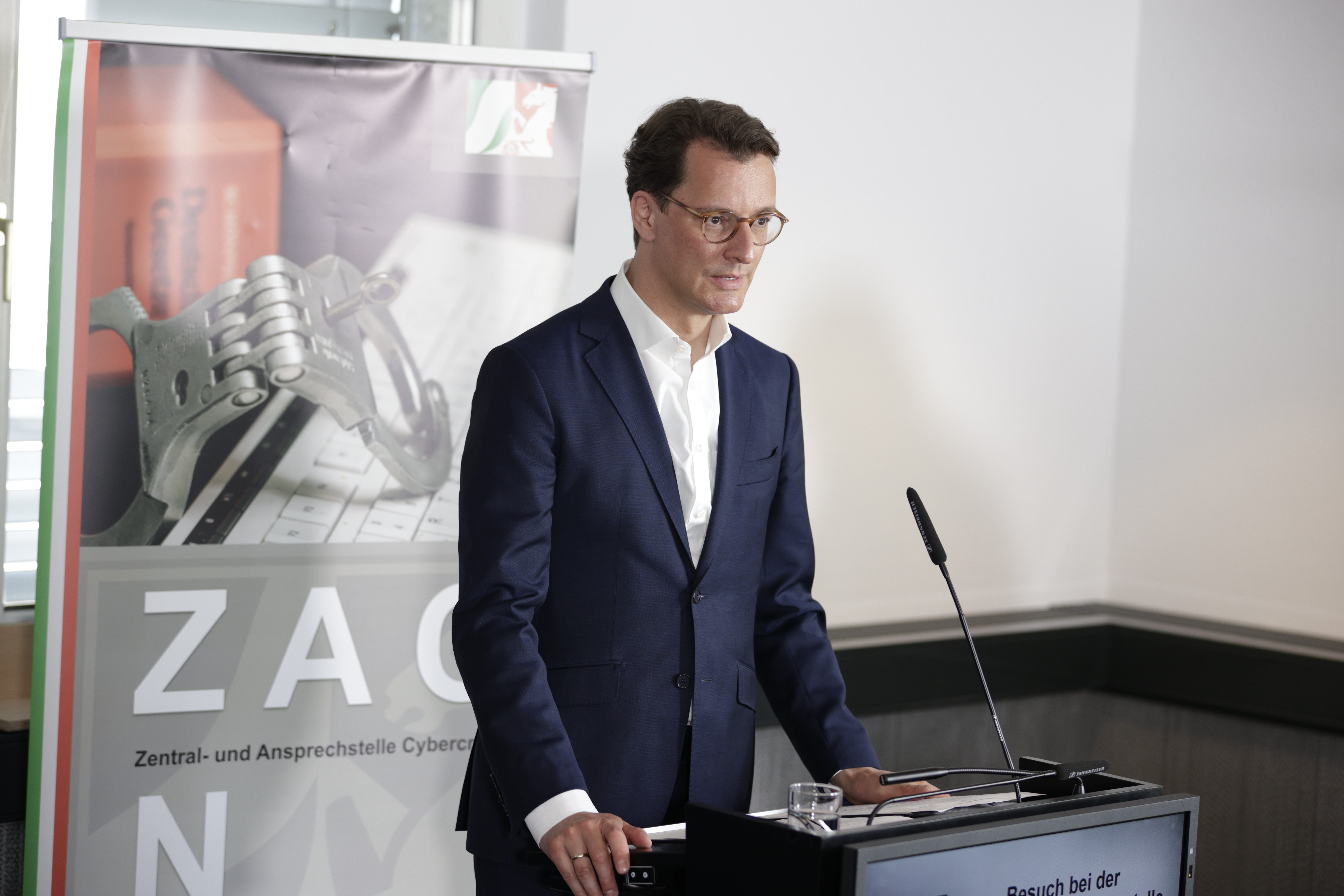 Ministerpräsident Hendrik Wüst dankt Staatsanwältinnen und Staatsanwälten für die innovative Arbeit im Bereich der Bekämpfung von Cyberkriminalität