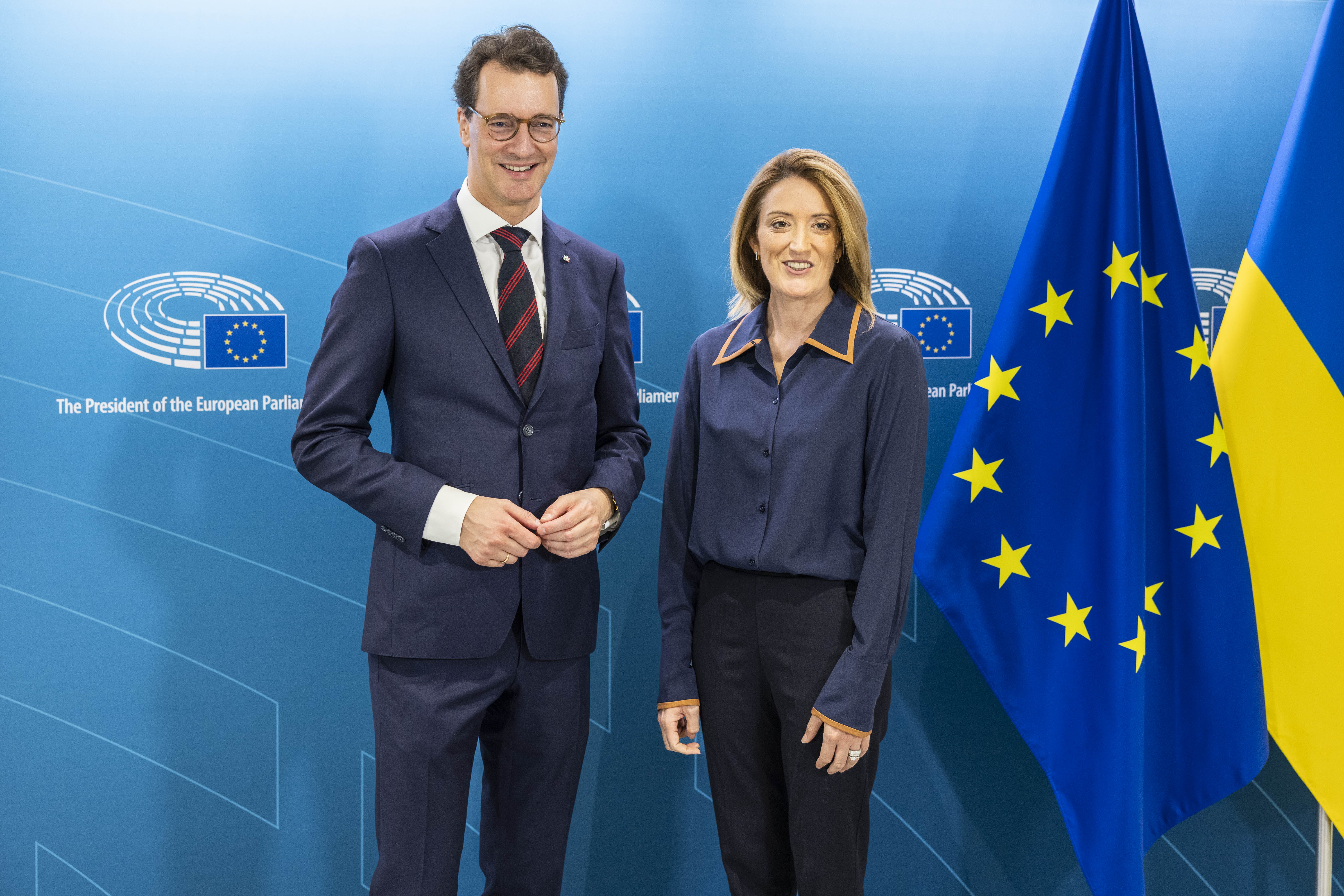 Ministerpräsident Hendrik Wüst hat am Mittwoch, 26. Oktober 2022, die Präsidentin des Europäischen Parlaments Roberta Metsola zu einem Gespräch in Brüssel getroffen. Schwerpunkte des Gesprächs waren der russische Angriffskrieg auf die Ukraine und die daraus resultierenden Folgen für Europa.