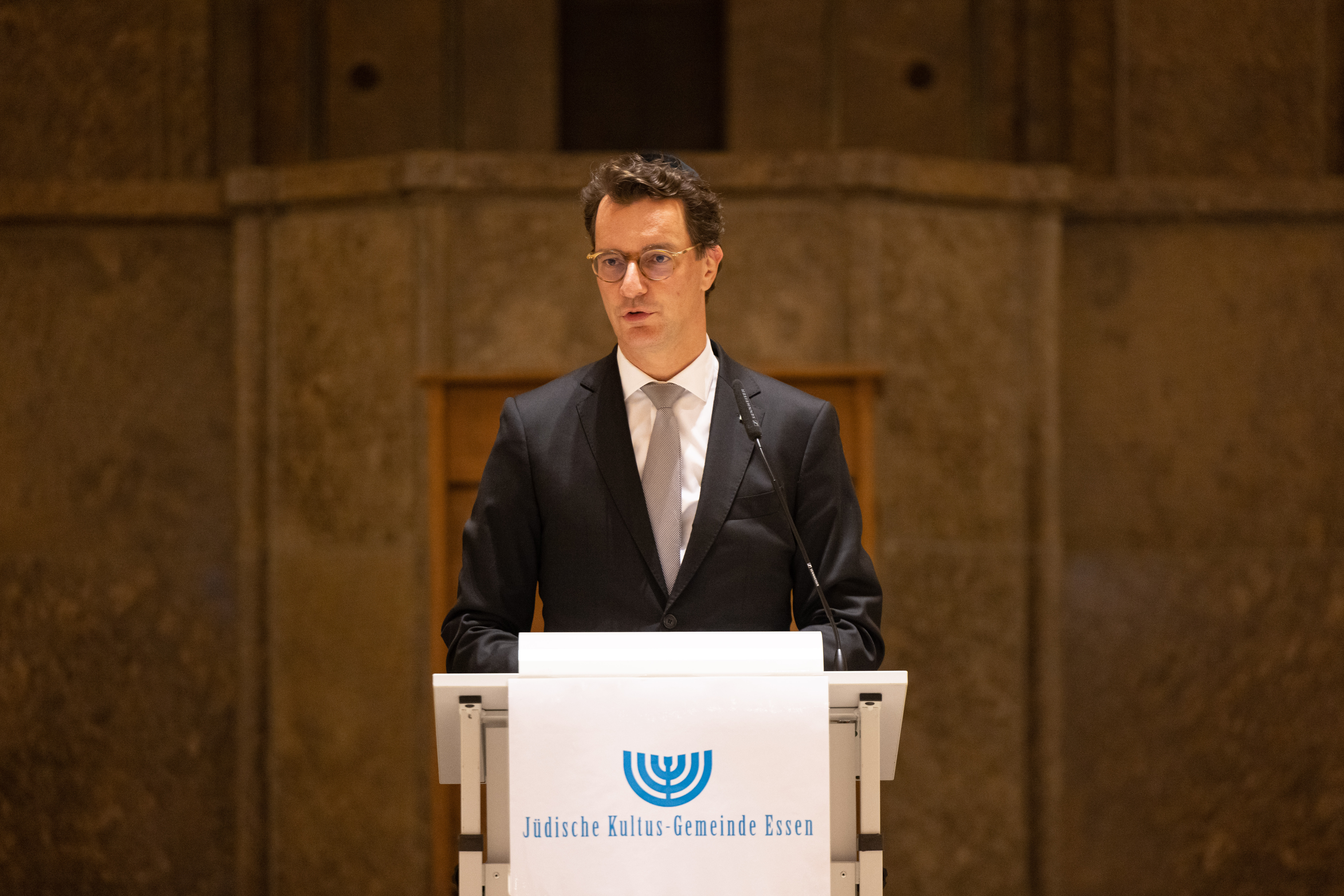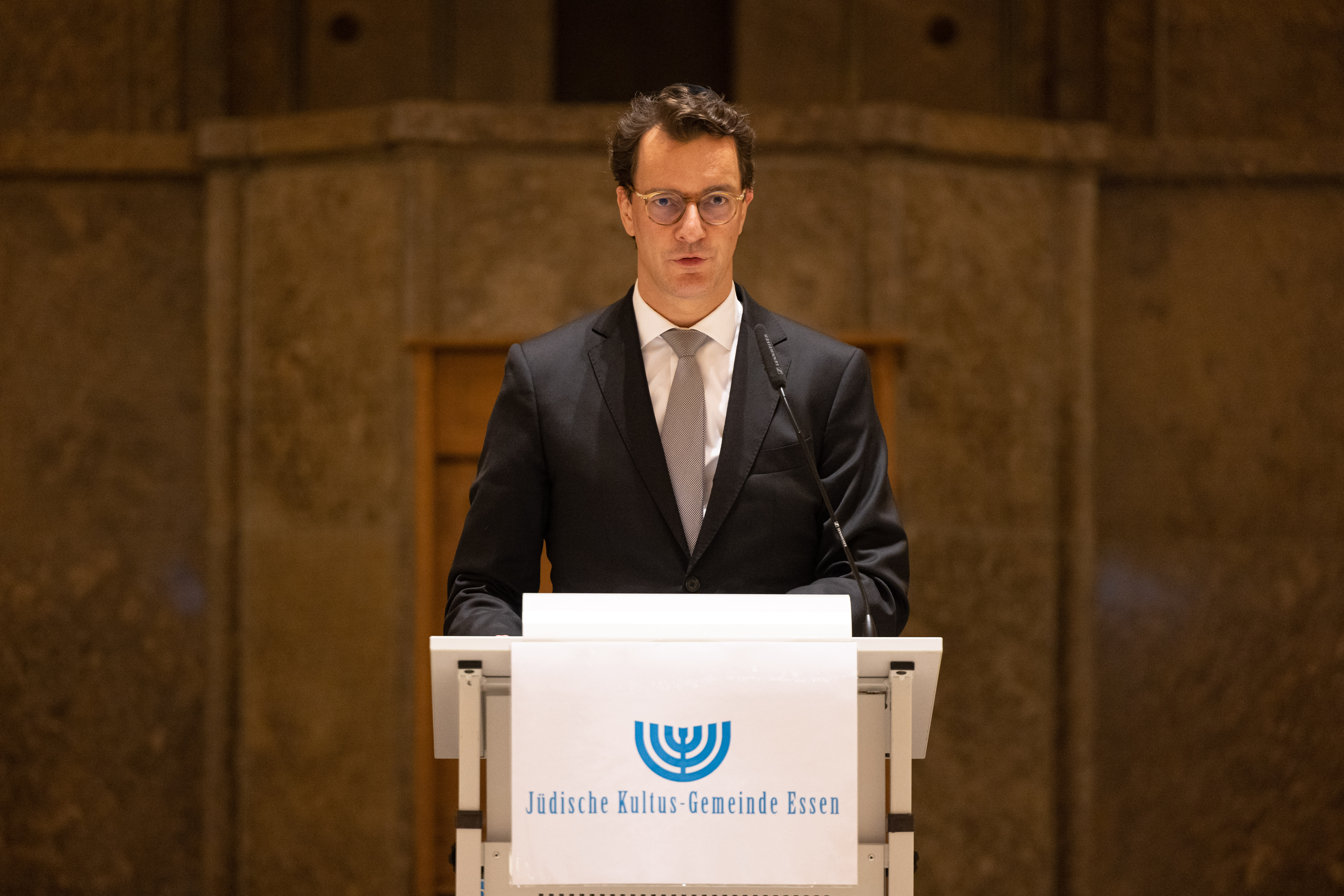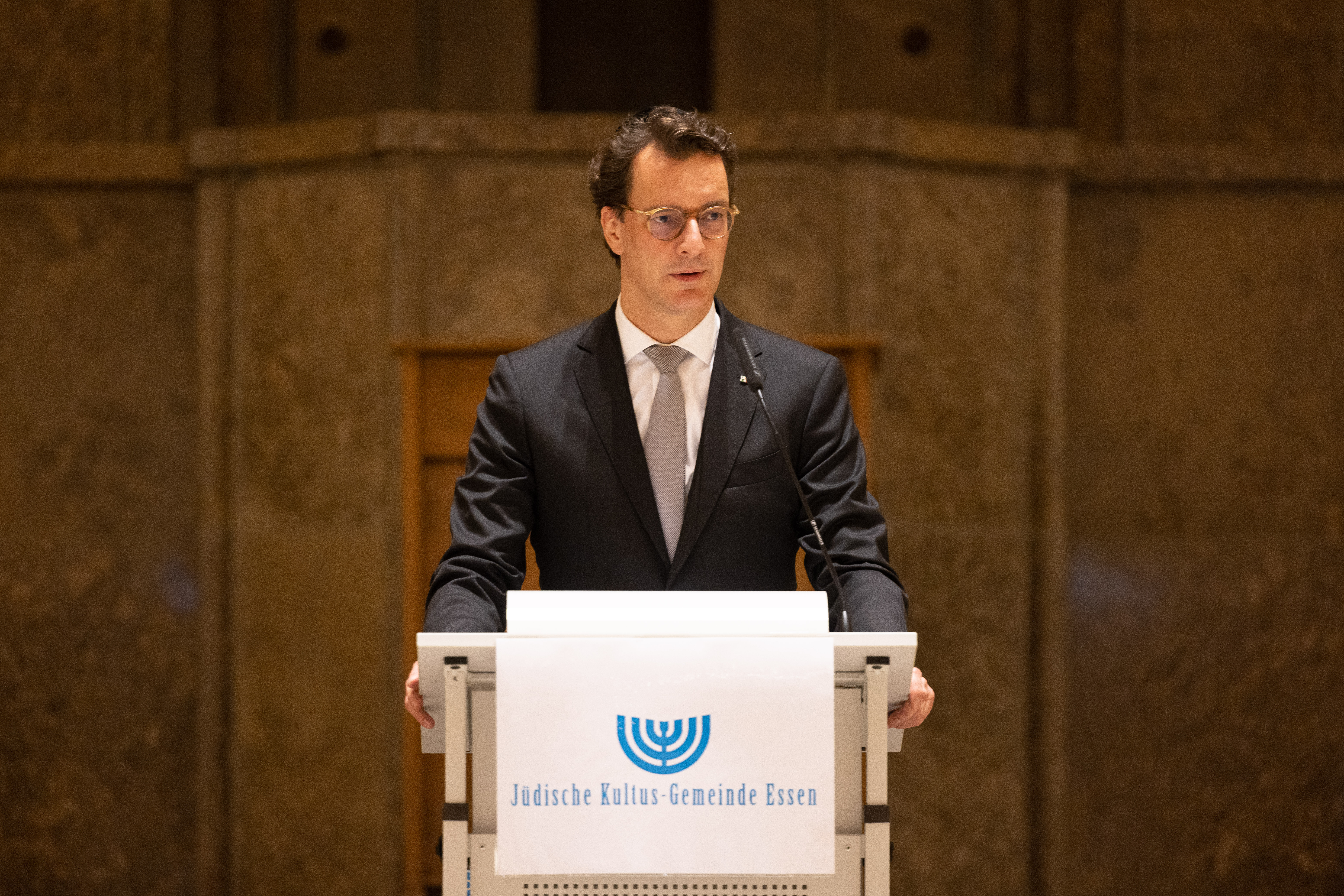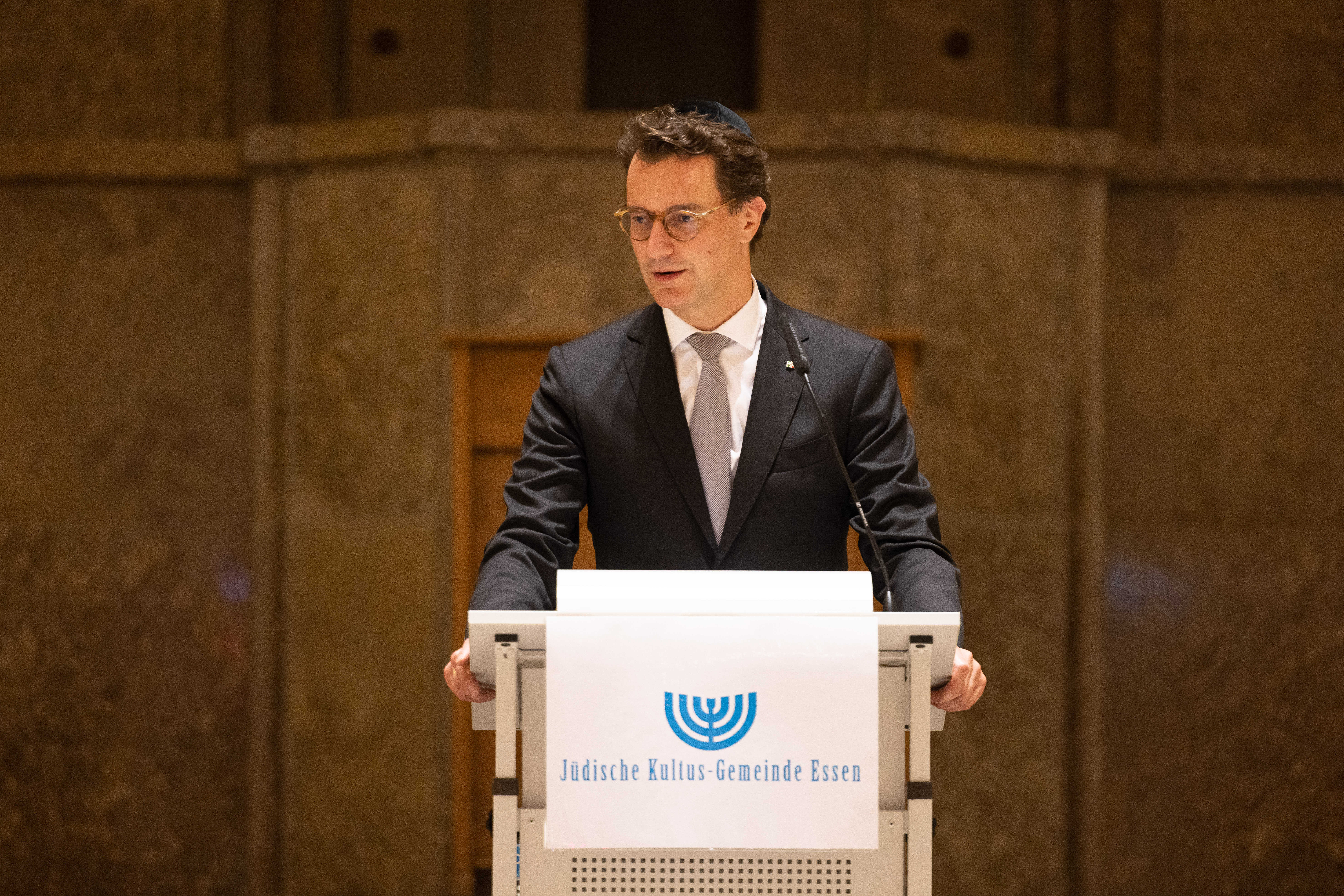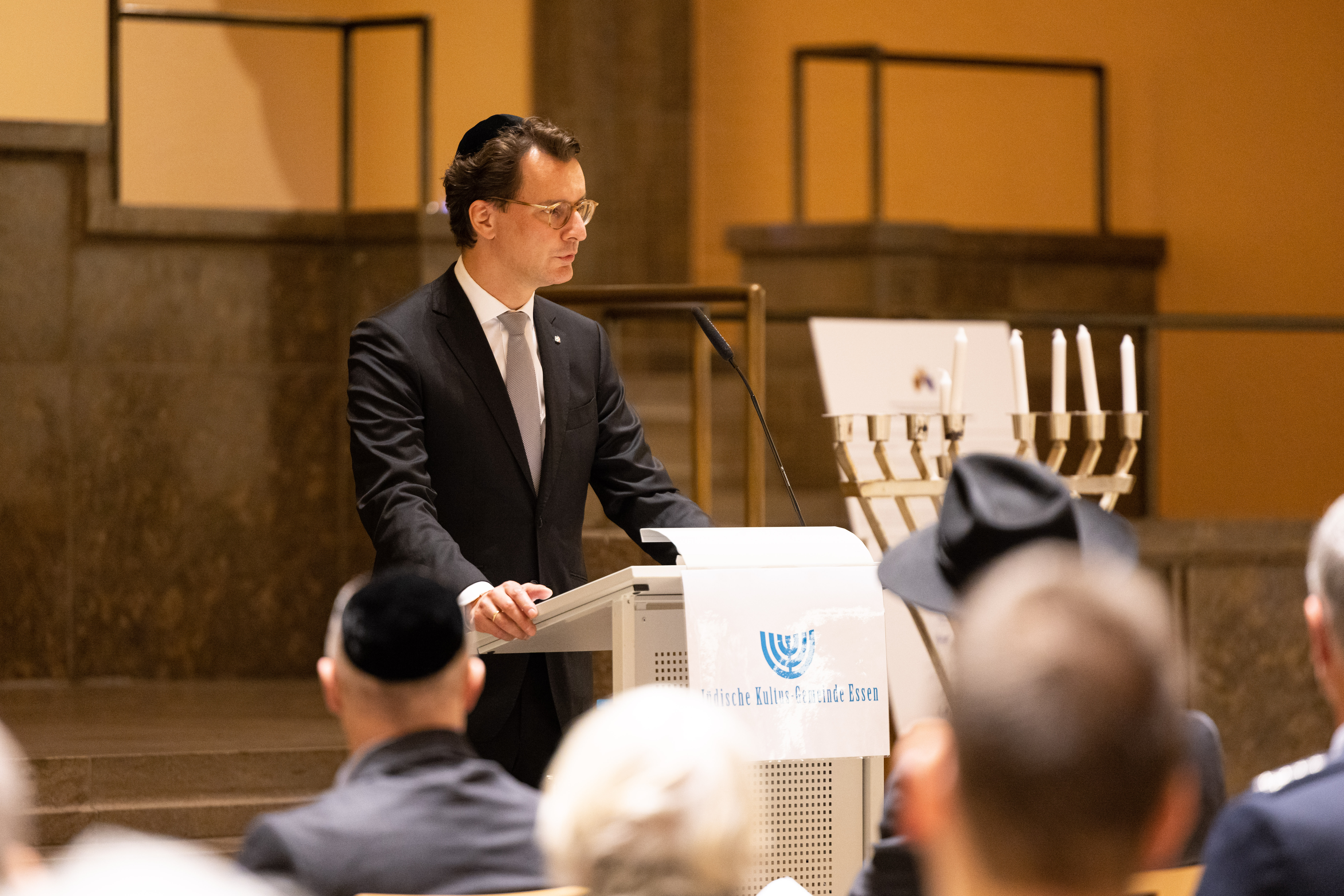 Ministerpräsident Hendrik Wüst nimmt am Festakt zum Entzünden der fünften Chanukka-Kerze in der Alten Synagoge Essen teil