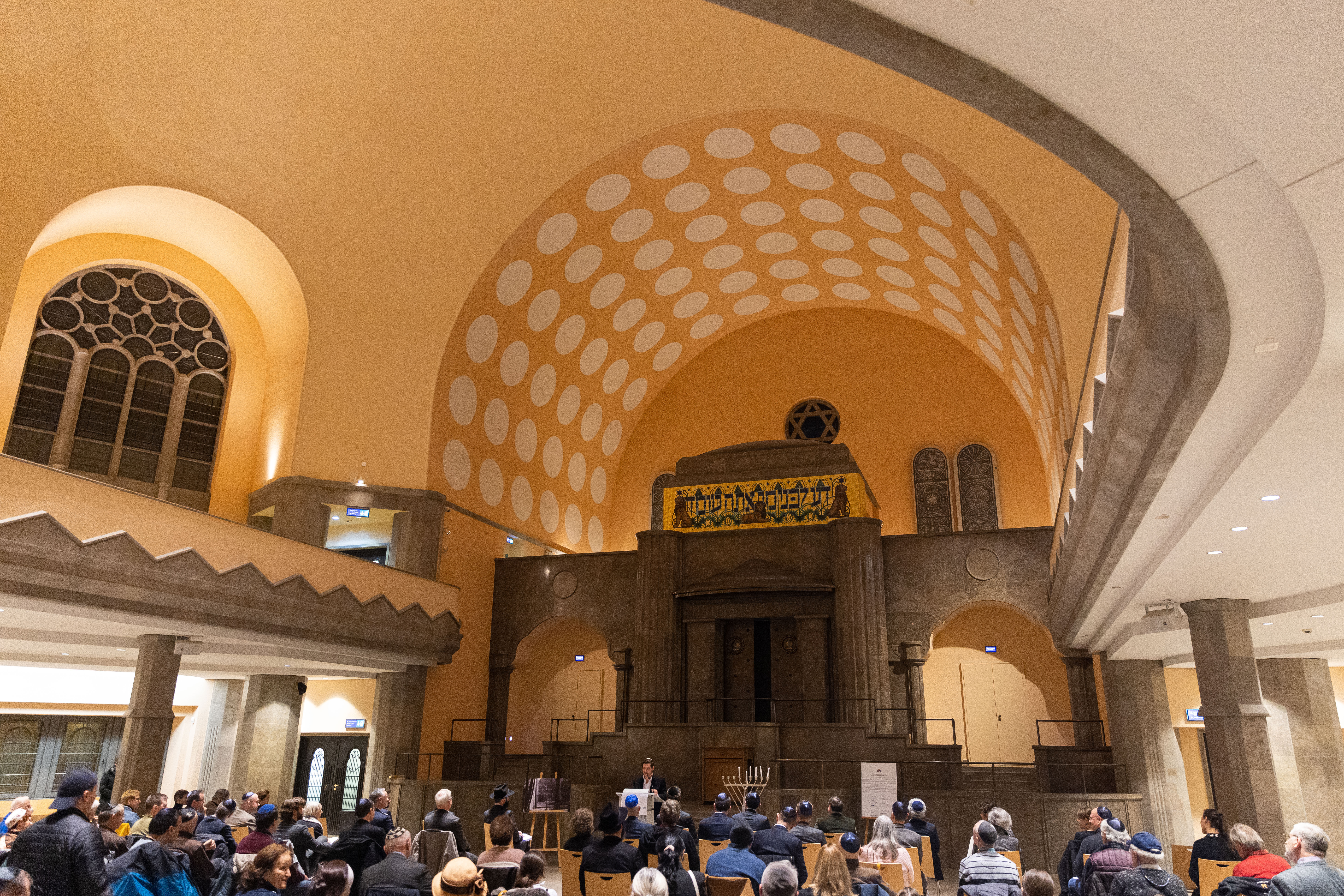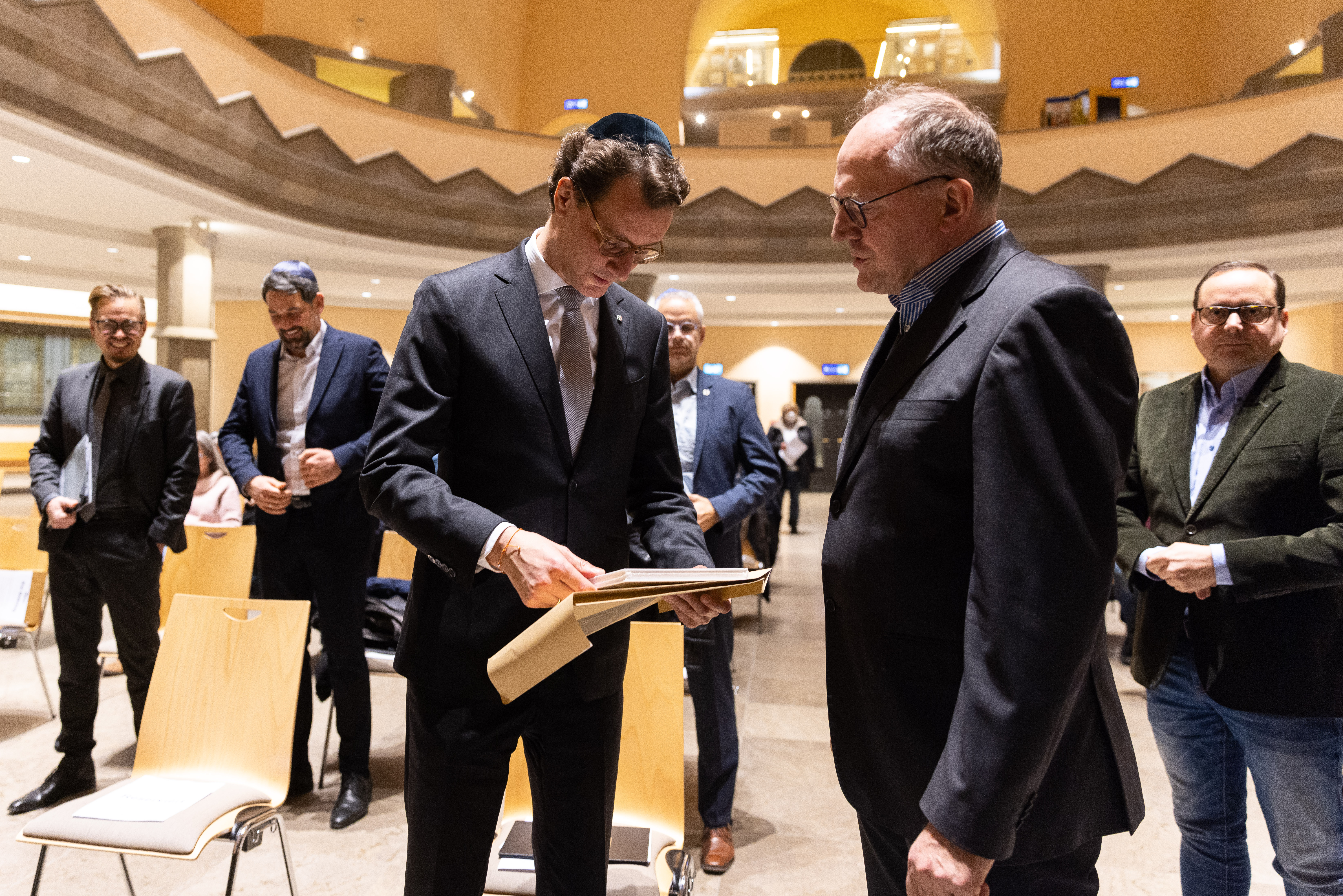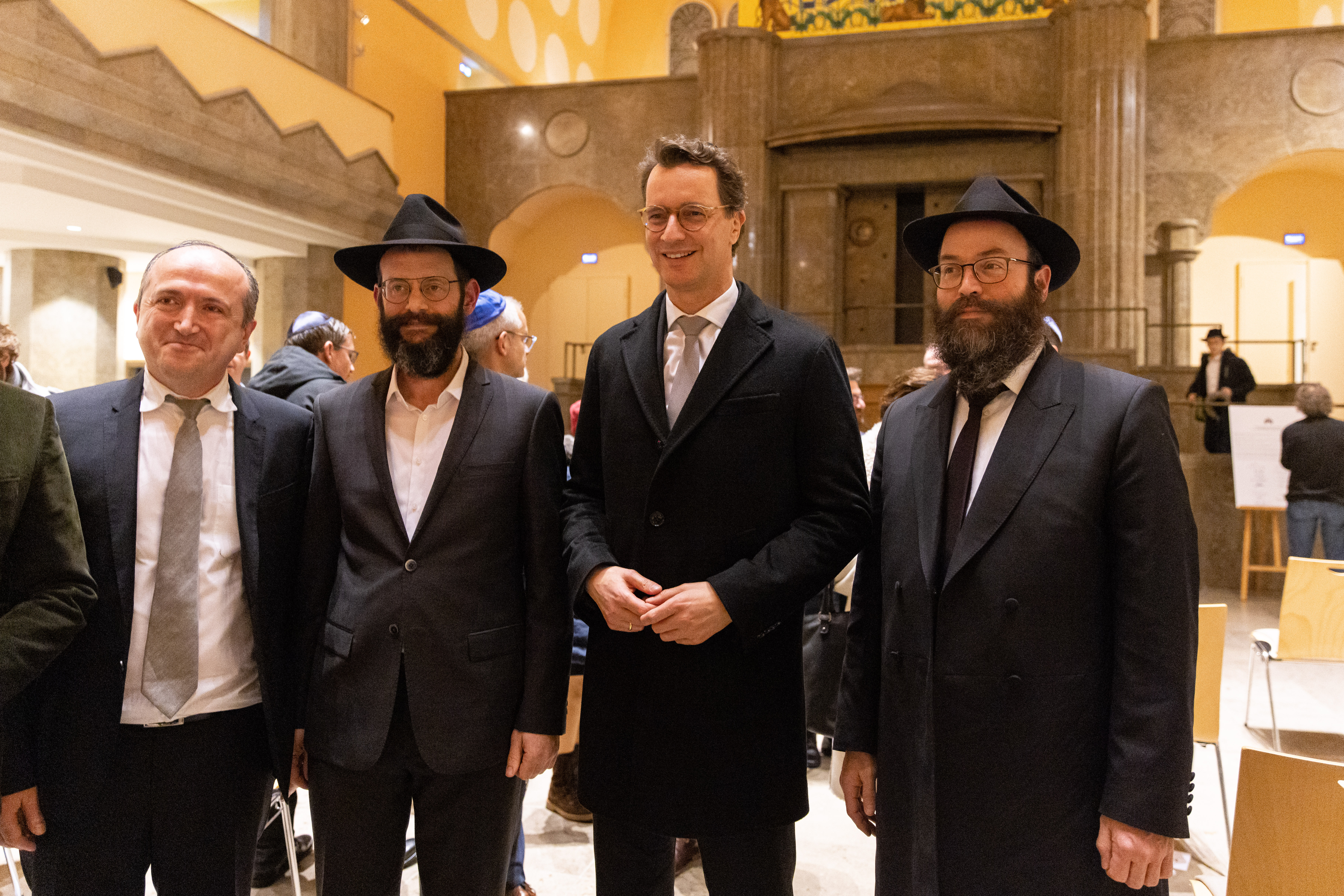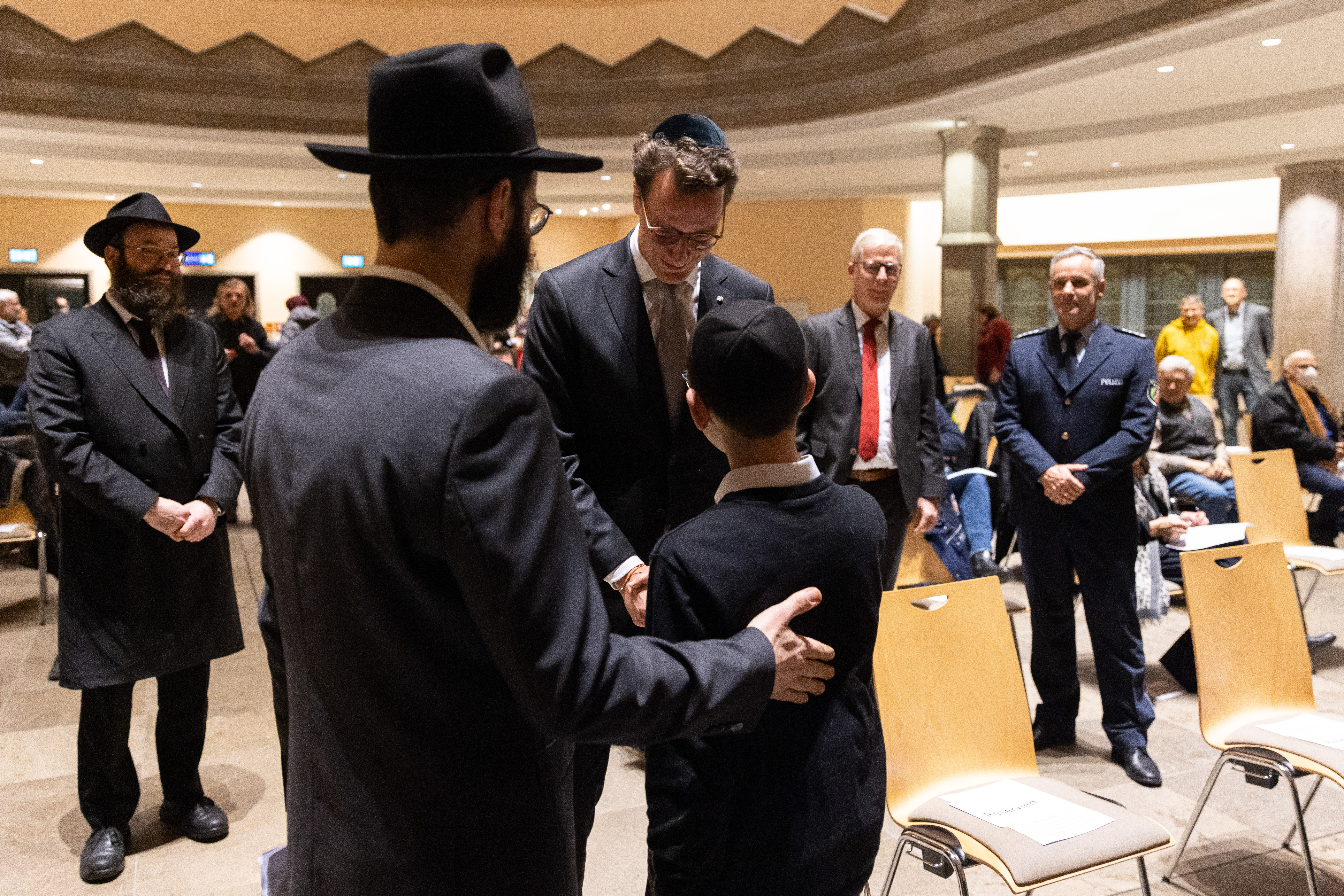 Ministerpräsident Hendrik Wüst nimmt am Festakt zum Entzünden der fünften Chanukka-Kerze in der Alten Synagoge Essen teil