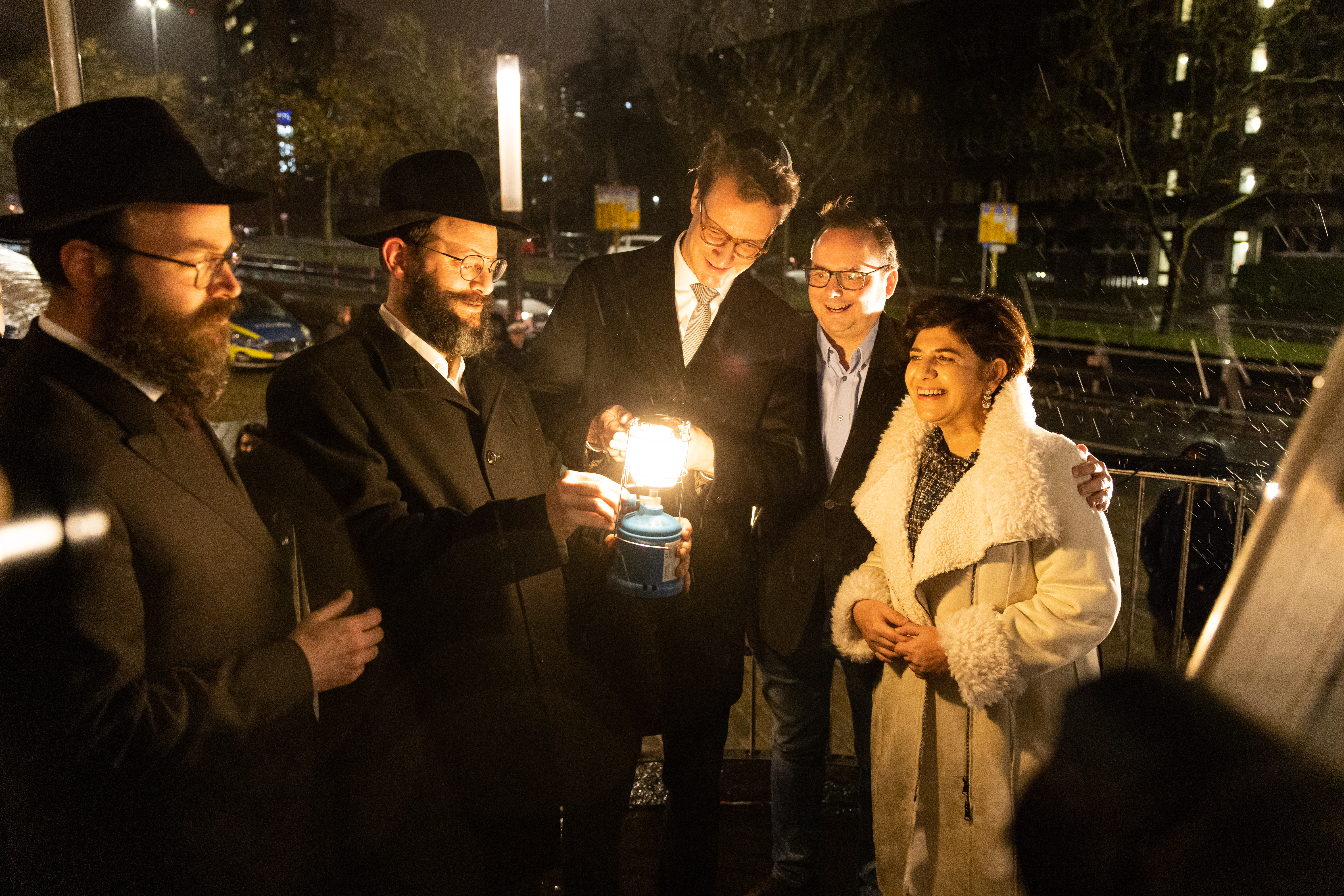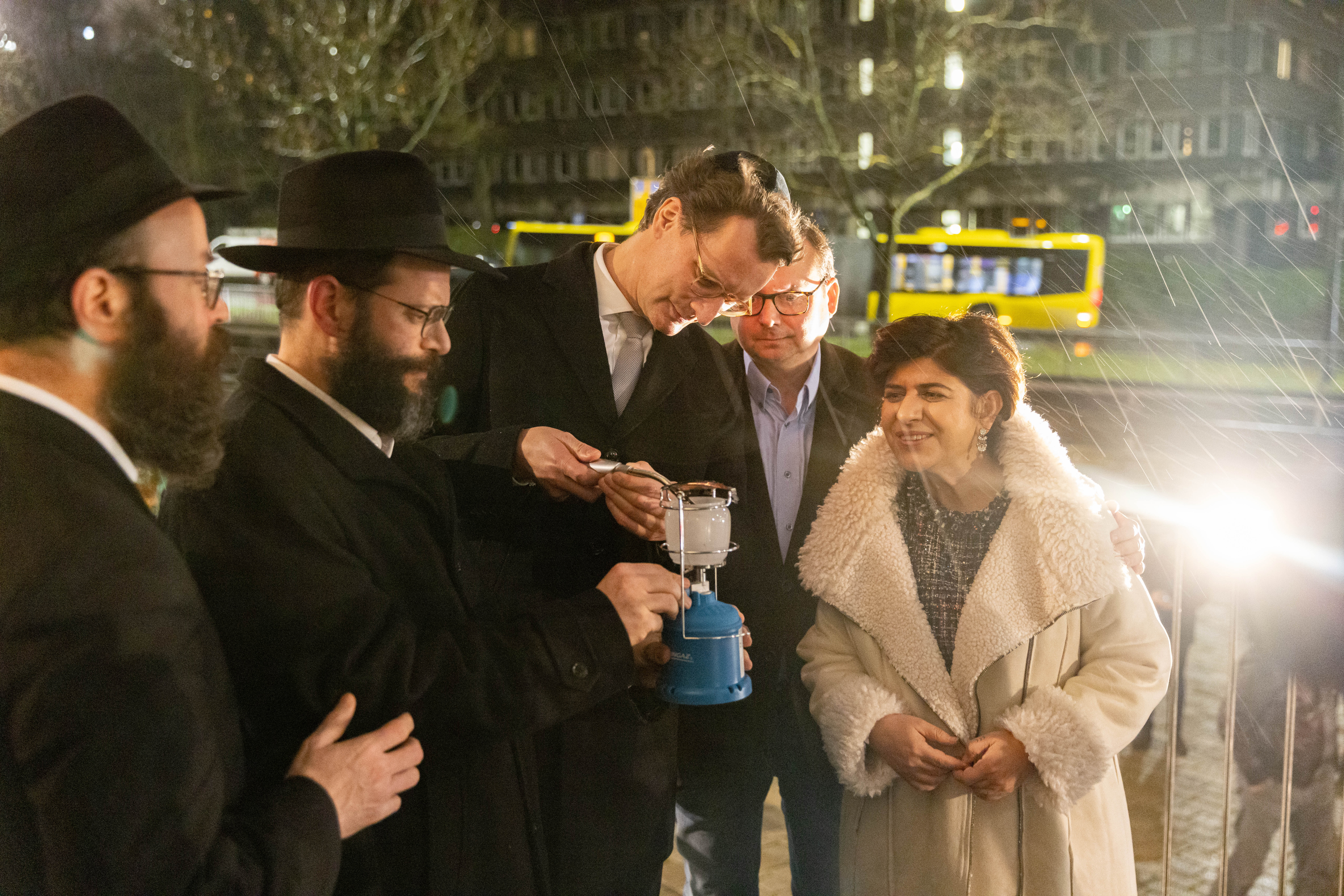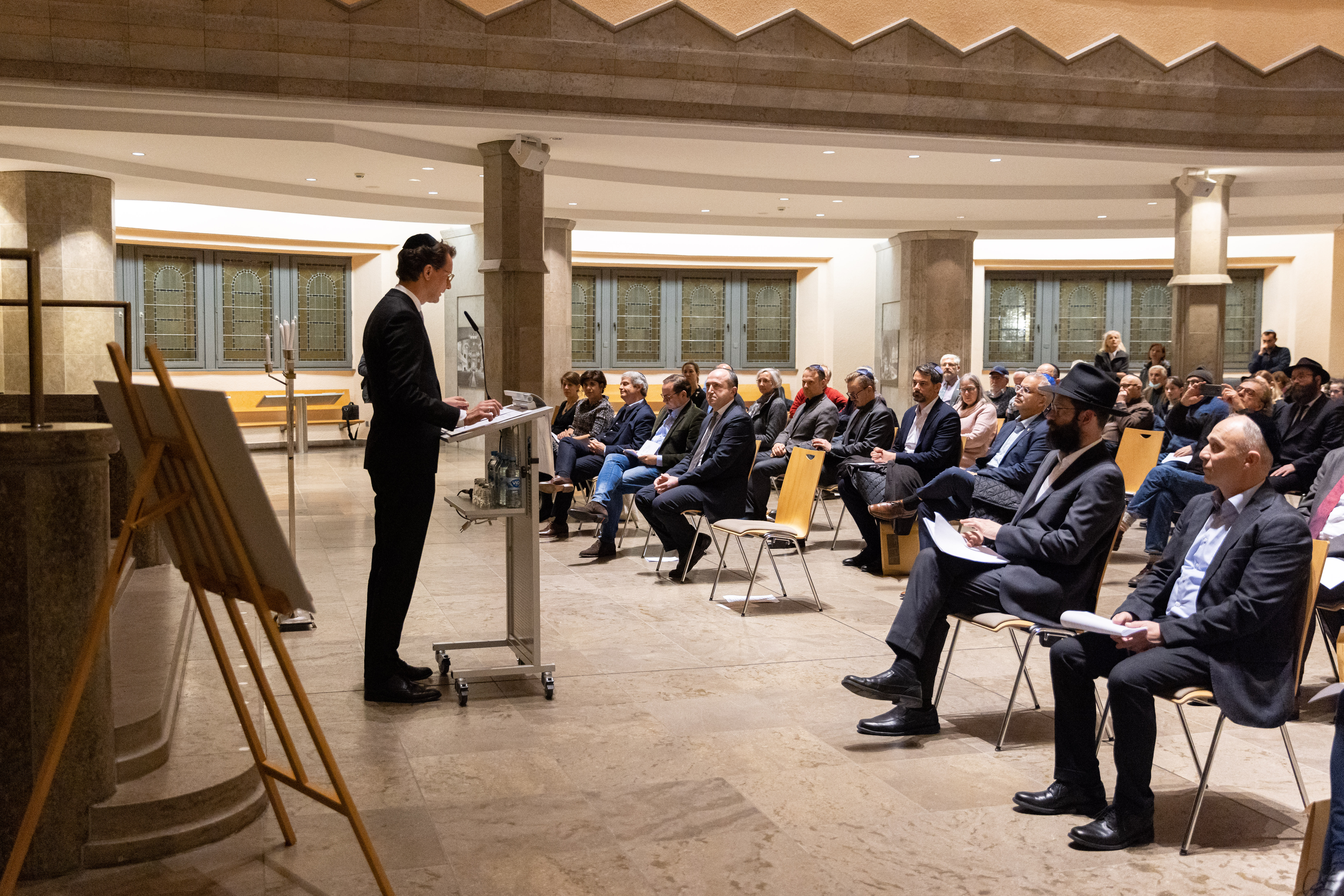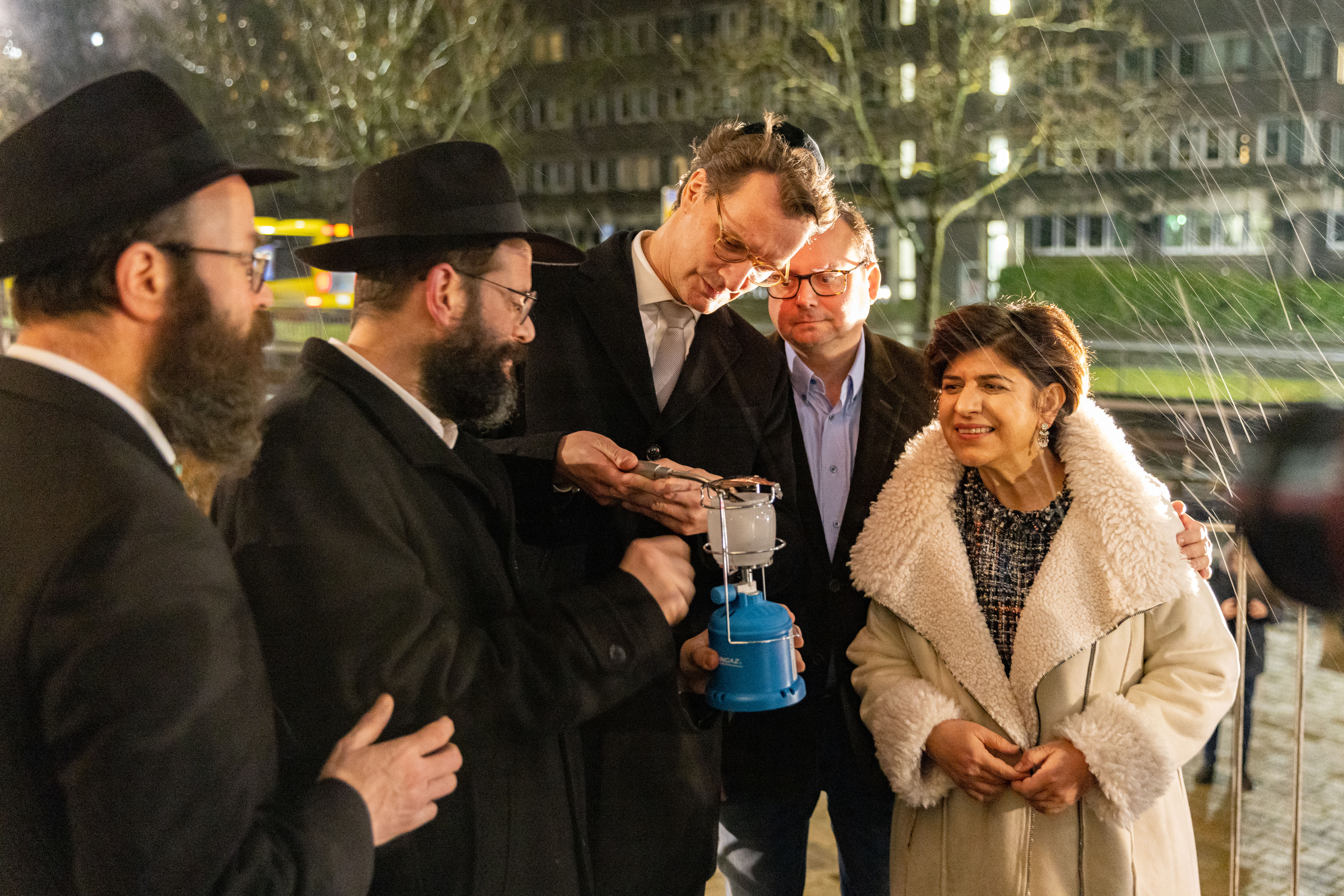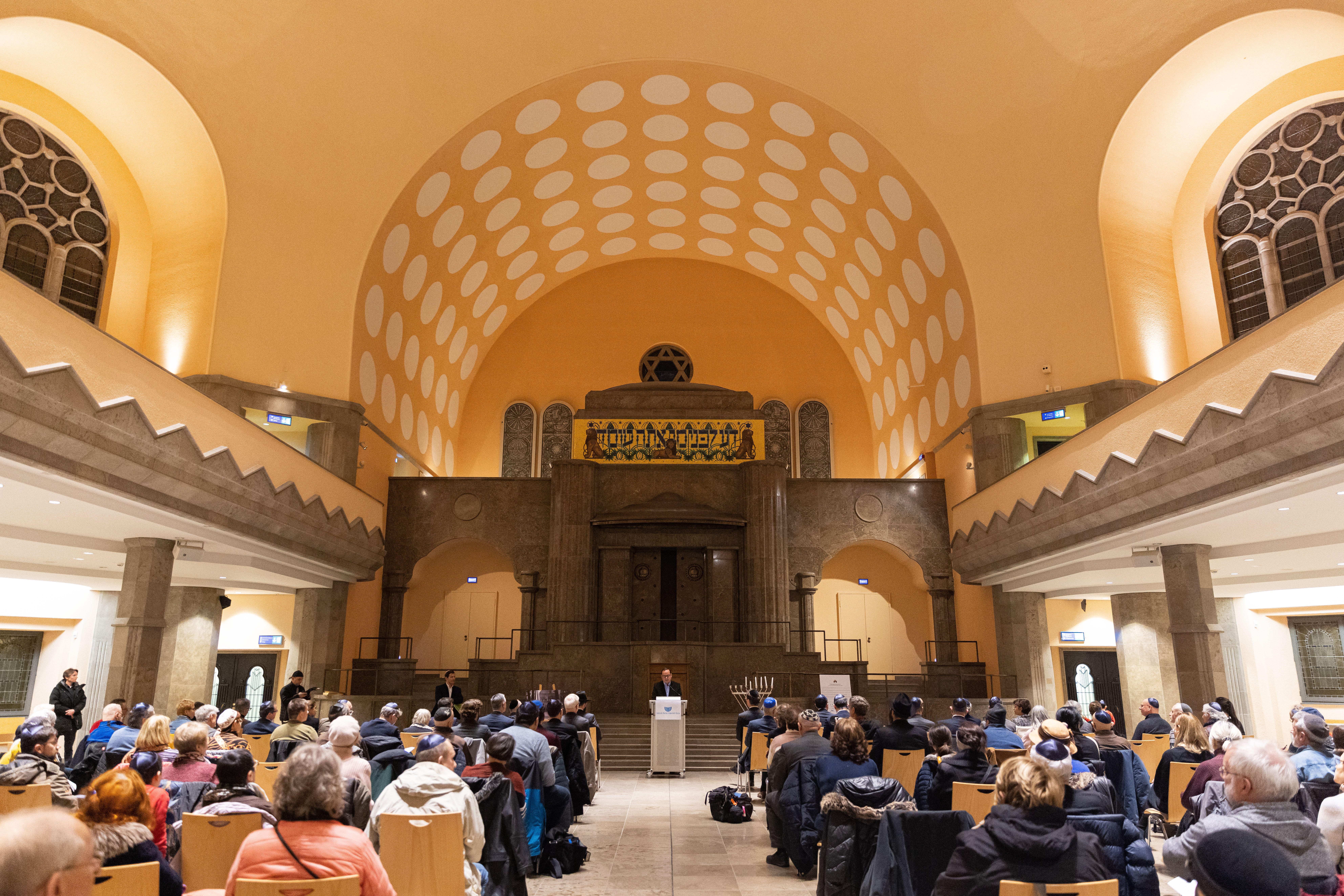 Ministerpräsident Hendrik Wüst nimmt am Festakt zum Entzünden der fünften Chanukka-Kerze in der Alten Synagoge Essen teil