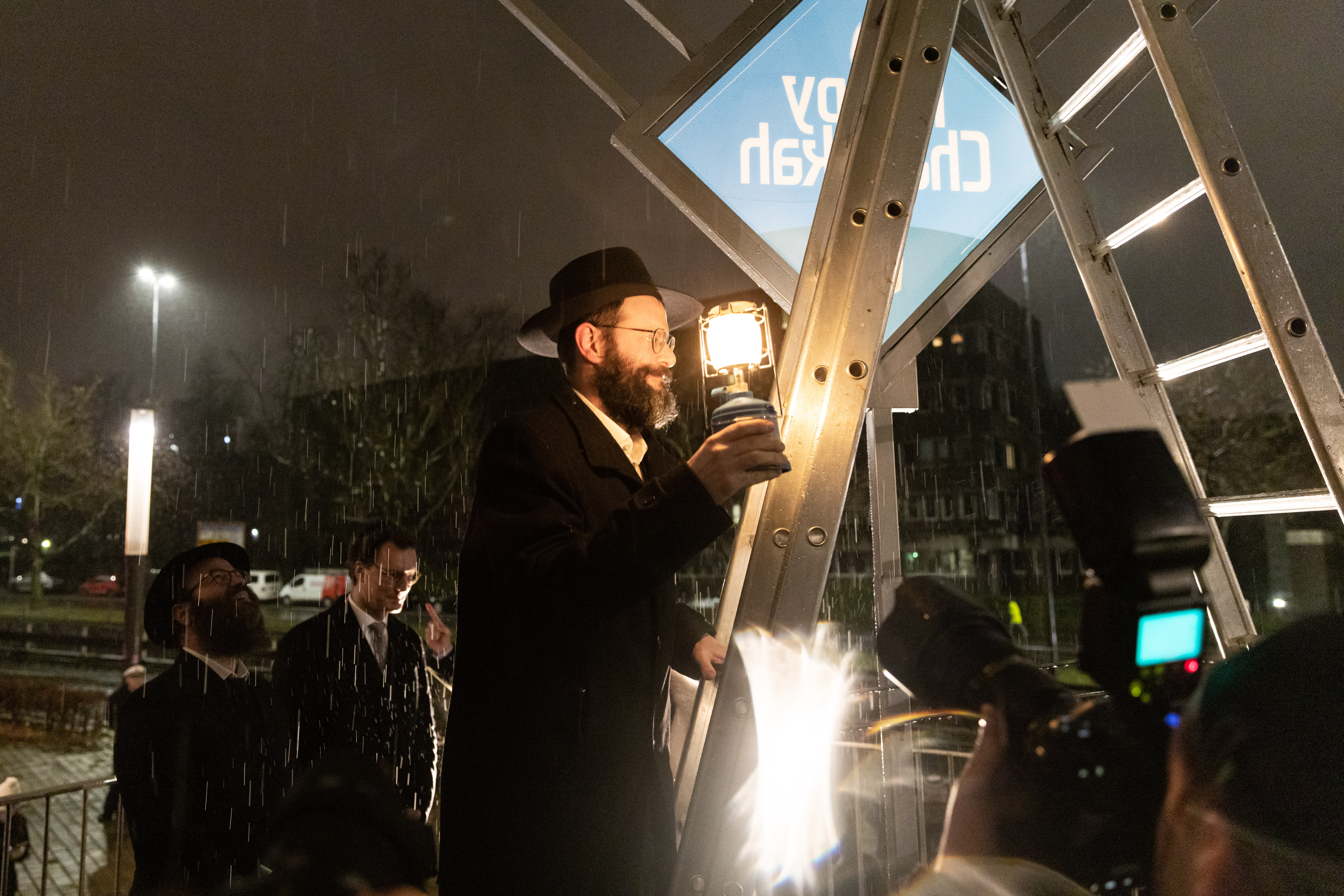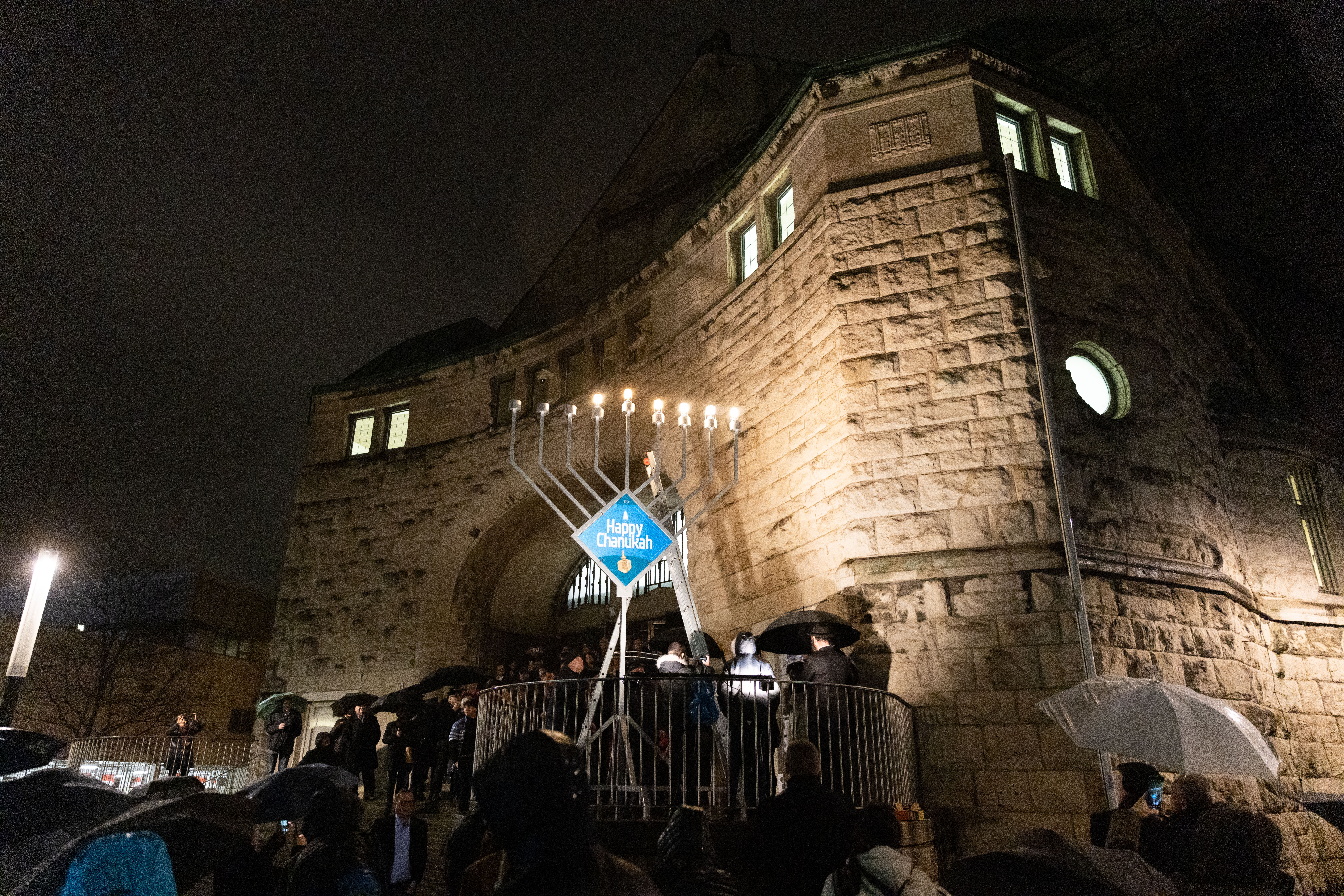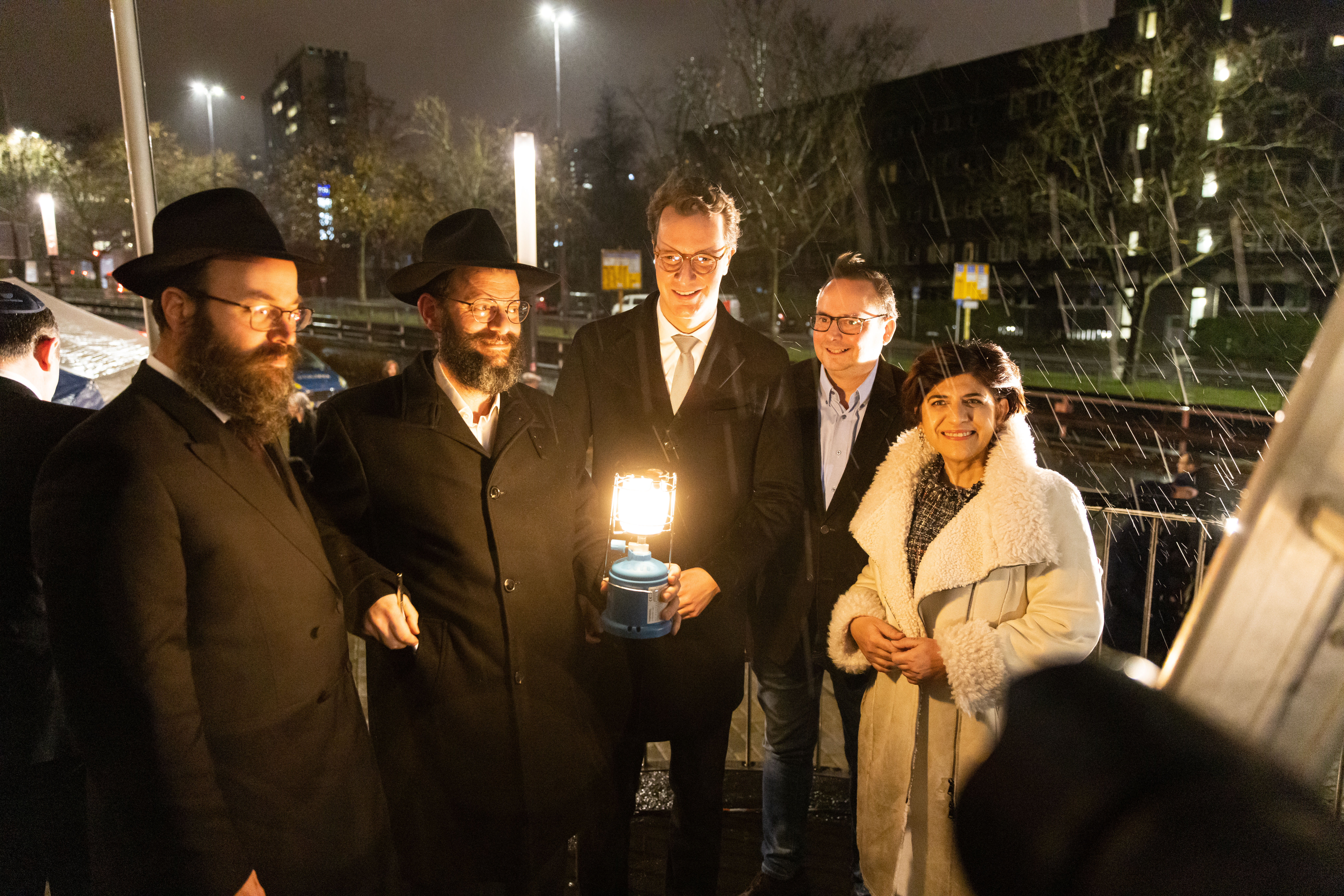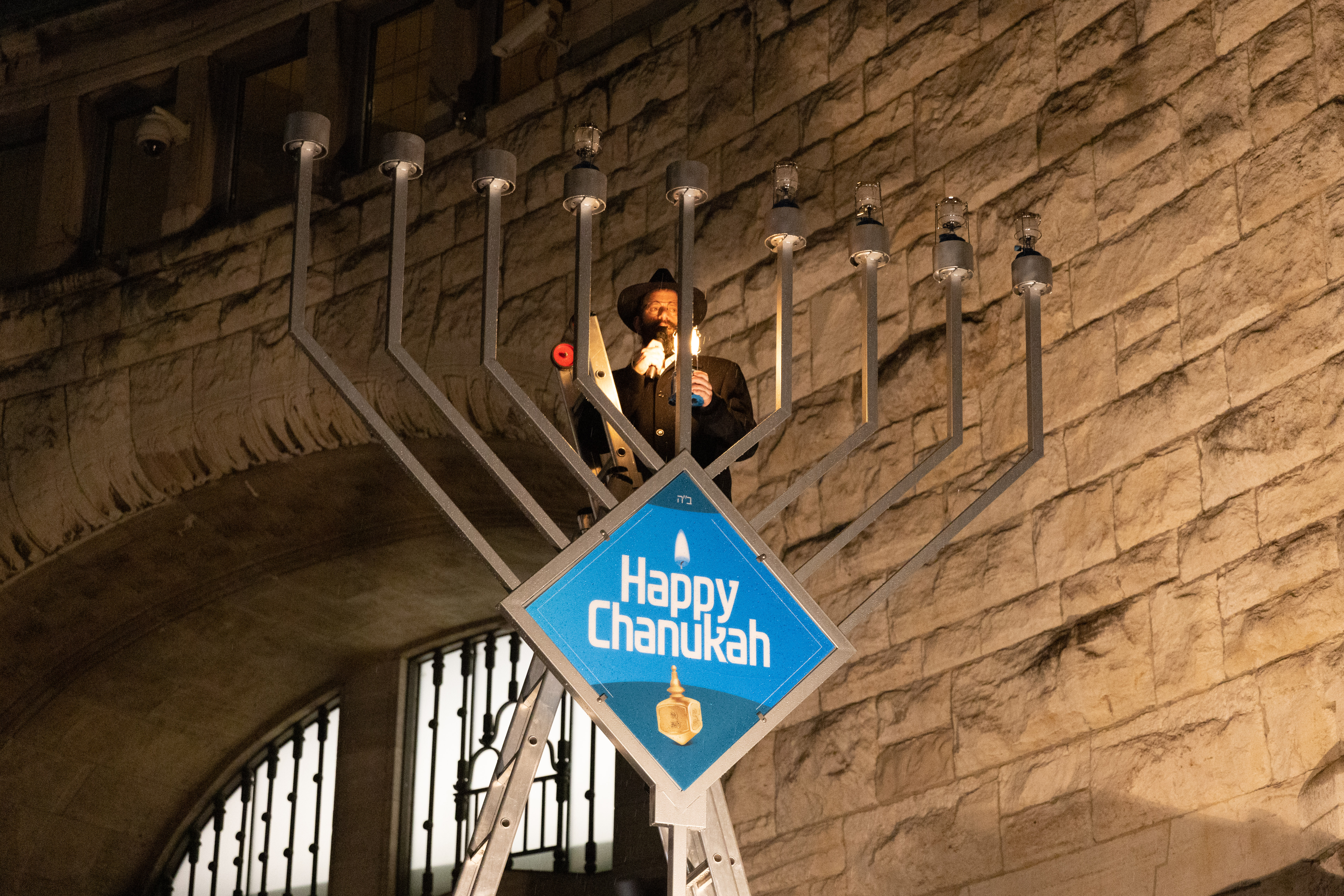 Ministerpräsident Hendrik Wüst nimmt am Festakt zum Entzünden der fünften Chanukka-Kerze in der Alten Synagoge Essen teil