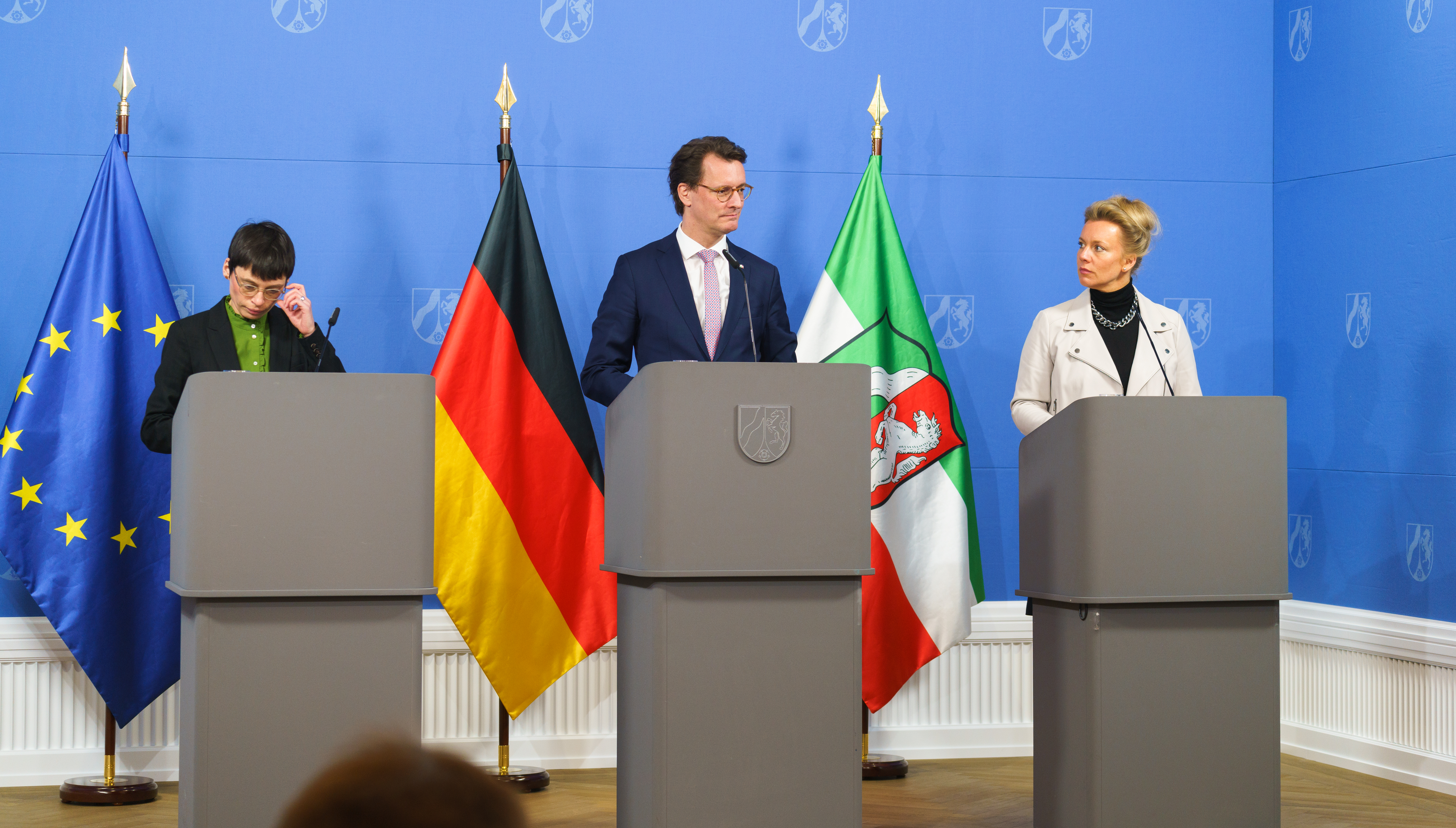 Im Nachgang der Kabinettsitzung informieren Ministerpräsident Hendrik Wüst, Ministerin für Kinder, Jugend, Familie, Gleichstellung, Flucht und Integration Josefine Paul und Ministerin für Kultur und Wissenschaft Ina Brandes über die Umsetzung weiterer Maßnahmen aus dem Sondervermögen „Bewältigung der Krisensituation in Folge des russischen Angriffskriegs in der Ukraine”.