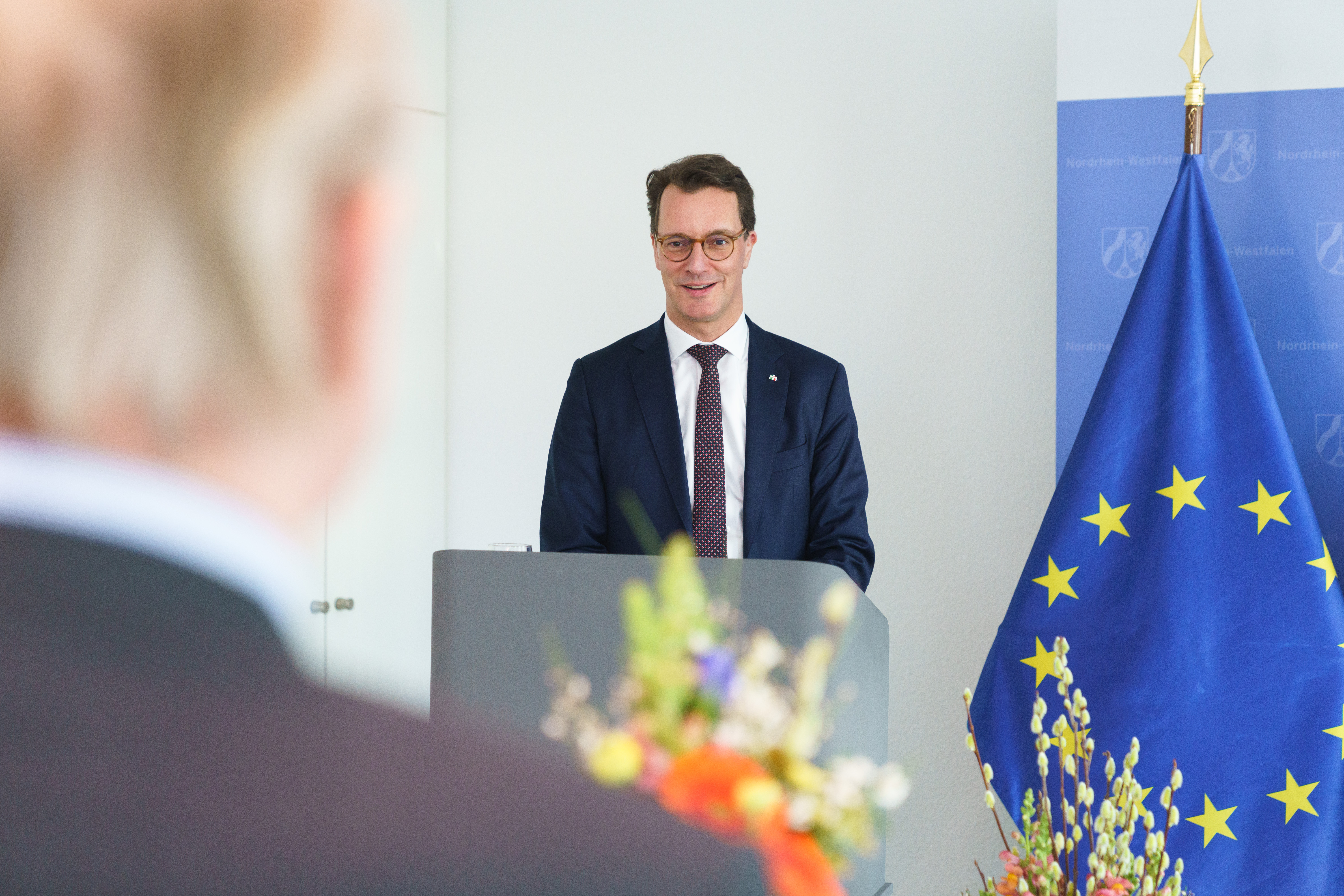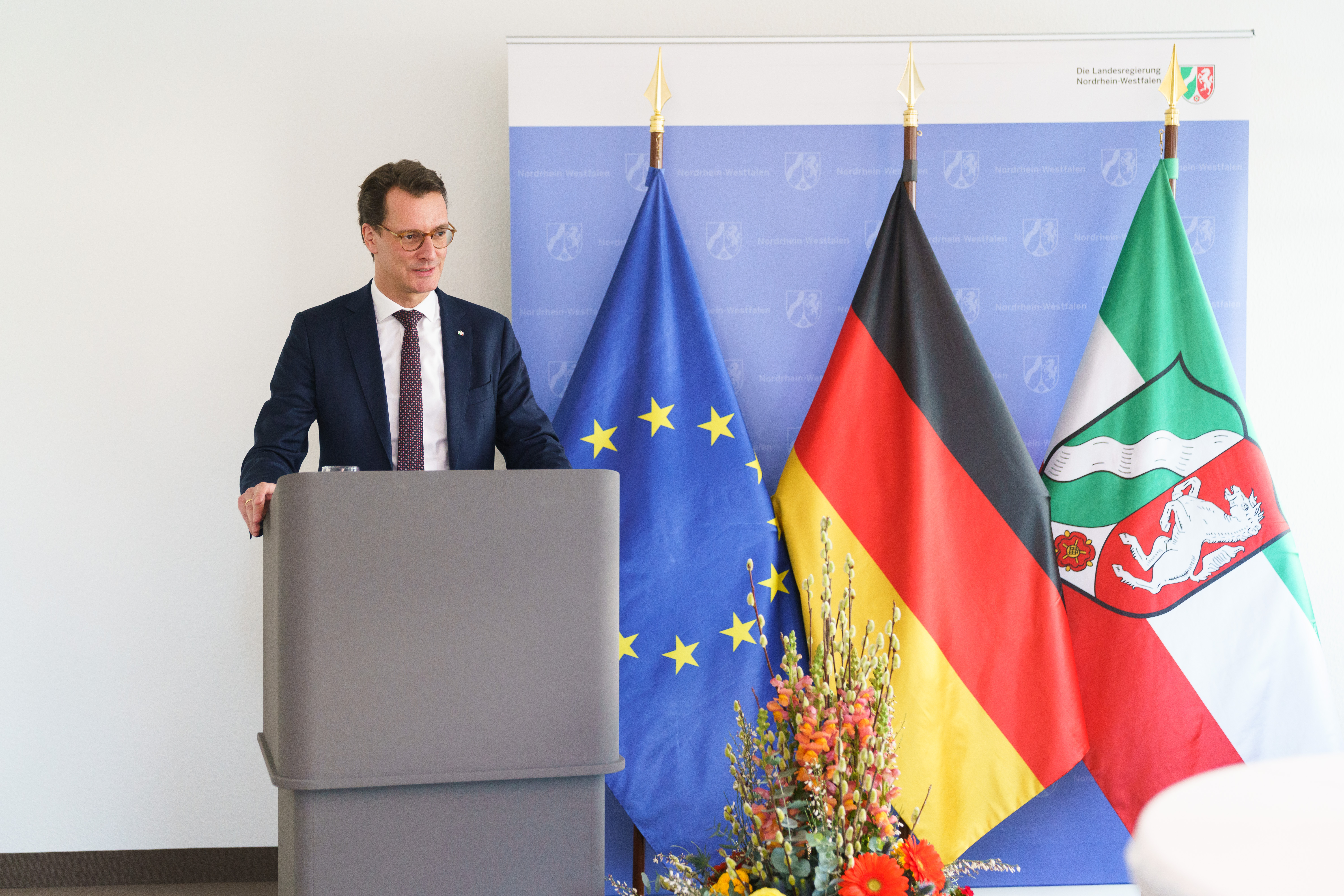 Ministerpräsident Hendrik Wüst hat den Verdienstorden der Bundesrepublik Deutschland an Hendrik Snoek ausgehändigt. Hendrik Snoek gilt als einer der erfolgreichsten Springreiter des Landes und setzt sich neben seinem sportlichen Engagement auch für die Menschen und die Kultur in seiner Heimat Münster ein.