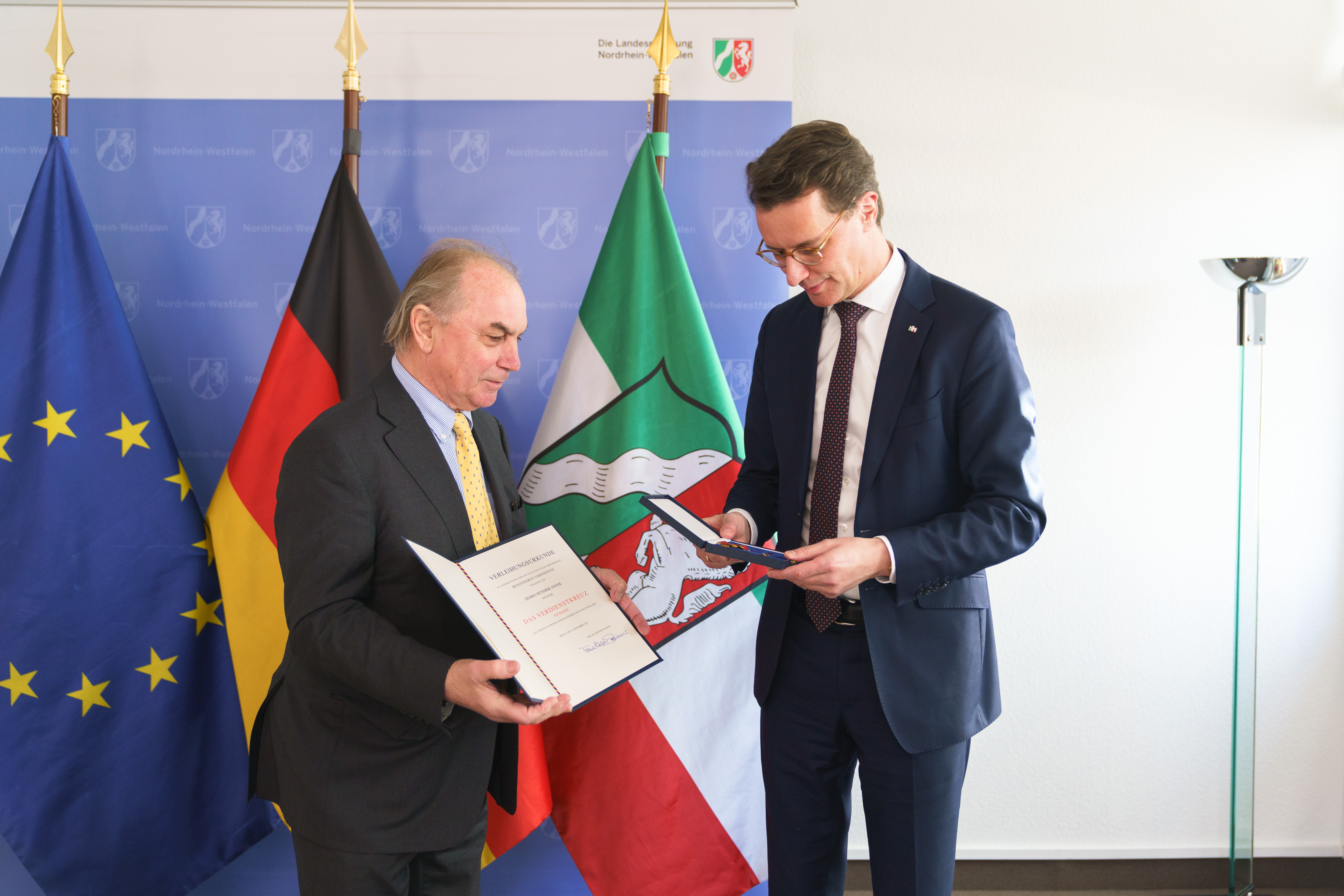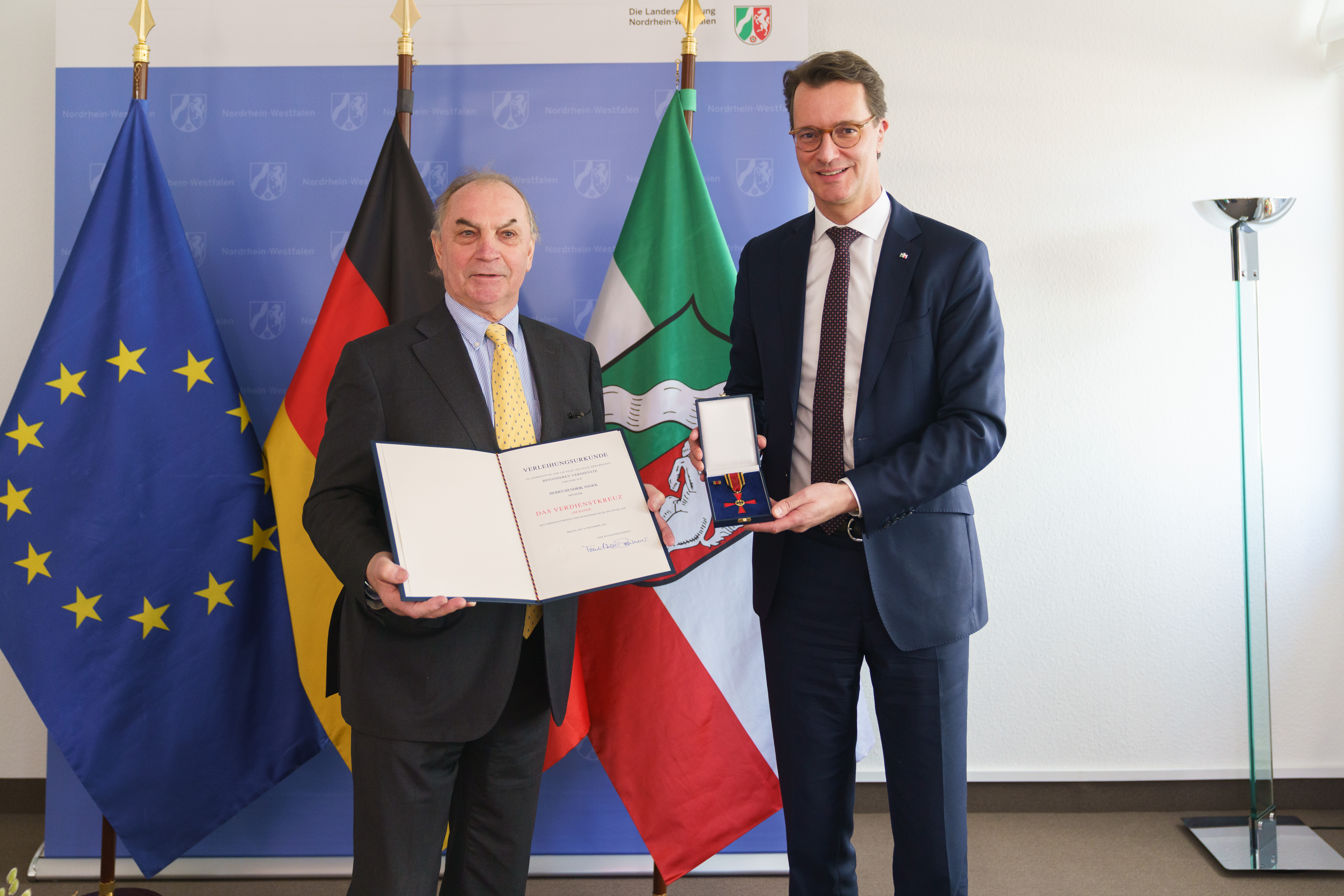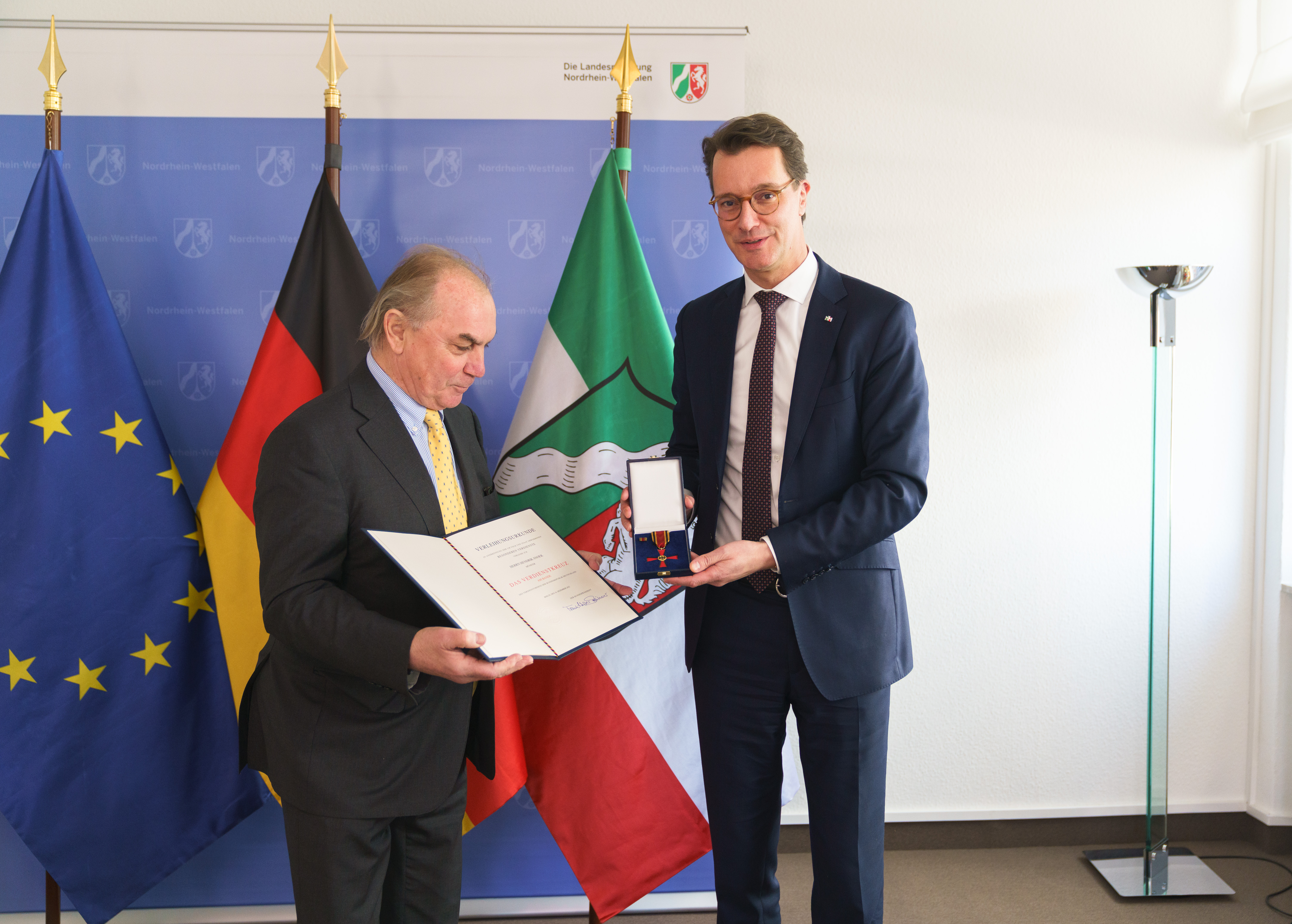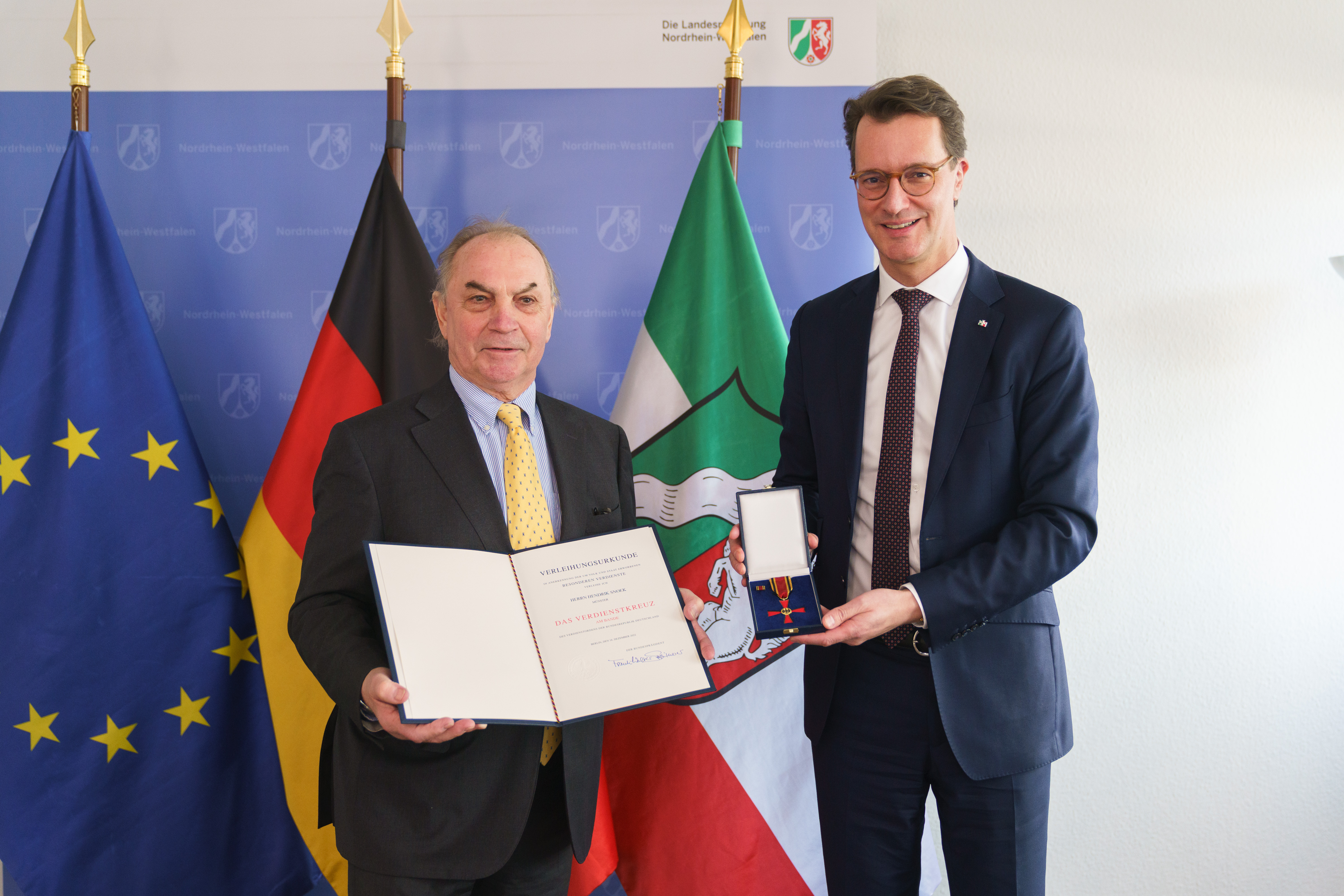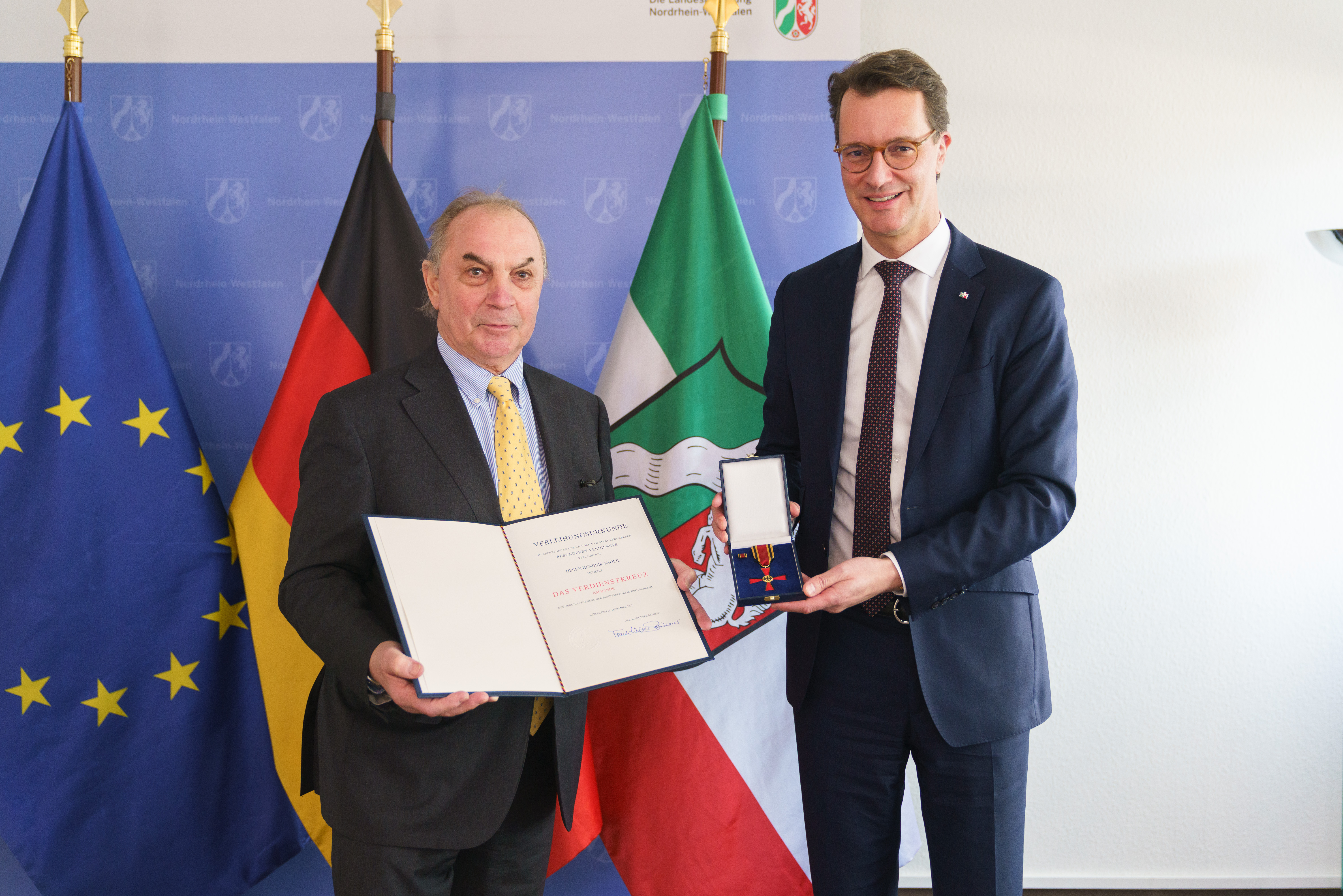 Ministerpräsident Wüst händigt Hendrik Snoek den Bundesverdienstorden aus
