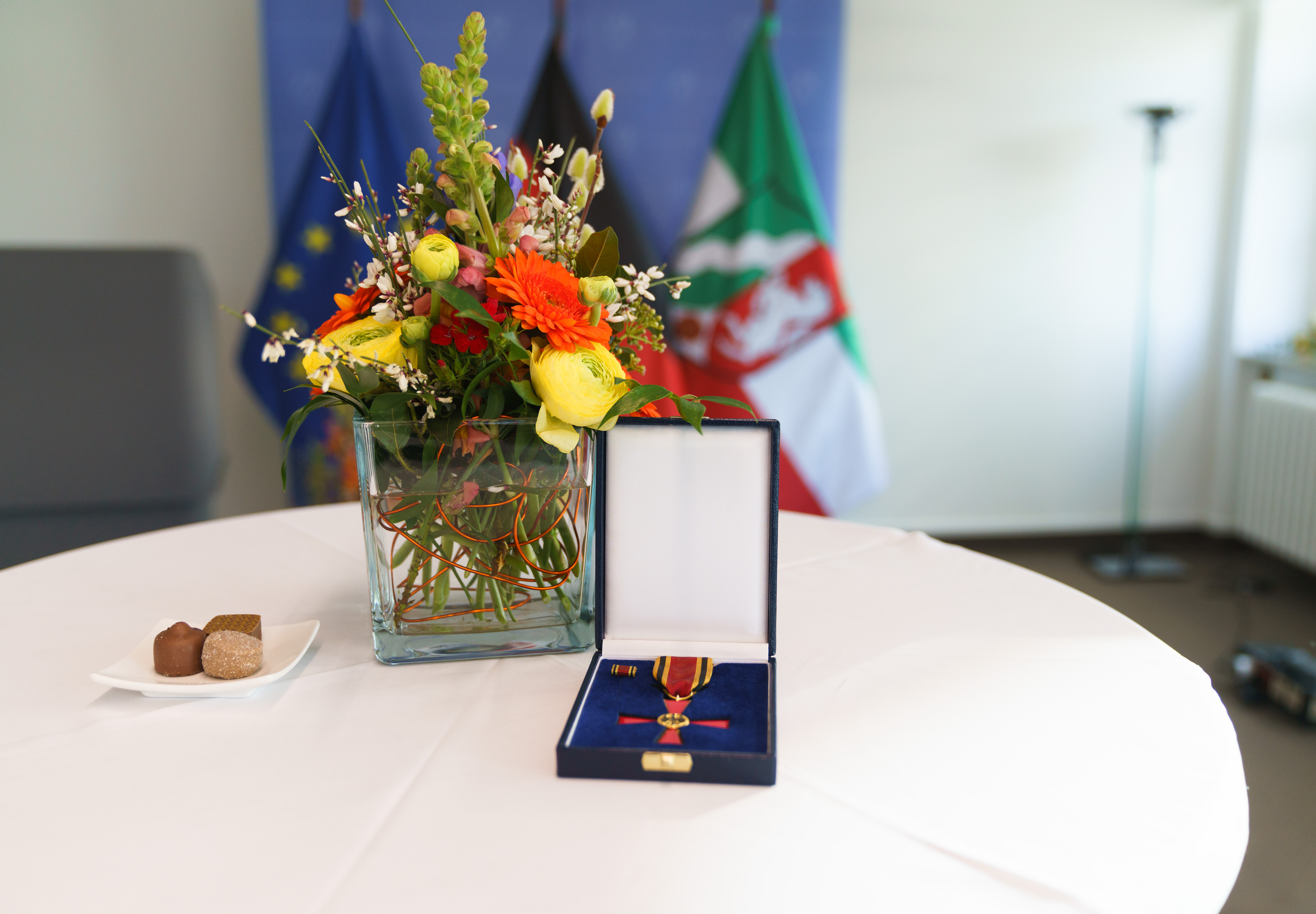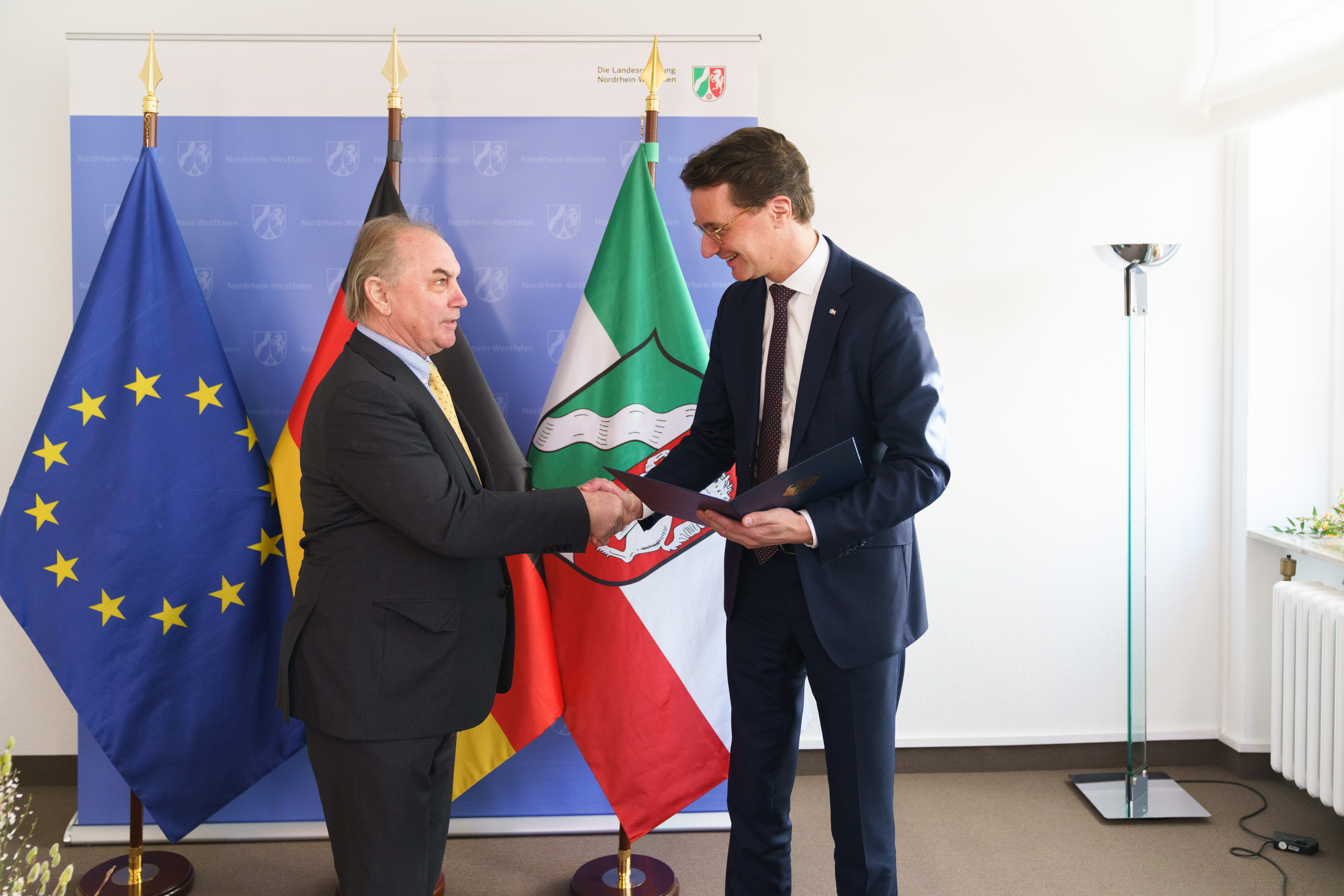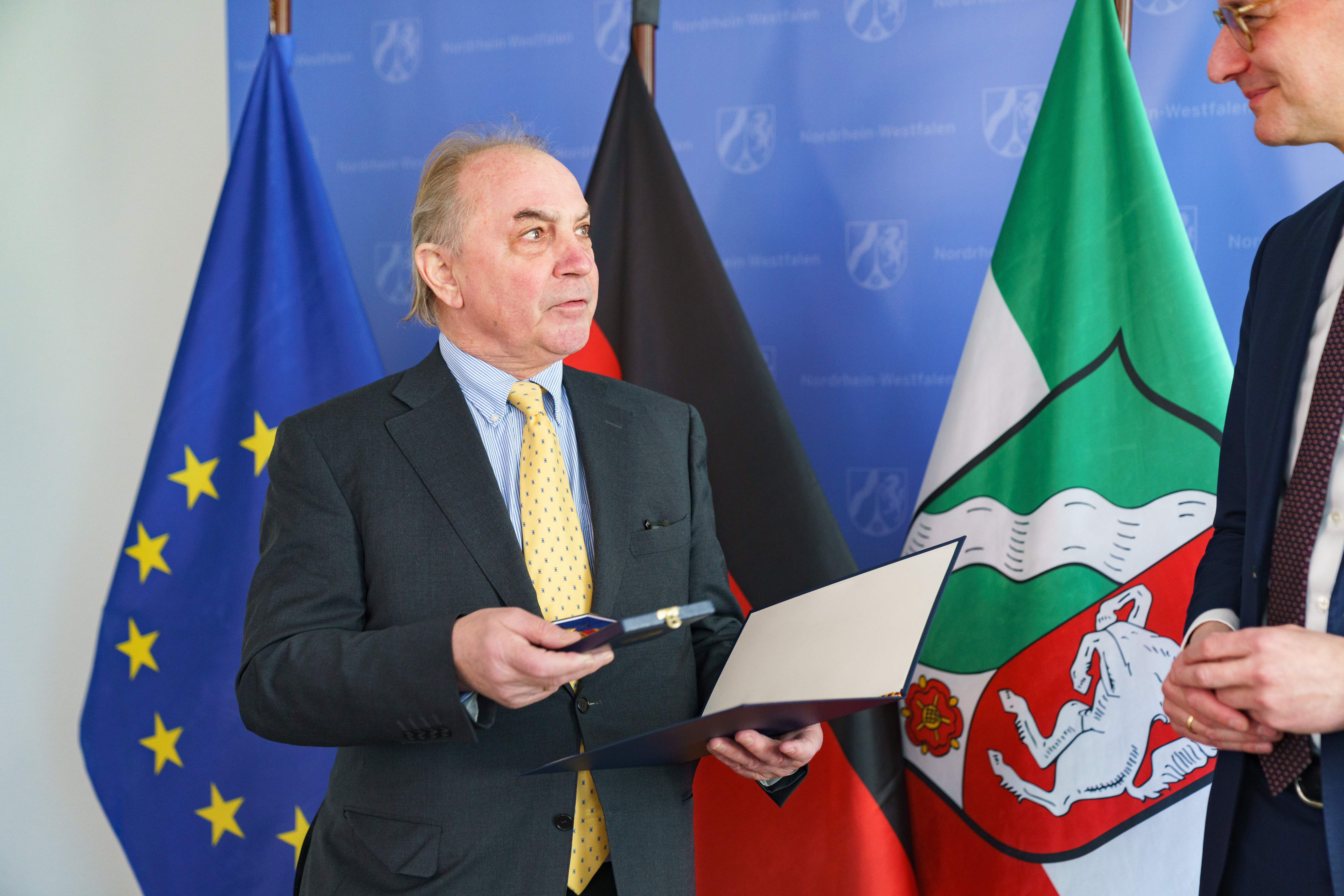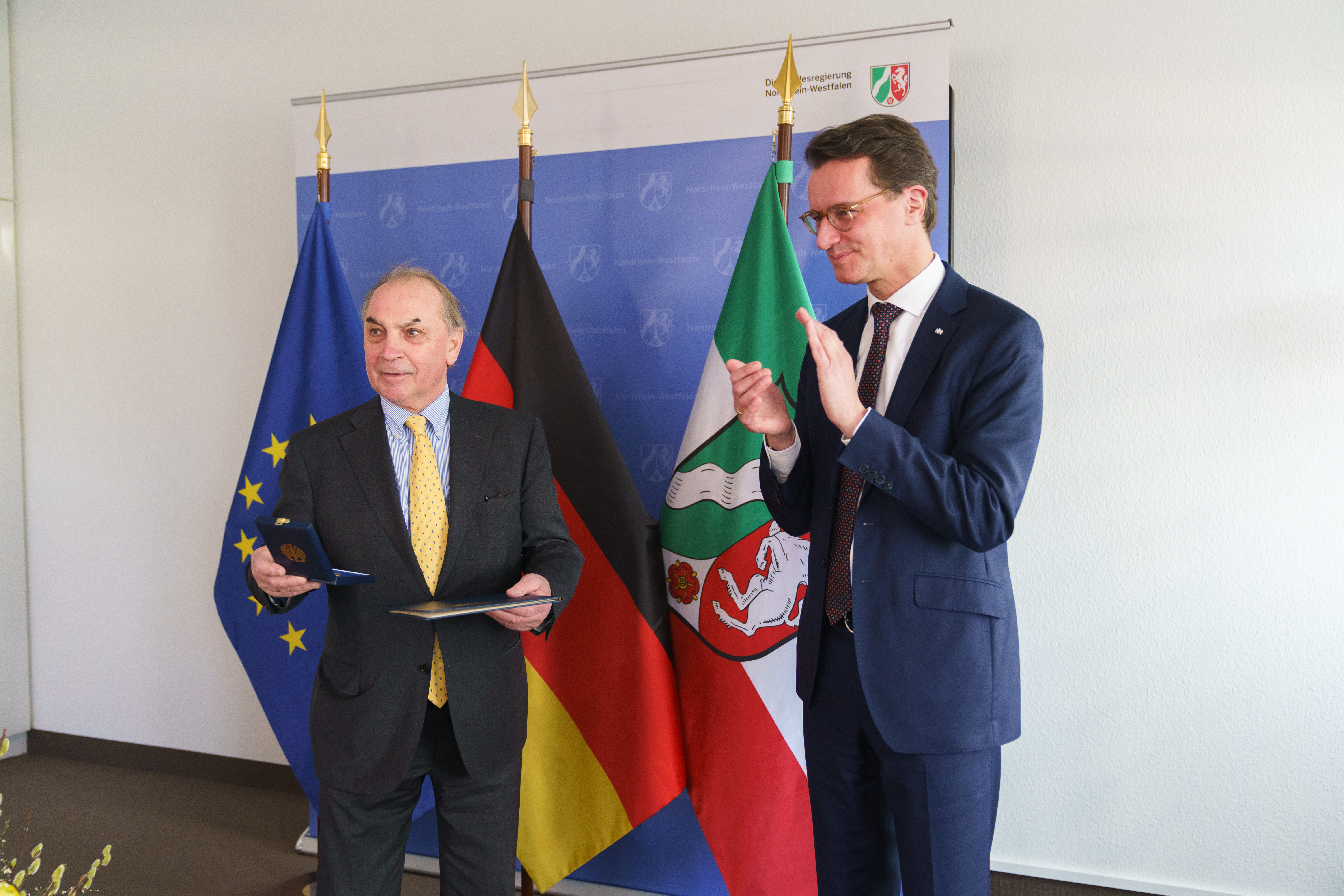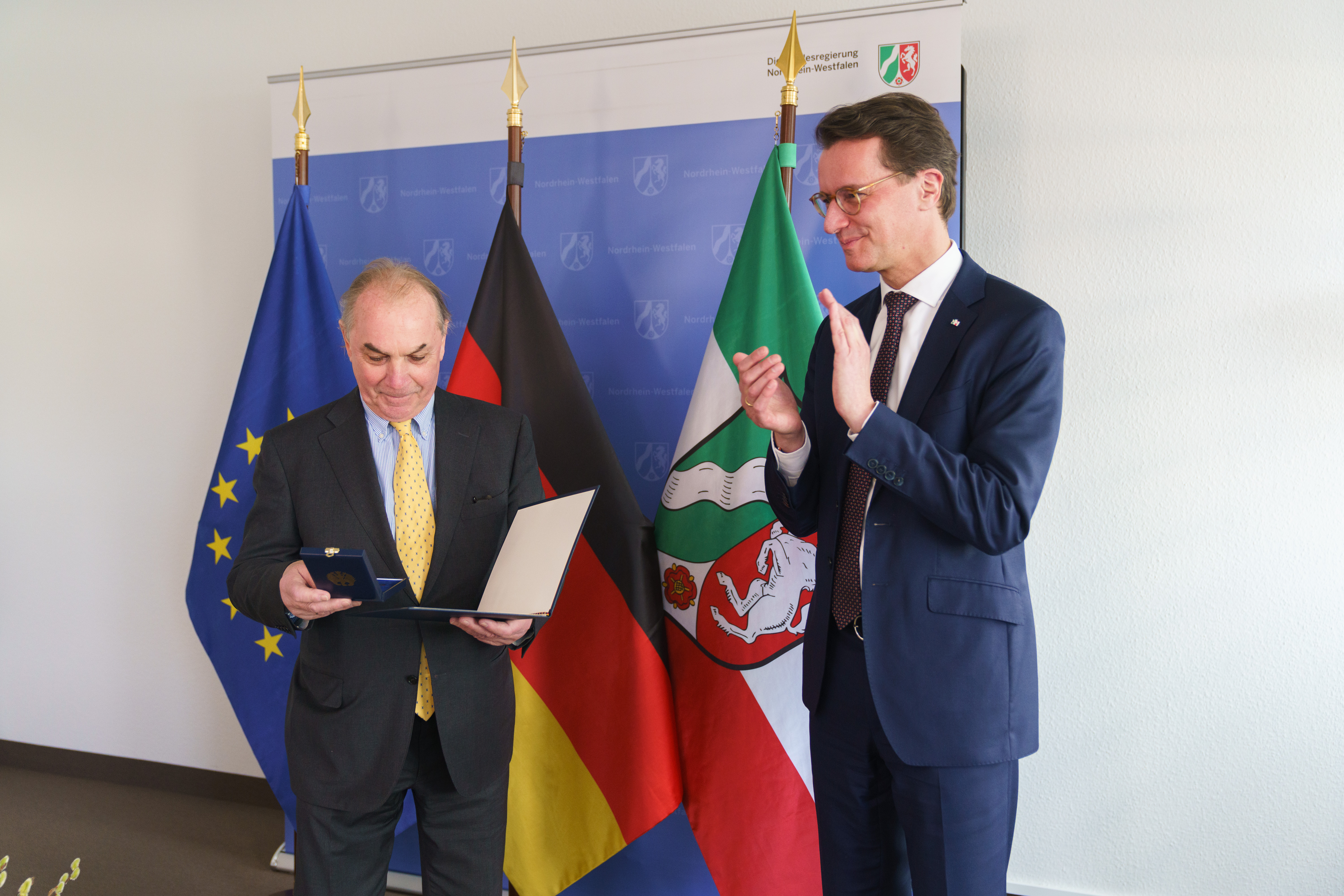Ministerpräsident Wüst händigt Hendrik Snoek den Bundesverdienstorden aus
