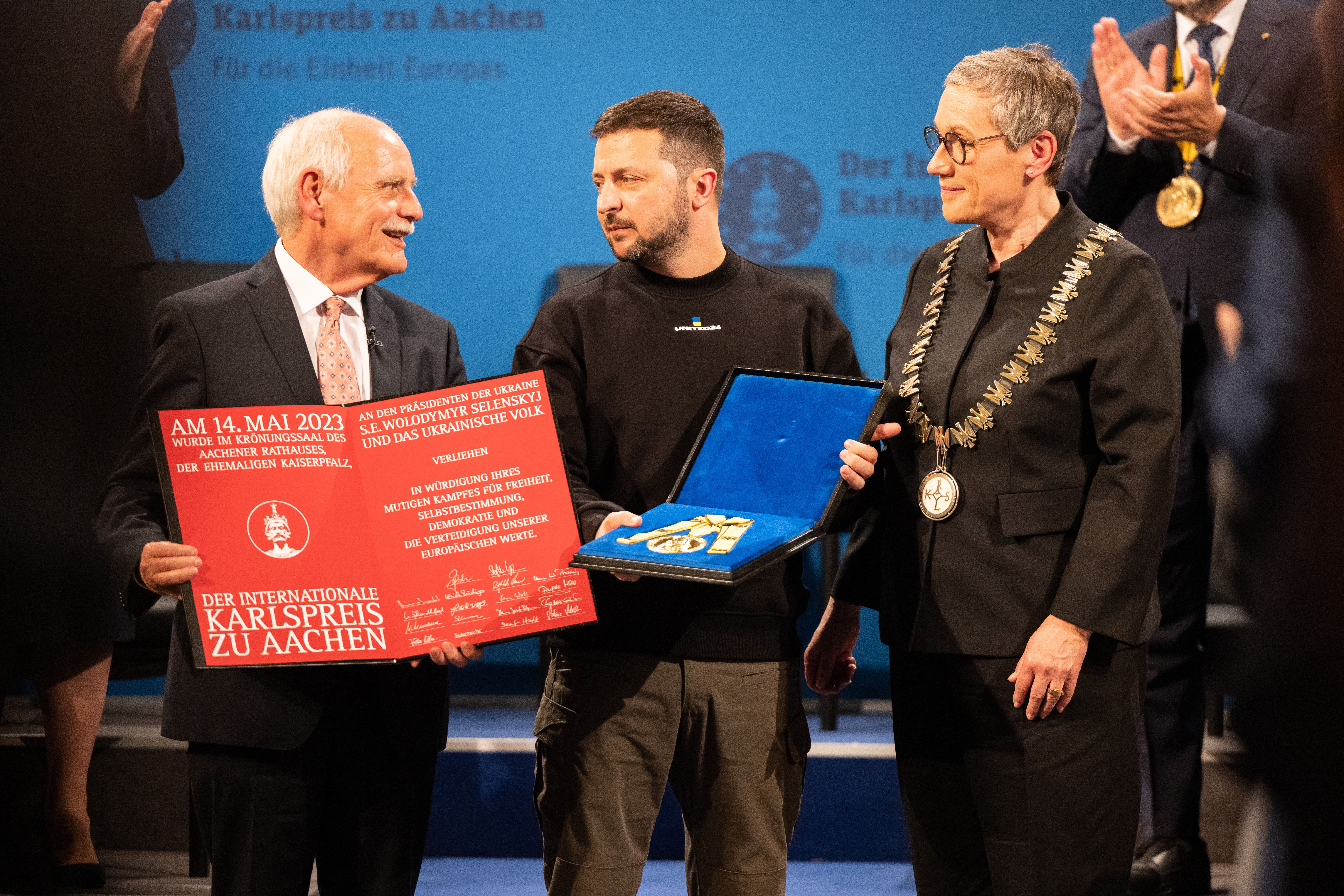 Präsident Wolodymyr Selenskyj und das ukrainische Volk werden mit dem Internationalen Karlspreis zu Aachen ausgezeichnet