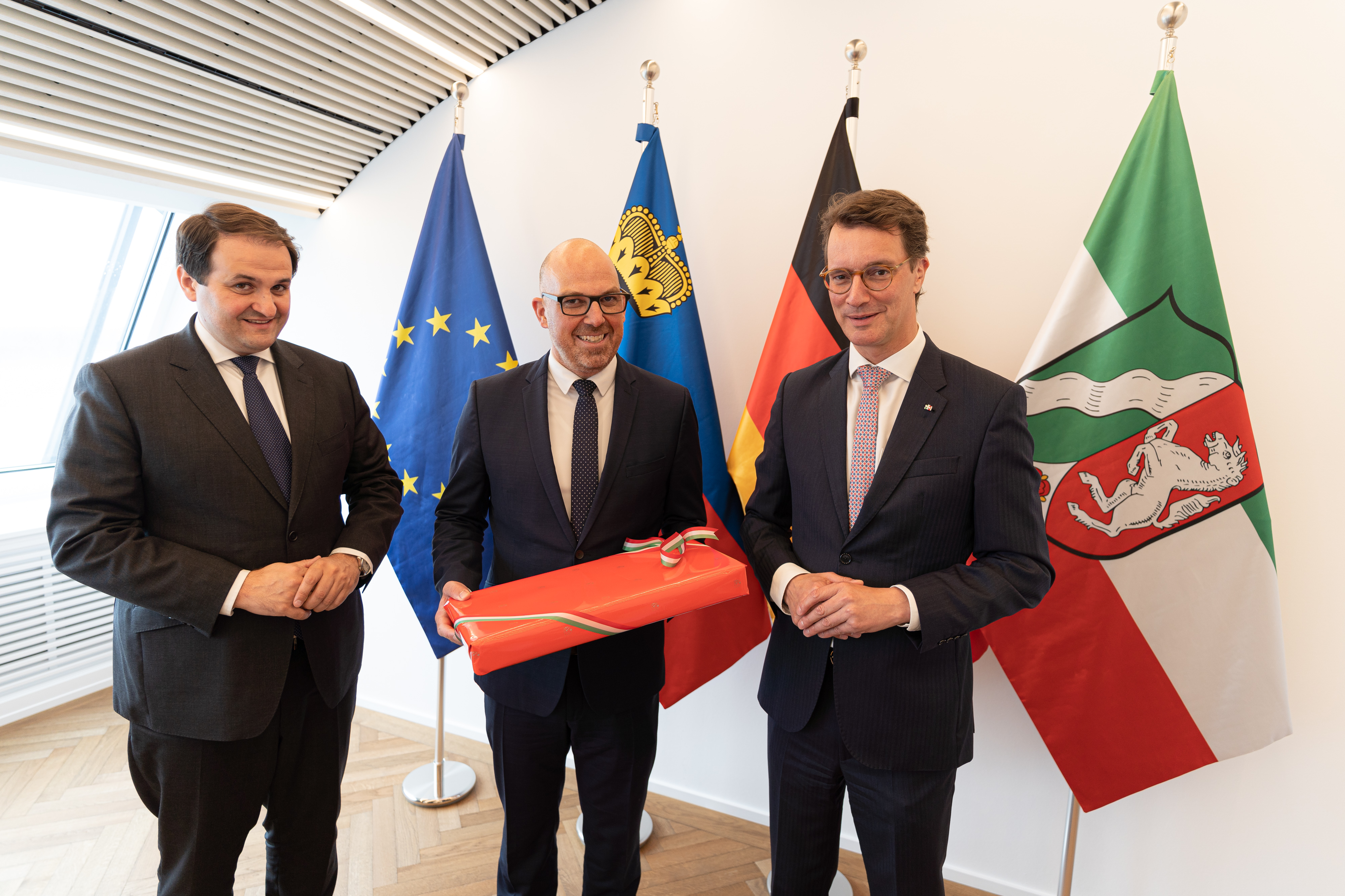 Am Mittwoch, 28. Juni 2023, hat Ministerpräsident Hendrik Wüst gemeinsam mit Europaminister Nathanael Liminski den Regierungschef des Fürstentums Liechtenstein Dr. Daniel Risch zum Gespräch in der Staatskanzlei empfangen.