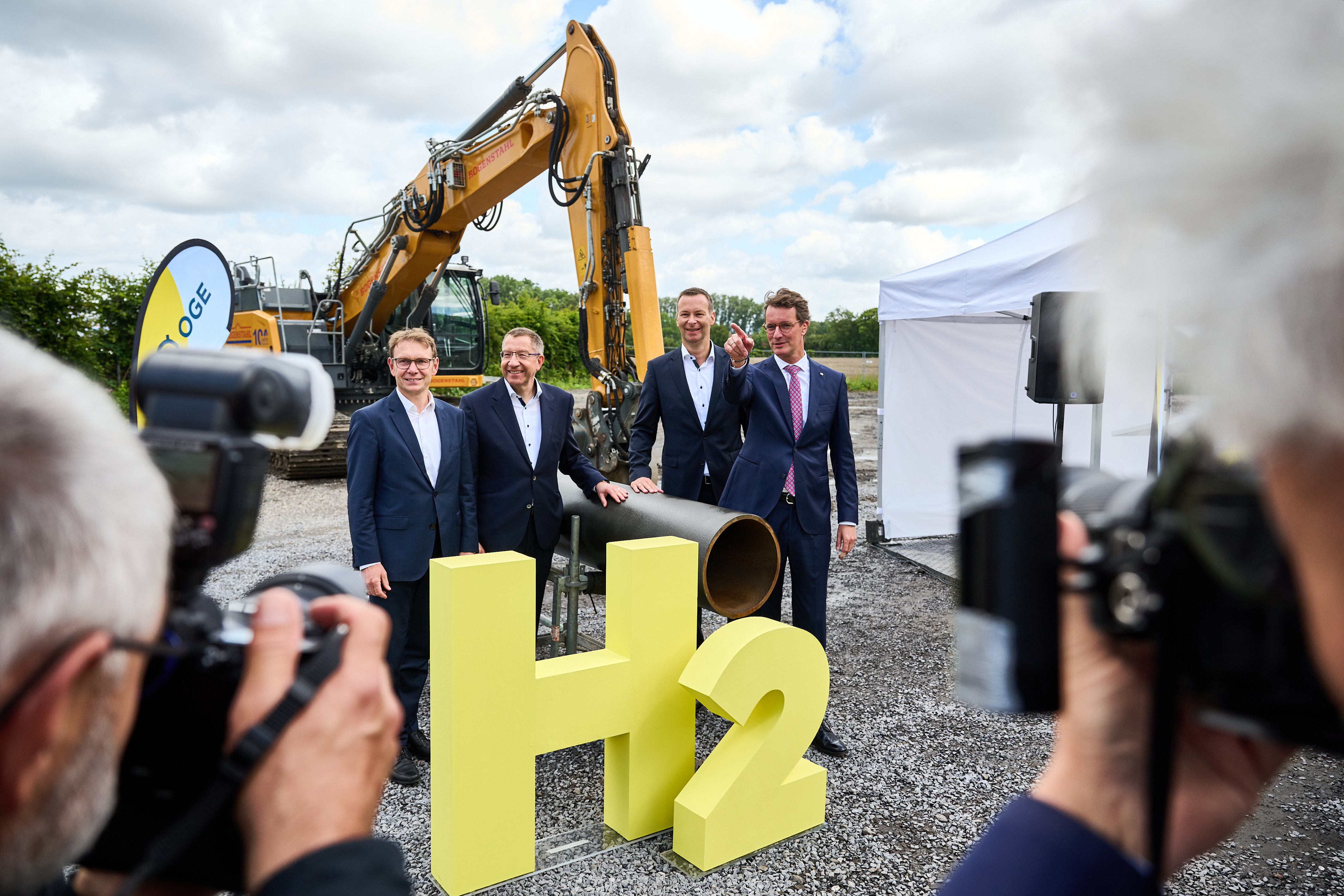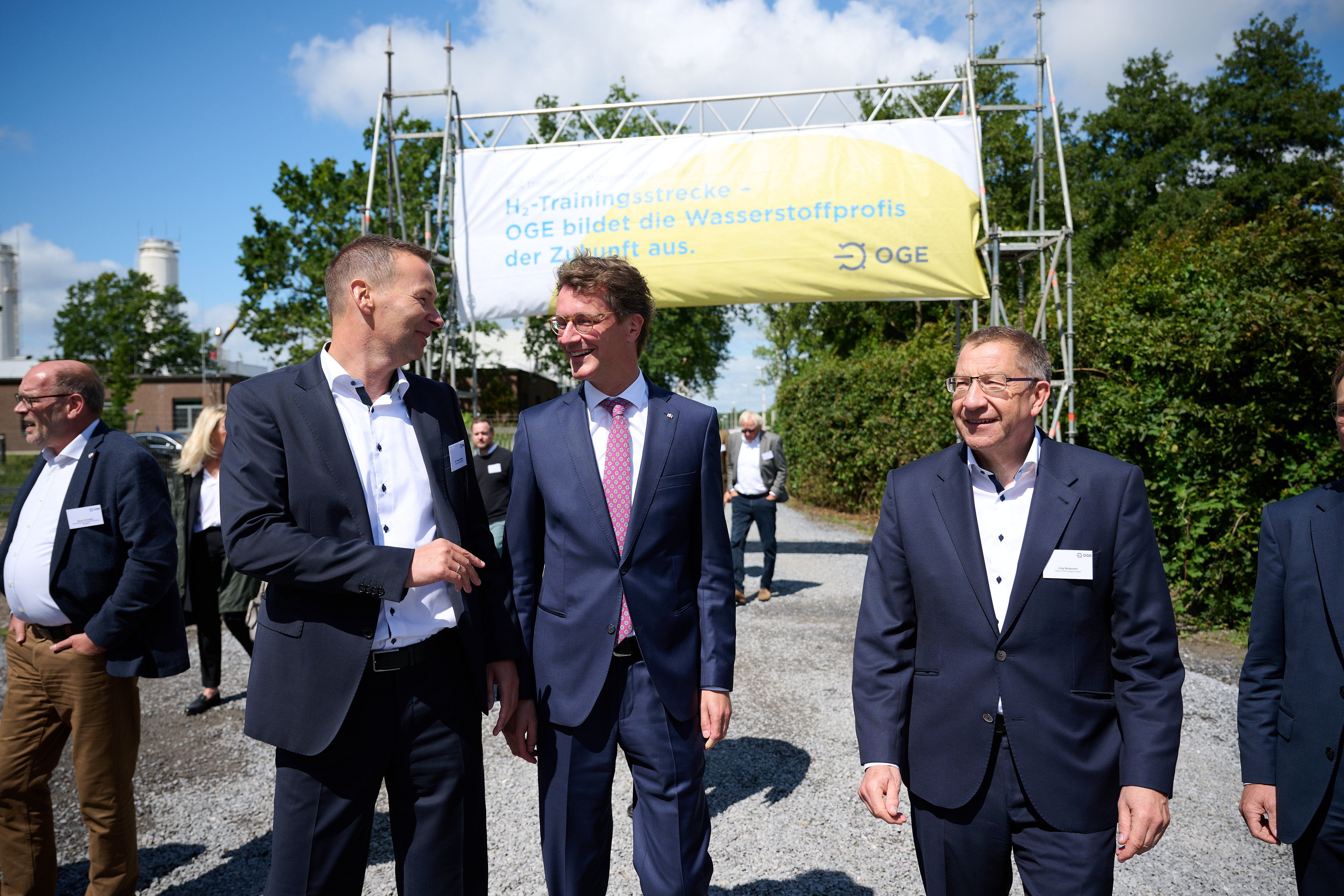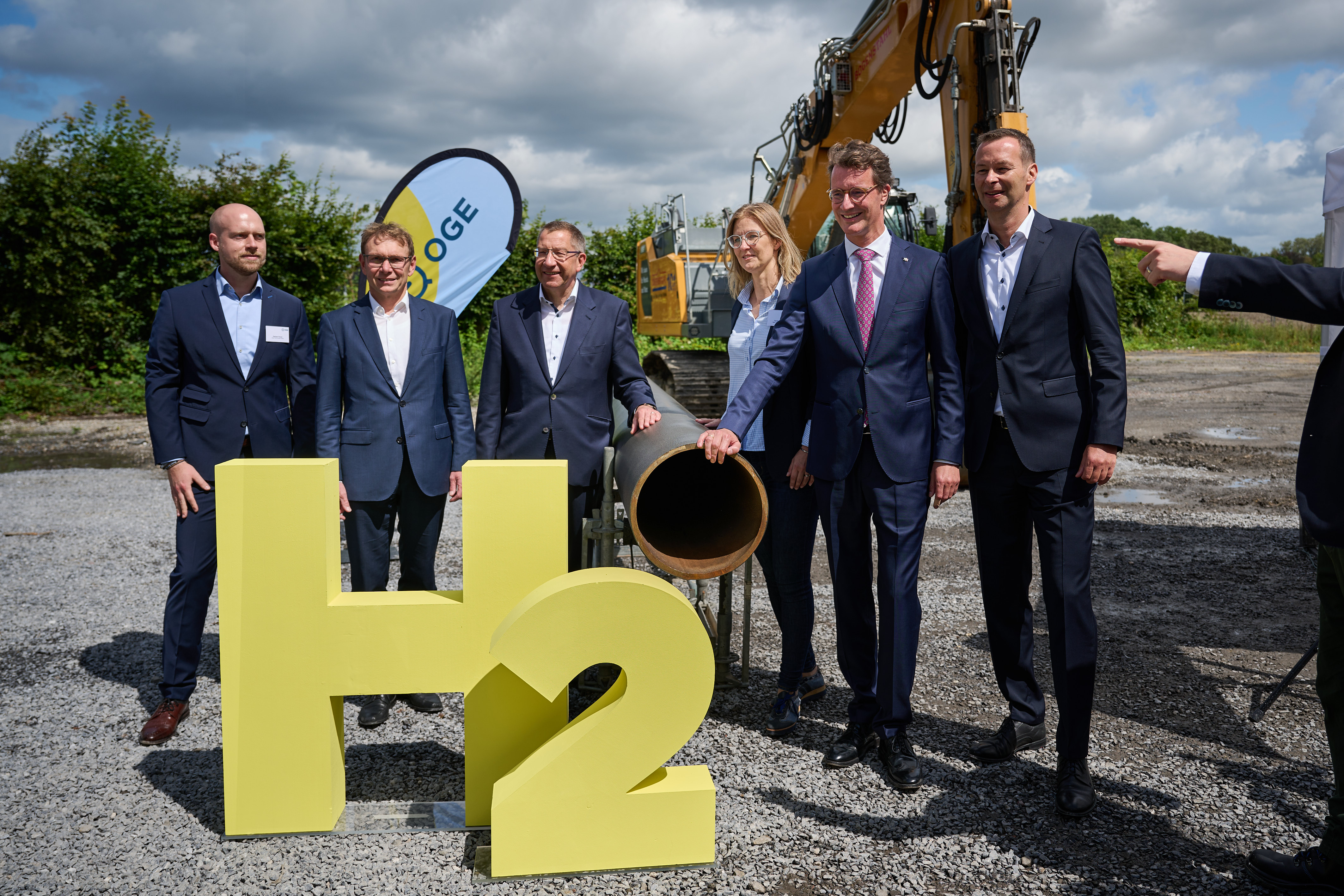 Ministerpräsident Hendrik Wüst besucht das Baugelände der H2-Trainingsstrecke gemeinsam mit Vertretern des Betreibers Open Grid Europa (OGE).