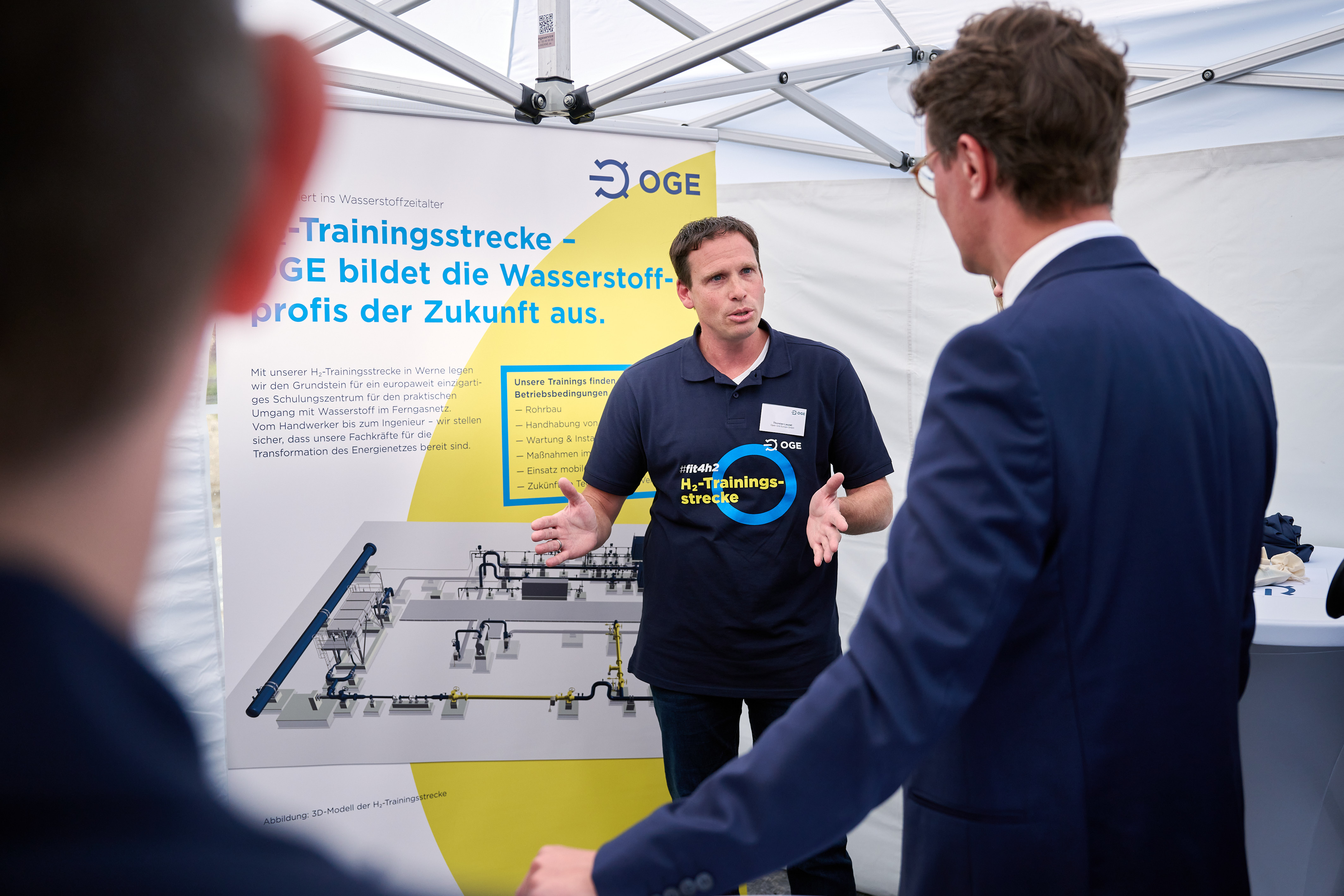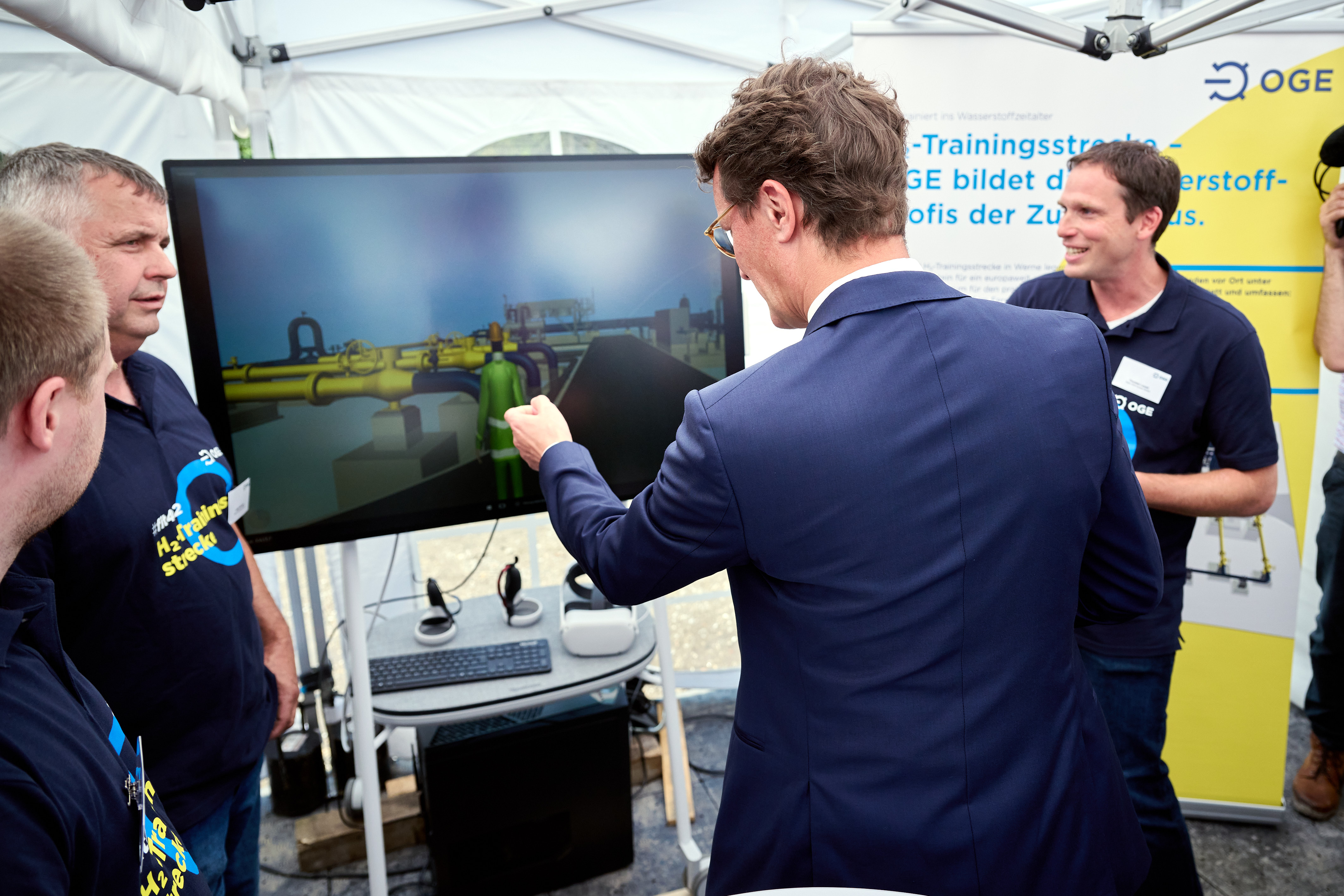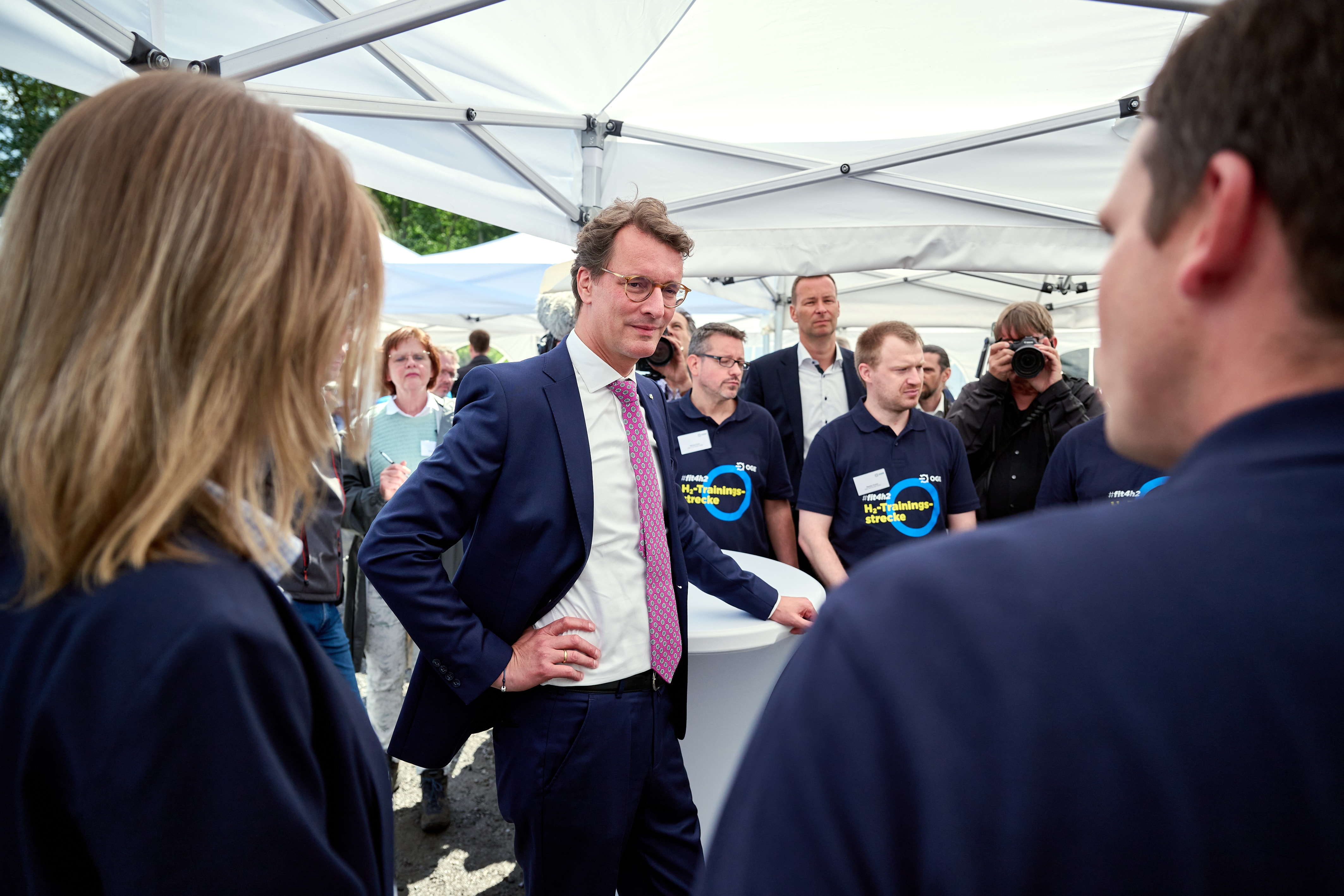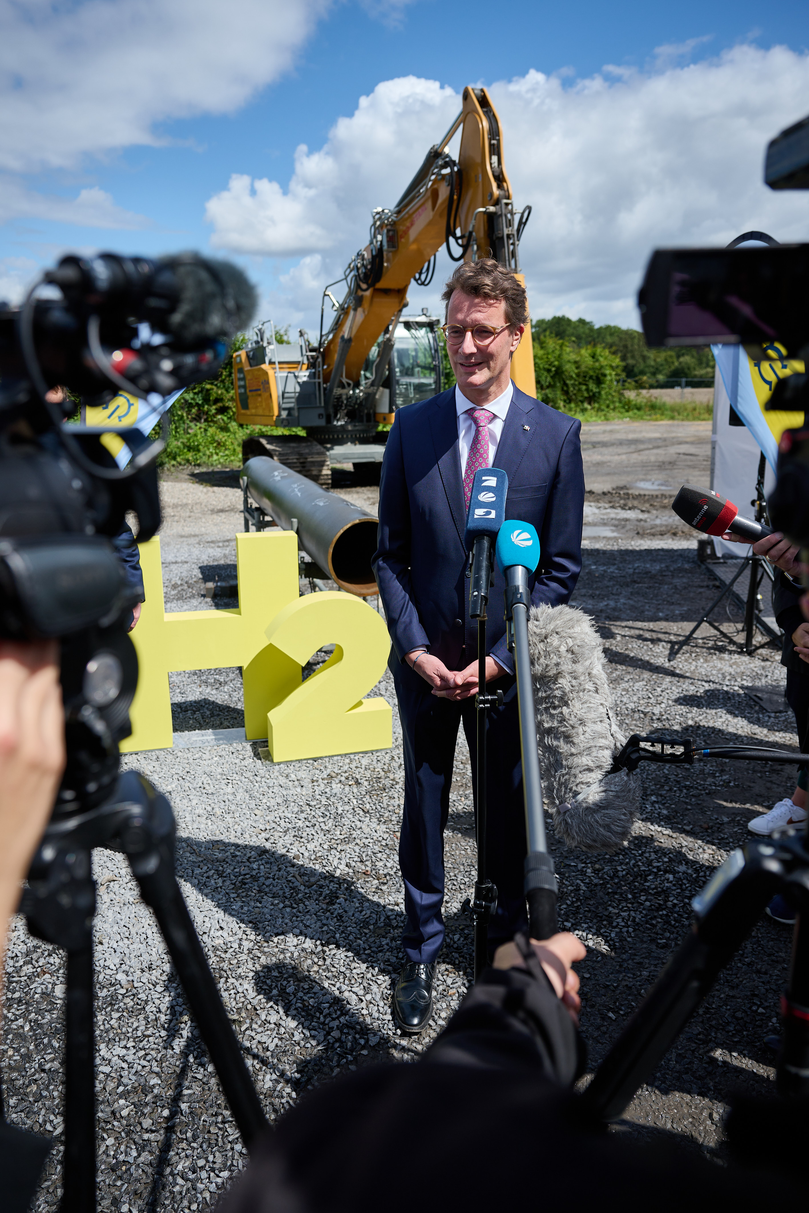 Ministerpräsident Hendrik Wüst besucht das Baugelände der H2-Trainingsstrecke gemeinsam mit Vertretern des Betreibers Open Grid Europa (OGE).
