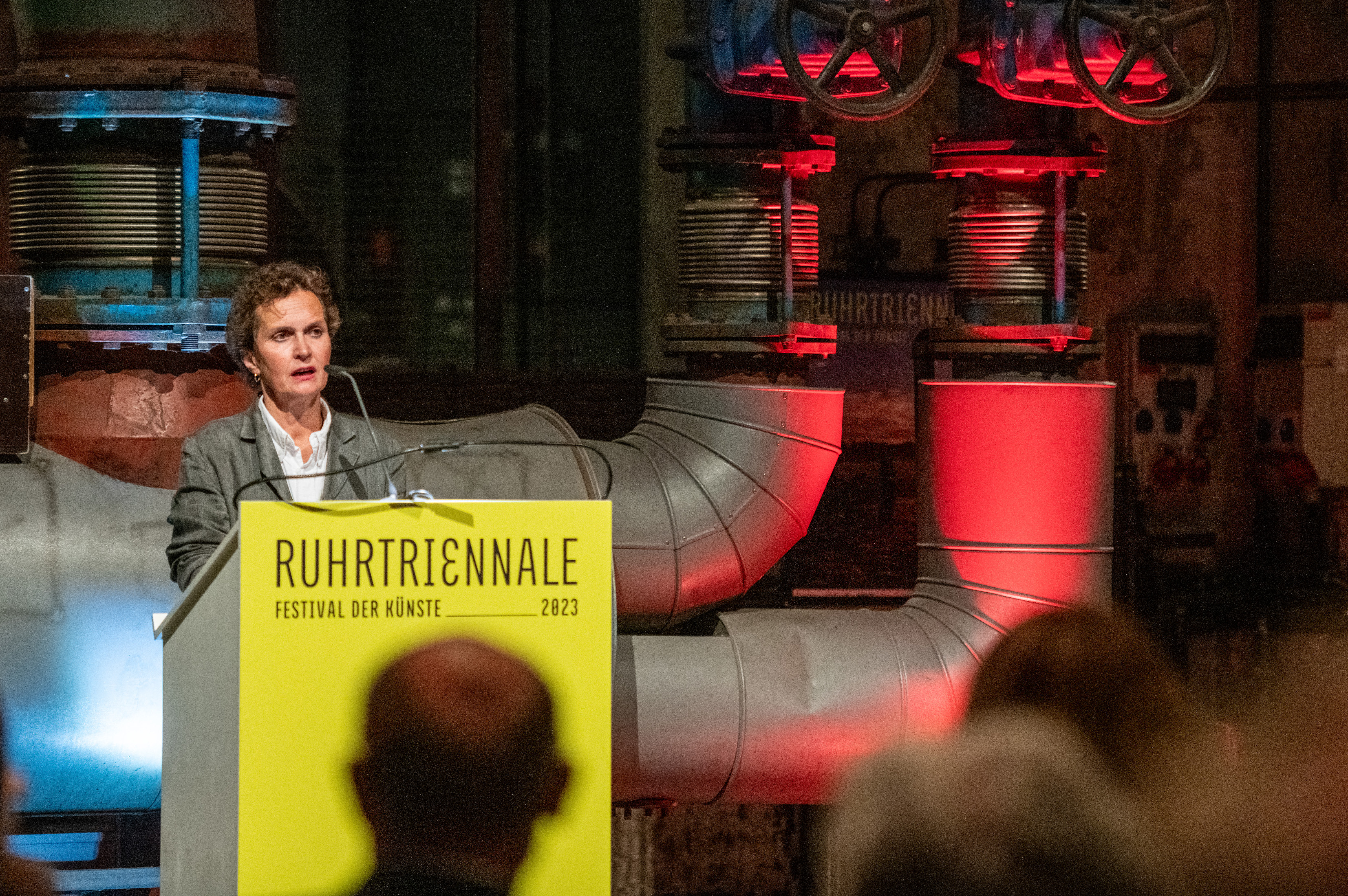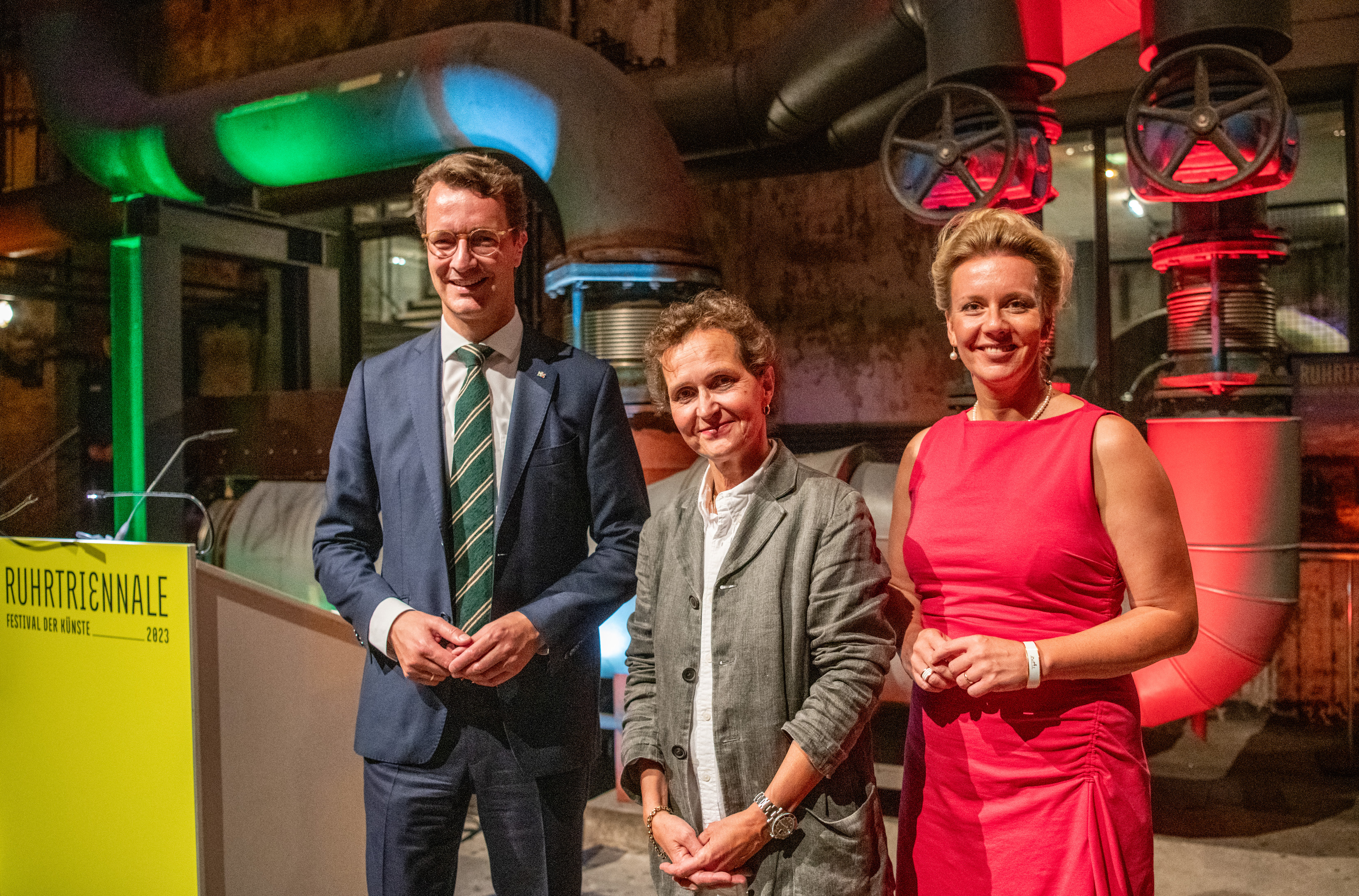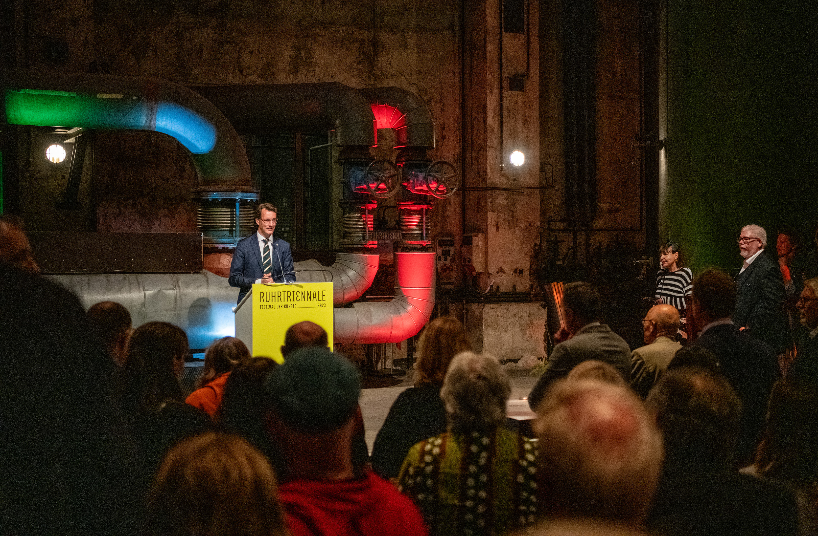 Ministerpräsident Hendrik Wüster öffnete am Abend im Landschaftspark die Ruhrtriennale 2023: „Die Vielfalt von Kunst & Kultur hat in der Region dazu beigetragen, dass ein einzigartiger Wandel vom Herzen der Montanindustrie zur modernen Metropolregion gelungen ist.“