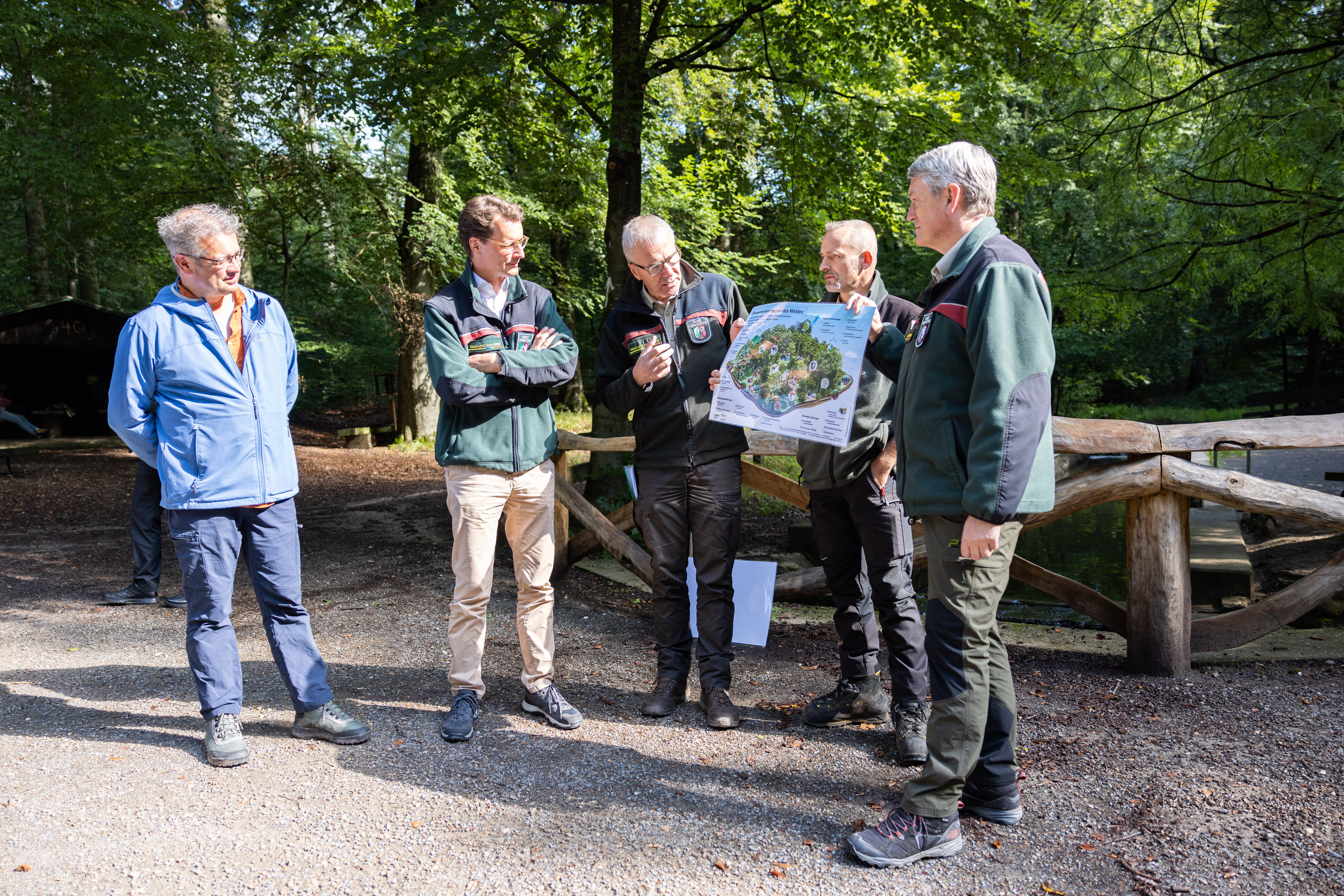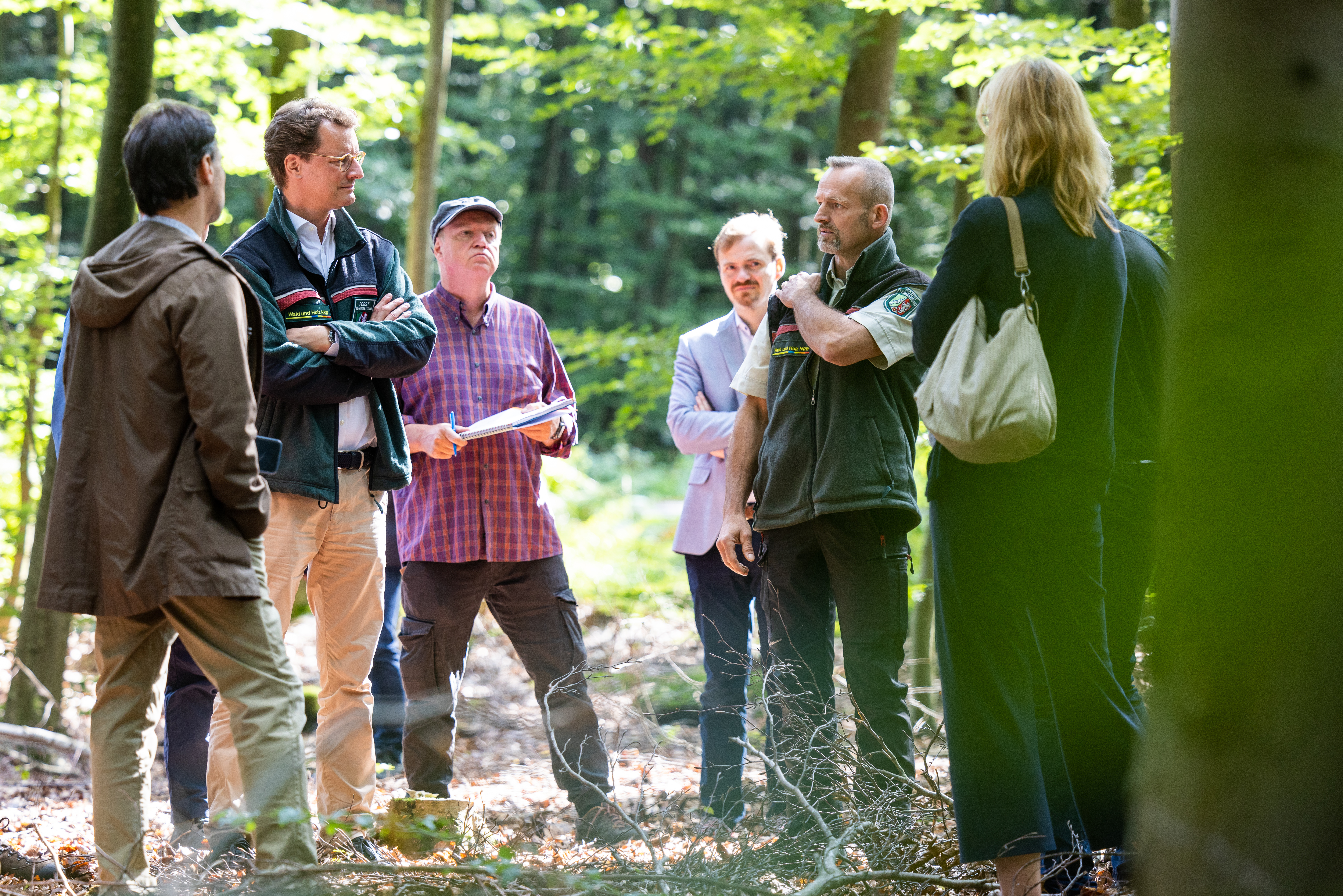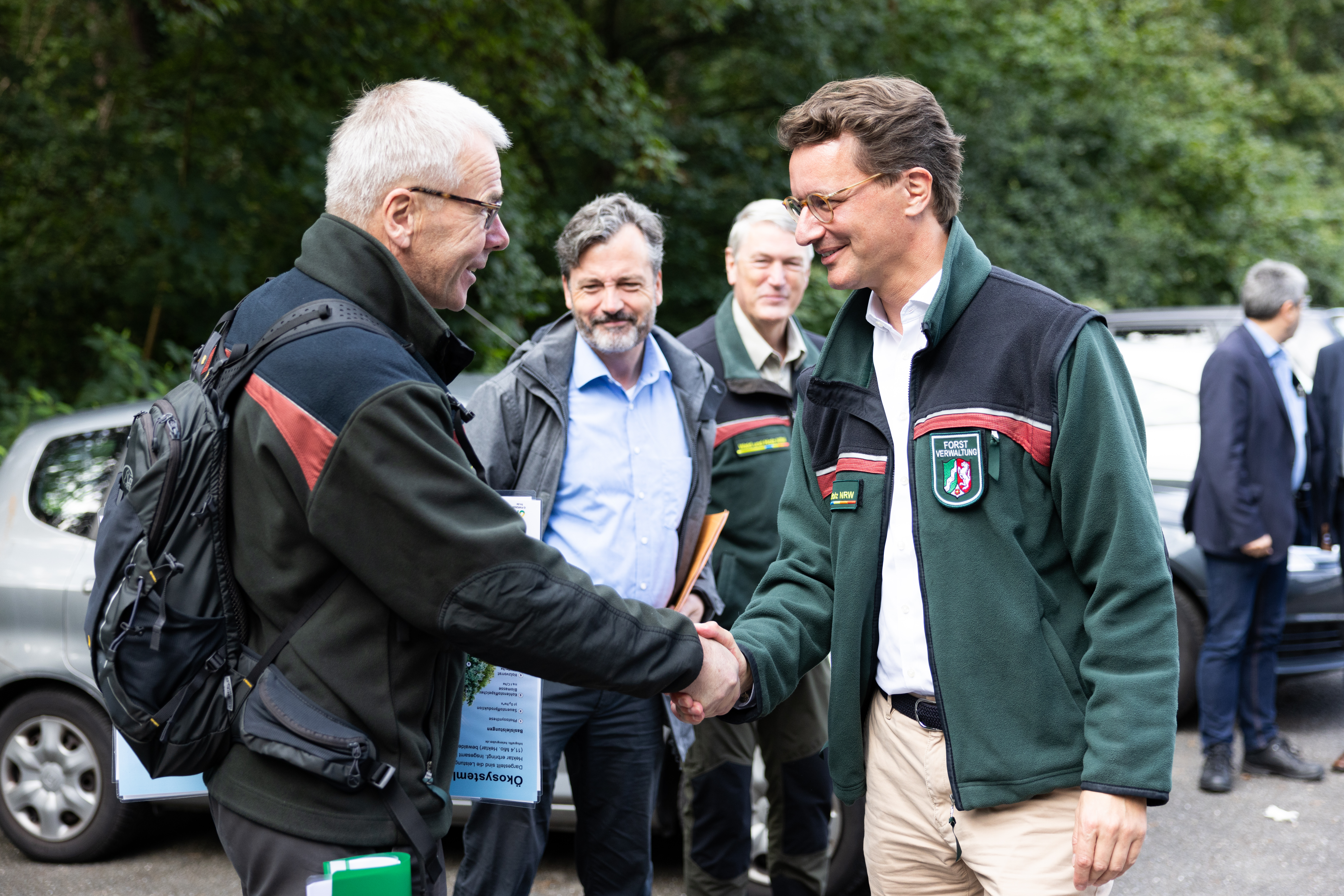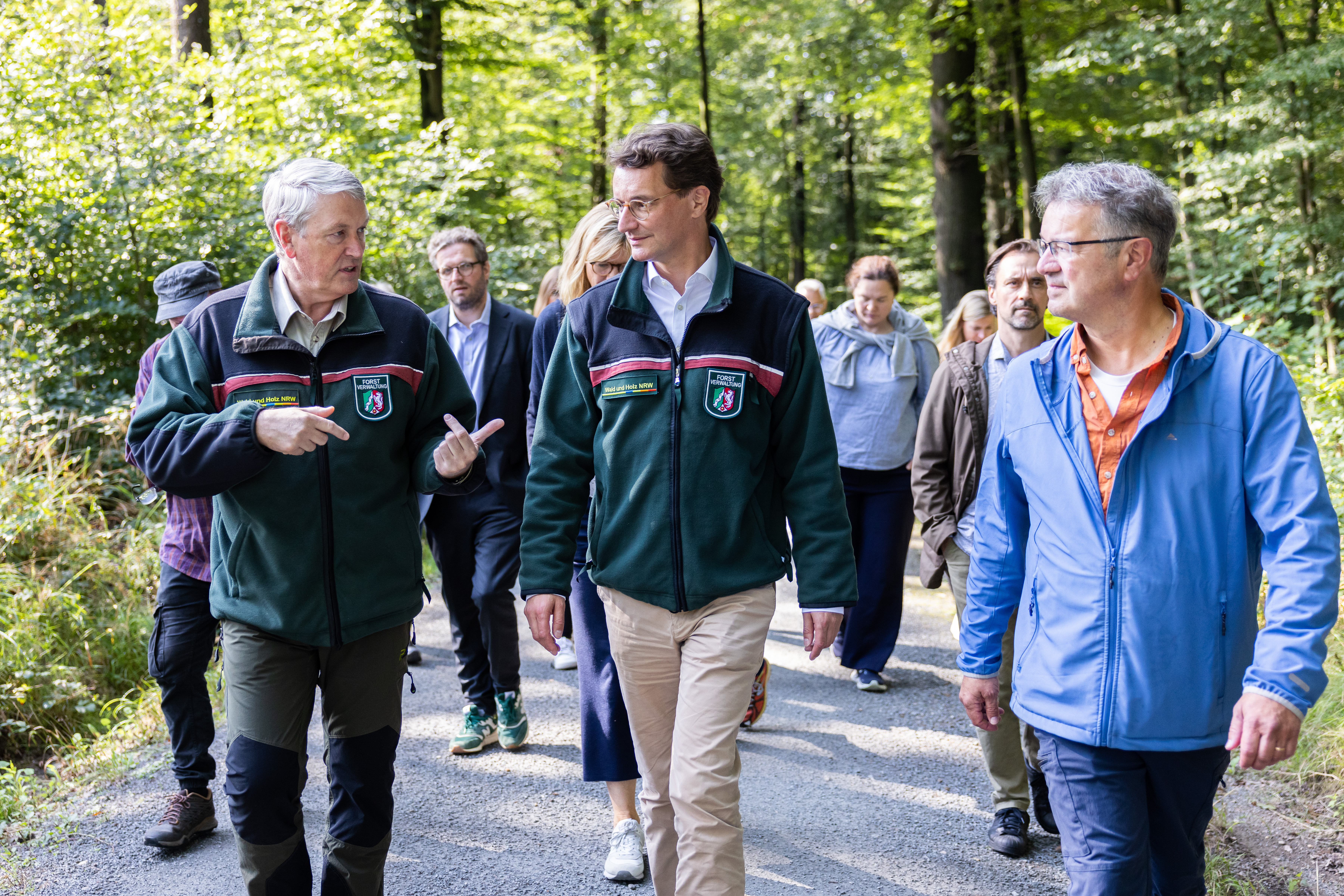 Ministerpräsident Hendrik Wüst informiert sich im Königsforst in Köln gemeinsam mit Wanderexperte Manuel Andrack über die aktuellen Herausforderungen des Waldes. Der Wald ist wichtig: fürs Klima, als Erholungsraum, als Heimat für Flora und Fauna, als Wirtschaftsfaktor. Dürren und Schädlinge haben dem Wald in Nordrhein-Westfalen zugesetzt. Um zukunftsfähig zu sein, muss er umgebaut werden – dies geschieht im Königsforst bei Köln. Der Redakteur, Moderator und Autor Manuel Andrack setzt sich seit vielen Jahren intensiv mit der Umwelt und deren Veränderungen auseinander und bringt den Menschen das Thema Wald in geführten Wandertouren deutschlandweit näher.
