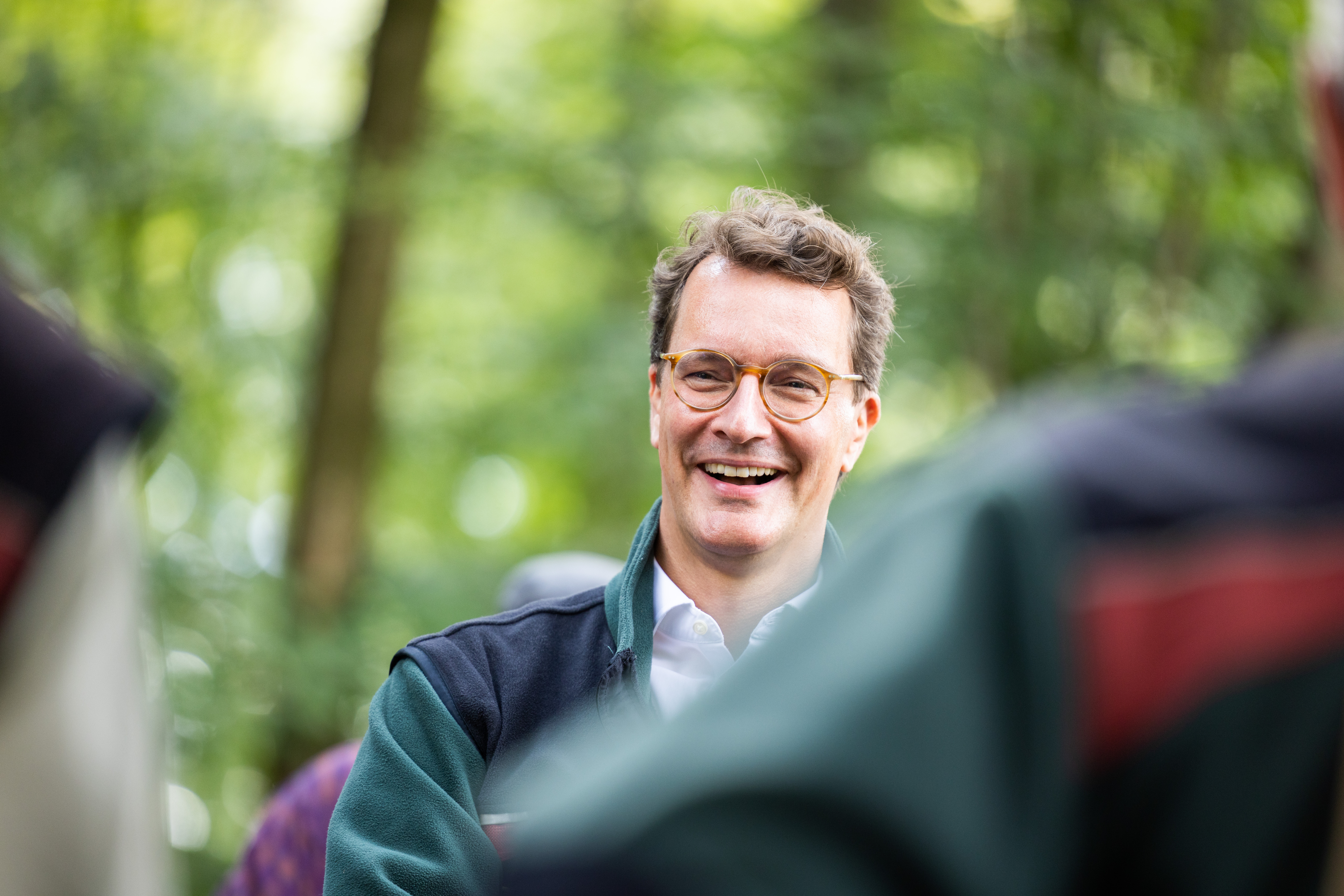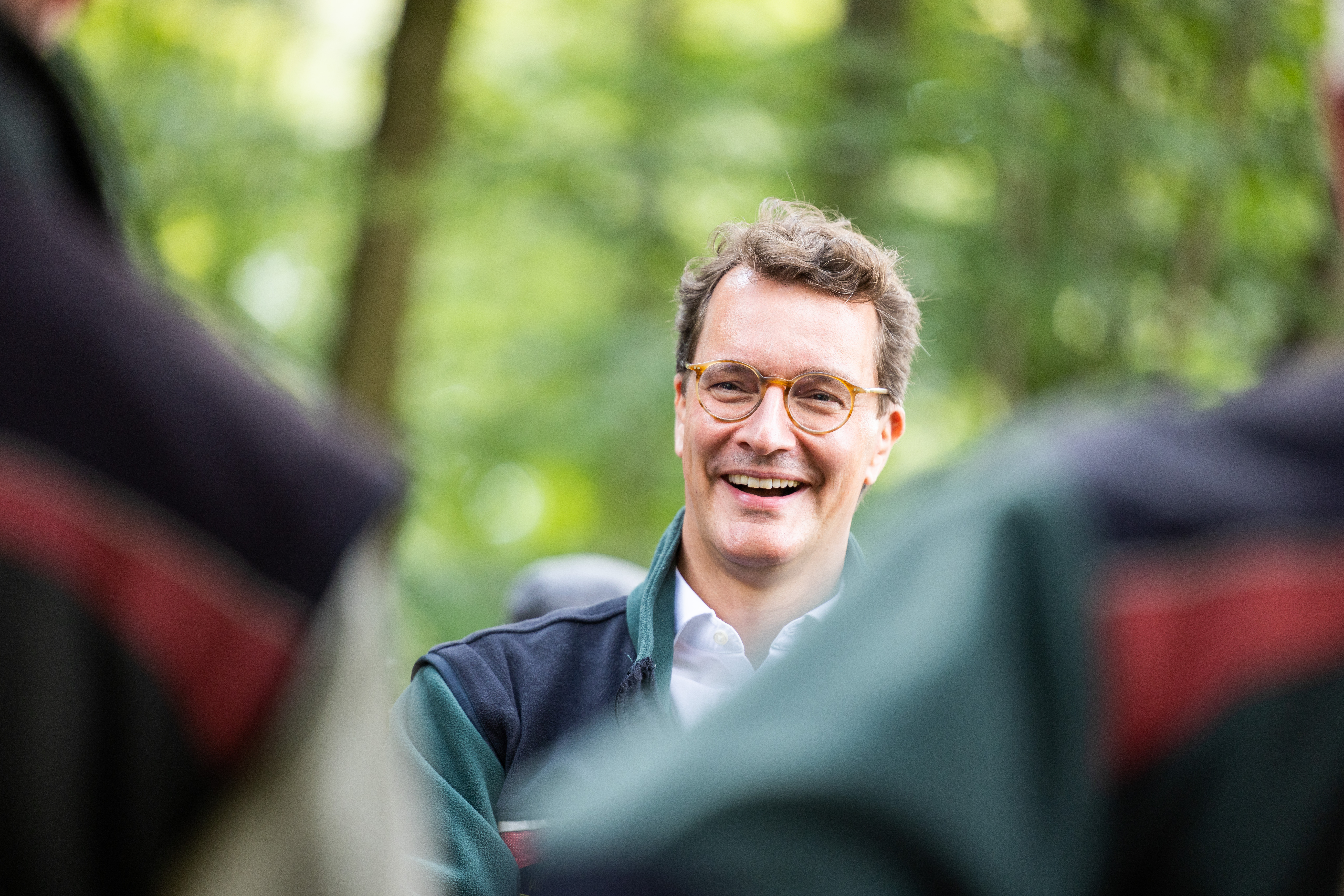 Ministerpräsident Hendrik Wüst besucht gemeinsam mit Manuel Andrack den Königsforst in Köln