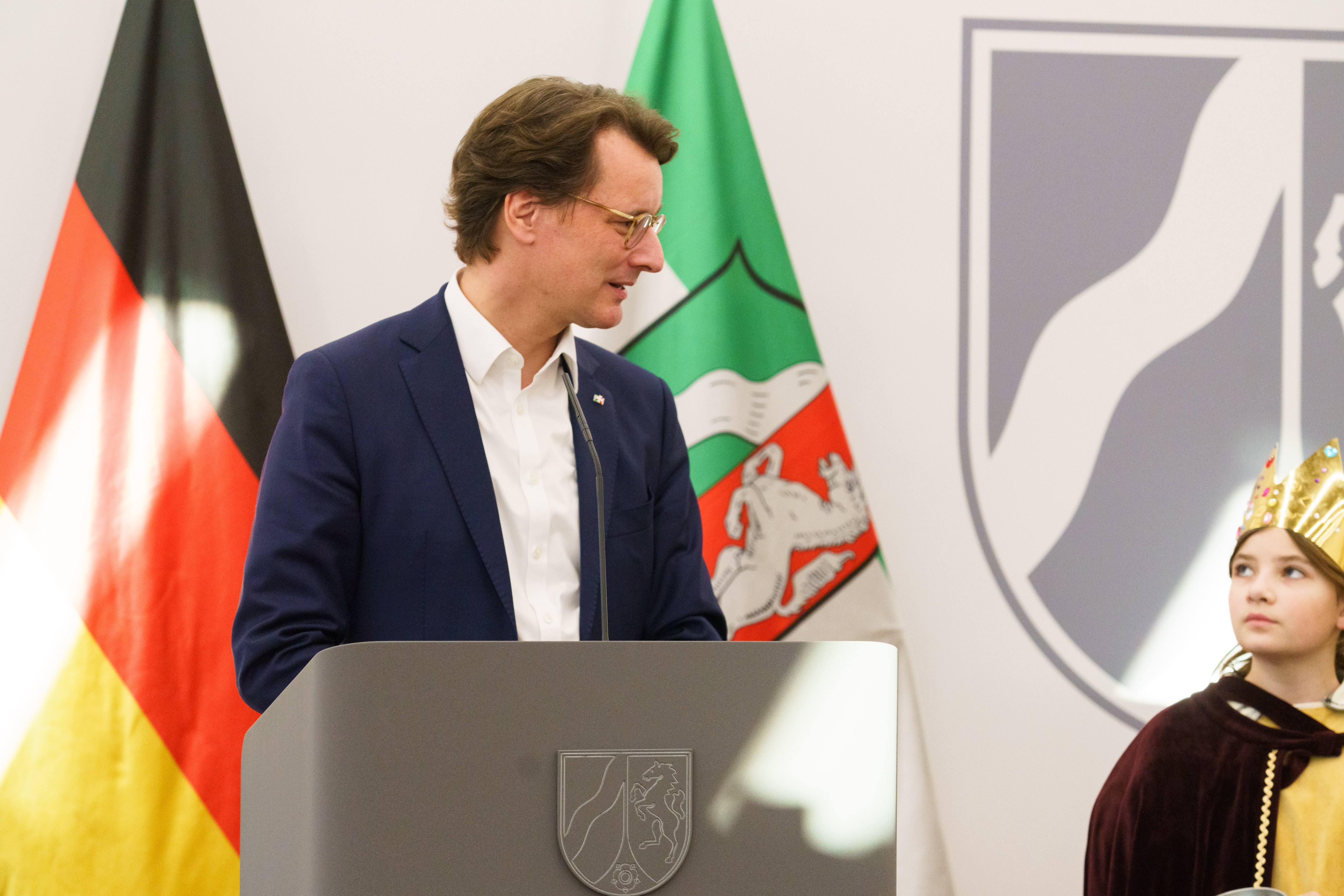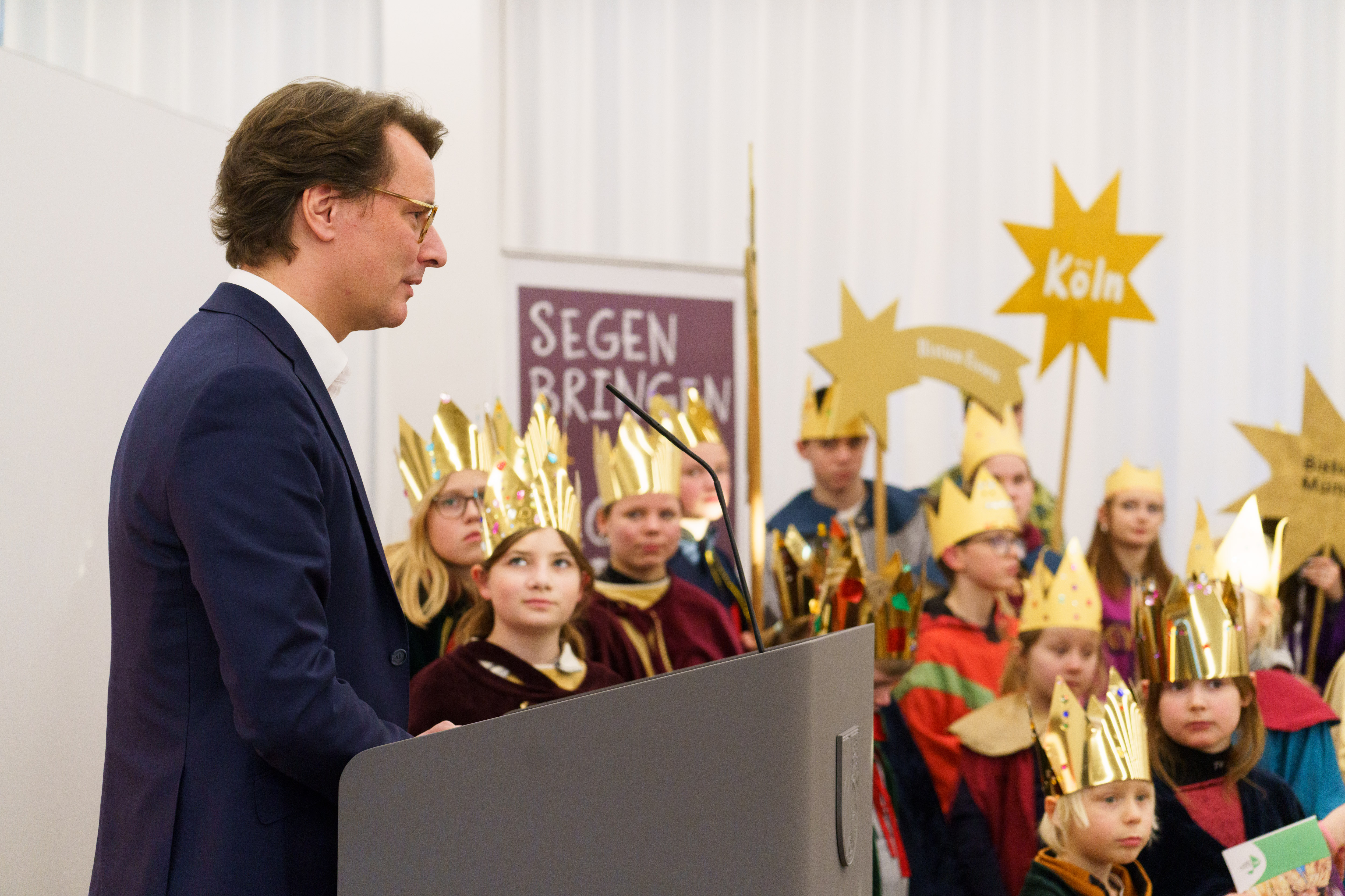 Ministerpräsident Hendrik Wüst empfängt Sternsinger zum traditionellen Dreikönigssingen