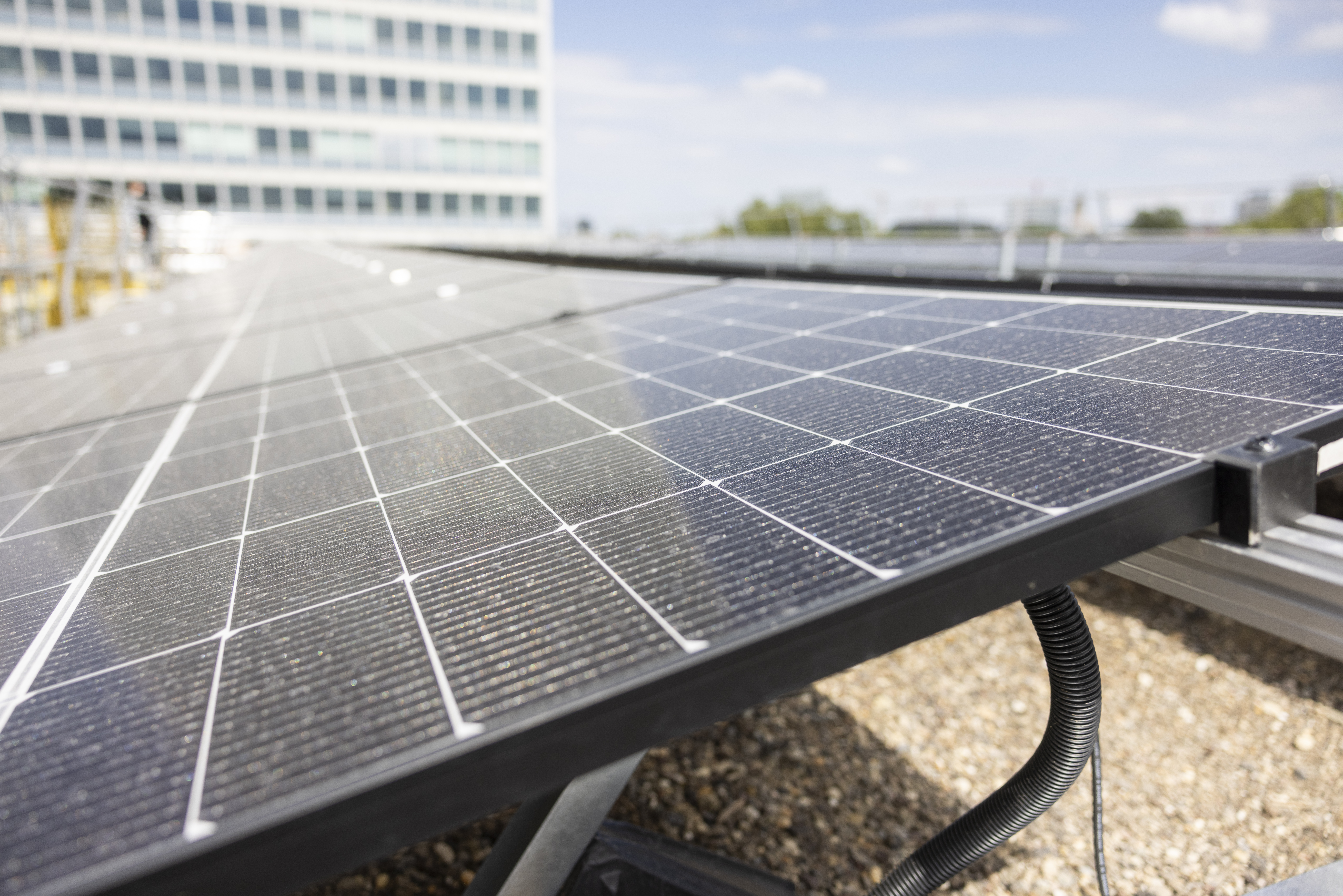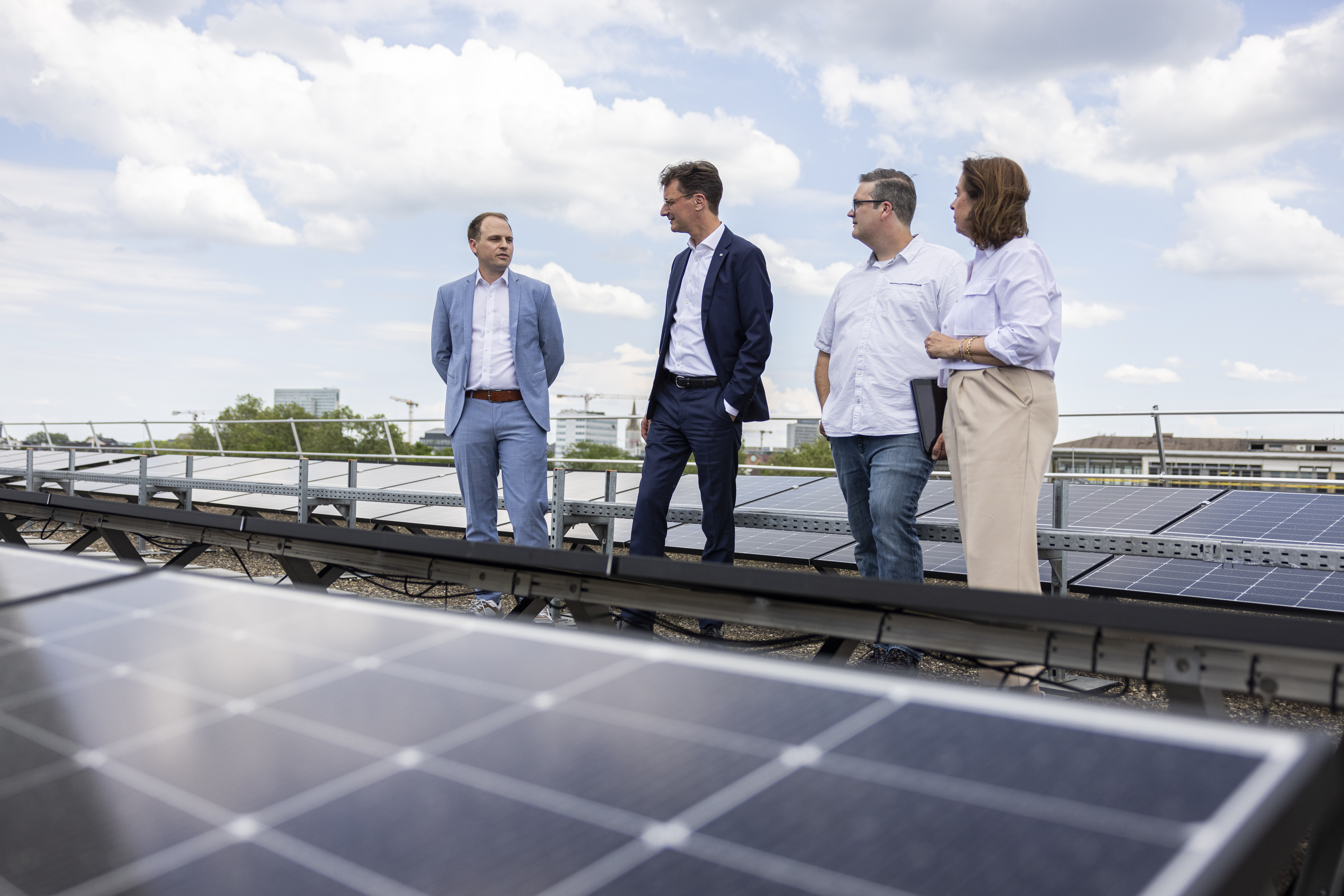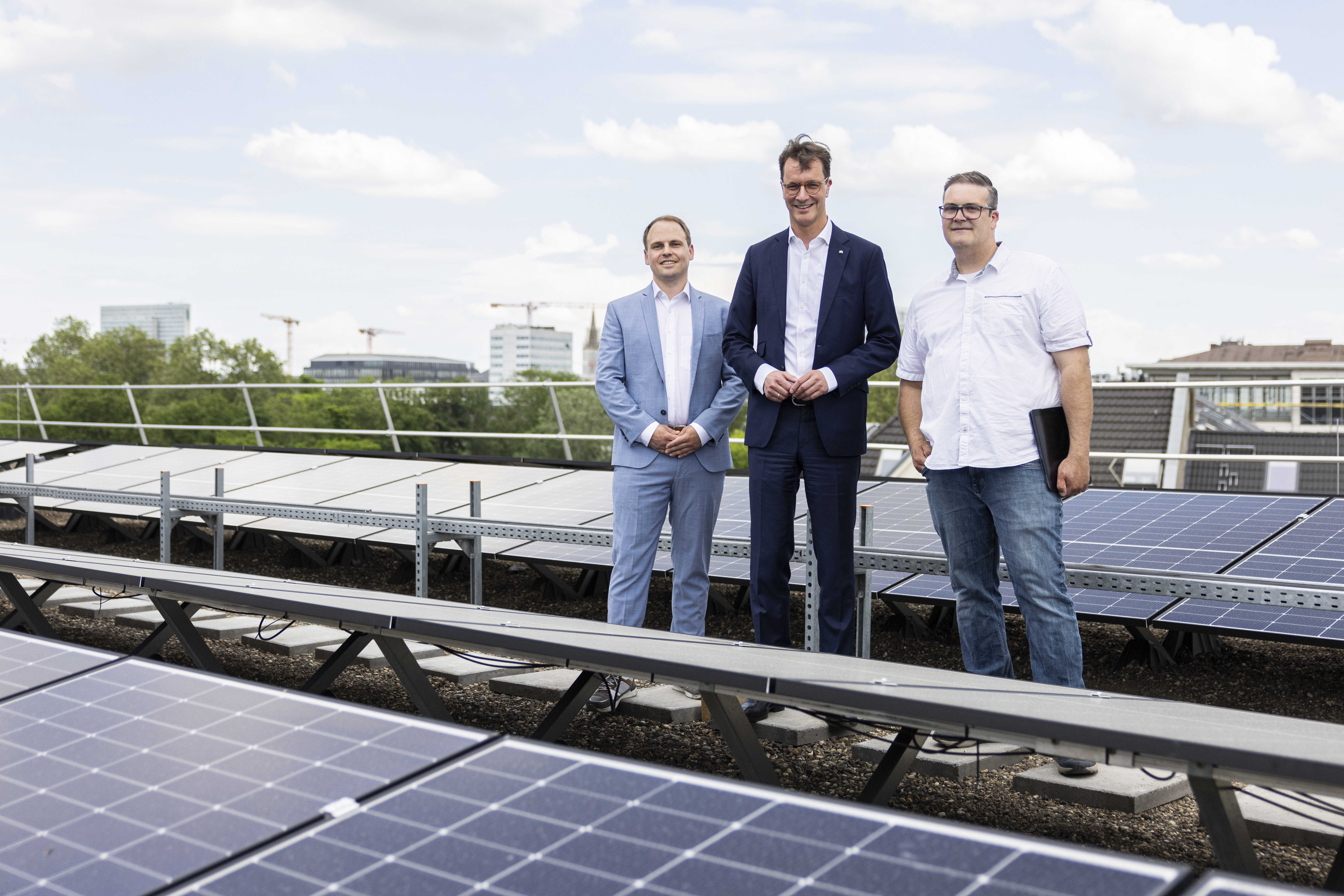Weiterer Schritt zu nachhaltiger Verwaltung: Ministerpräsident Wüst nimmt Photovoltaik-Anlage auf Dach der Staatskanzlei in Betrieb