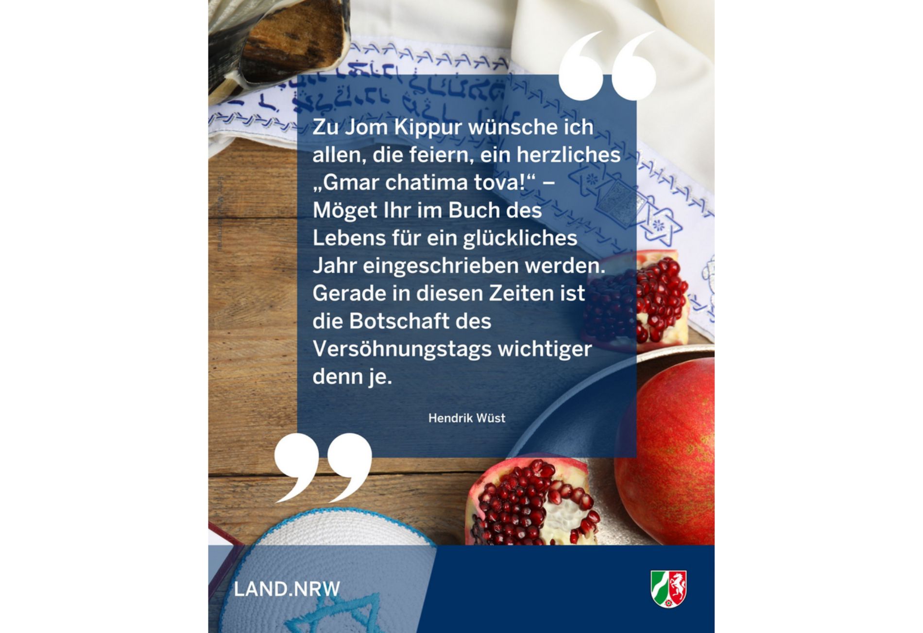 „Jüdisches Leben ist fester Bestandteil unseres Landes. Gerade in diesen Zeiten ist die Botschaft des Versöhnungstags wichtiger denn je“, so Ministerpräsident Hendrik Wüst.