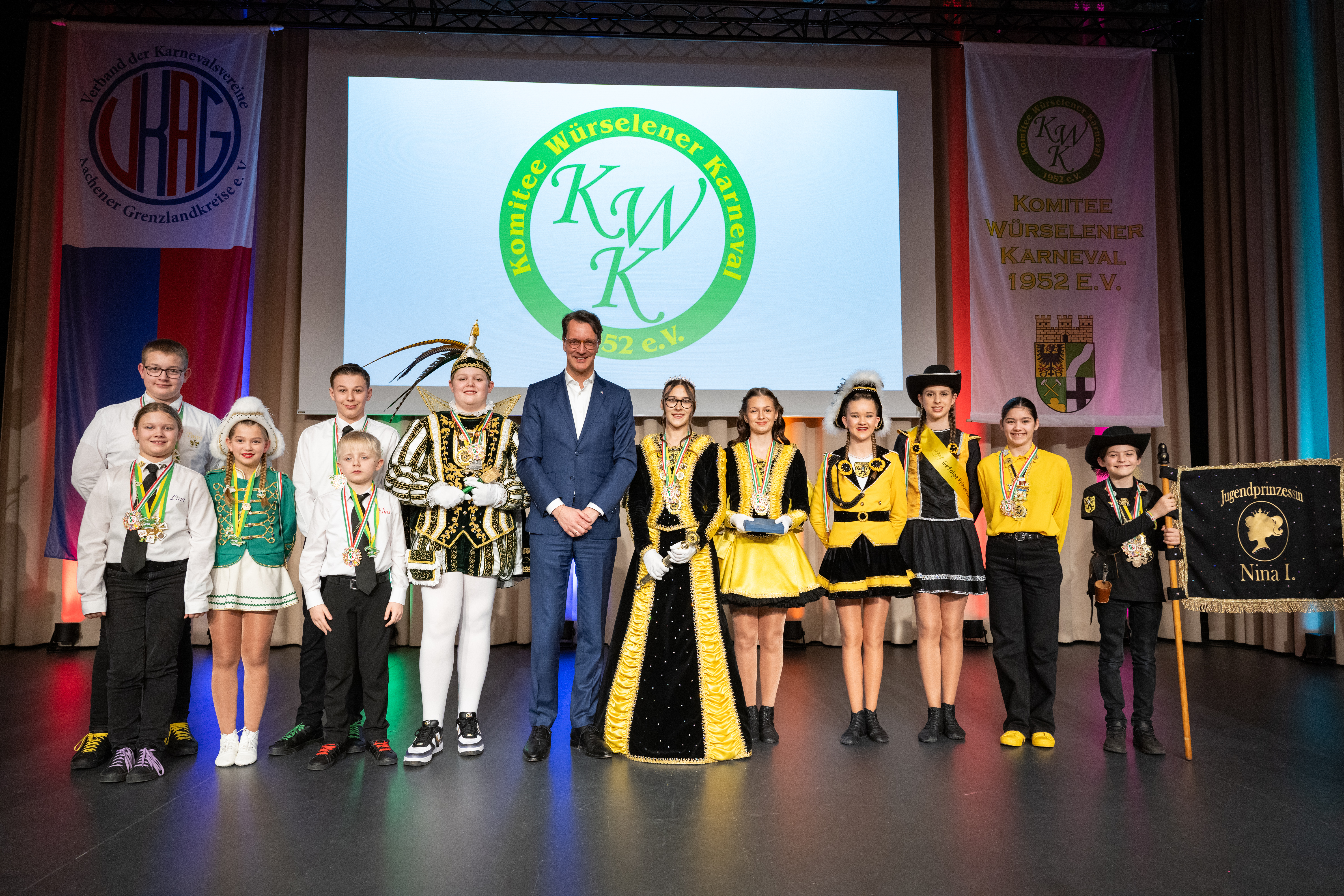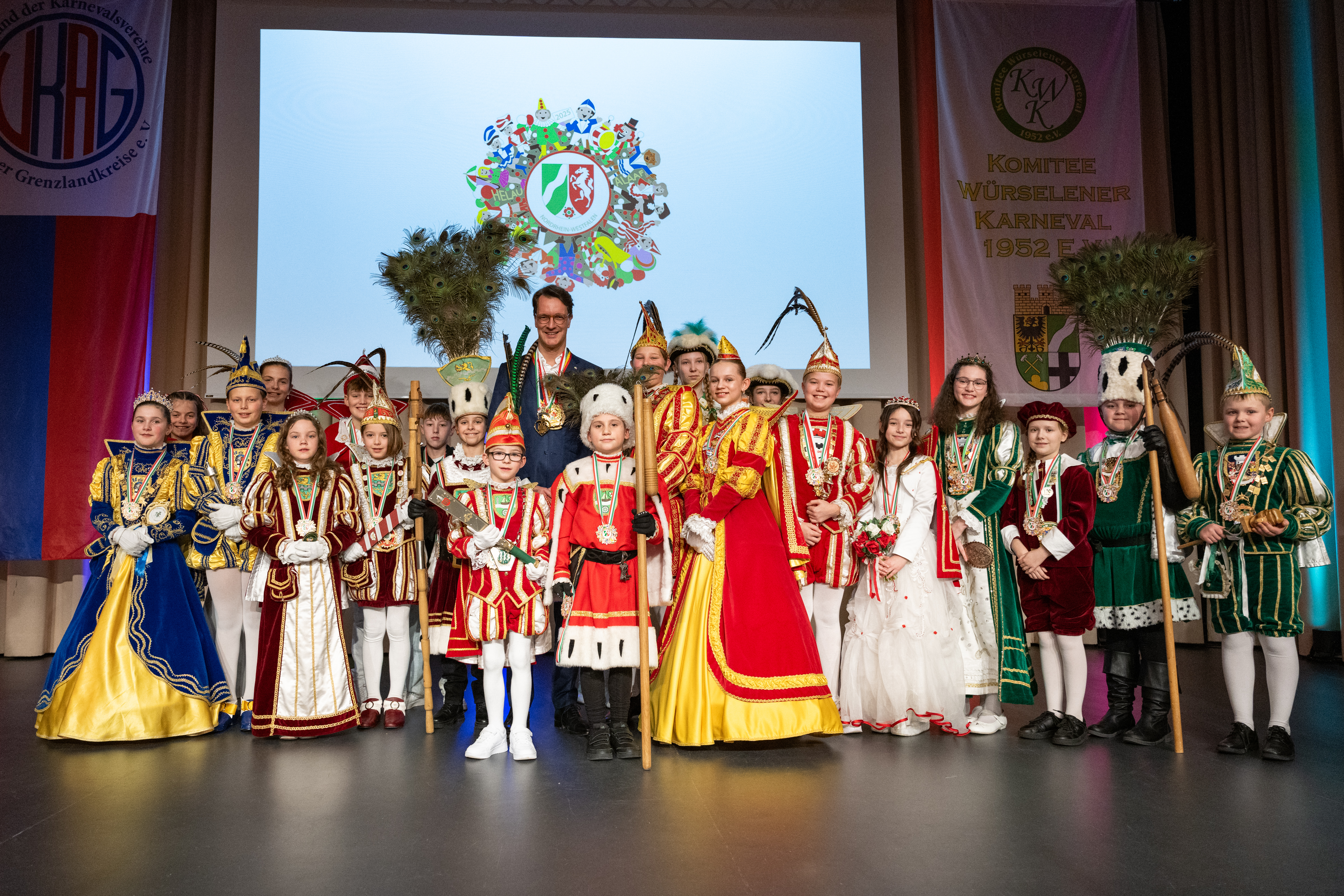Ministerpräsident Hendrik Wüst verleiht den Karnevalsorden der Landesregierung an Kindertollitäten aus Nordrhein-Westfalen