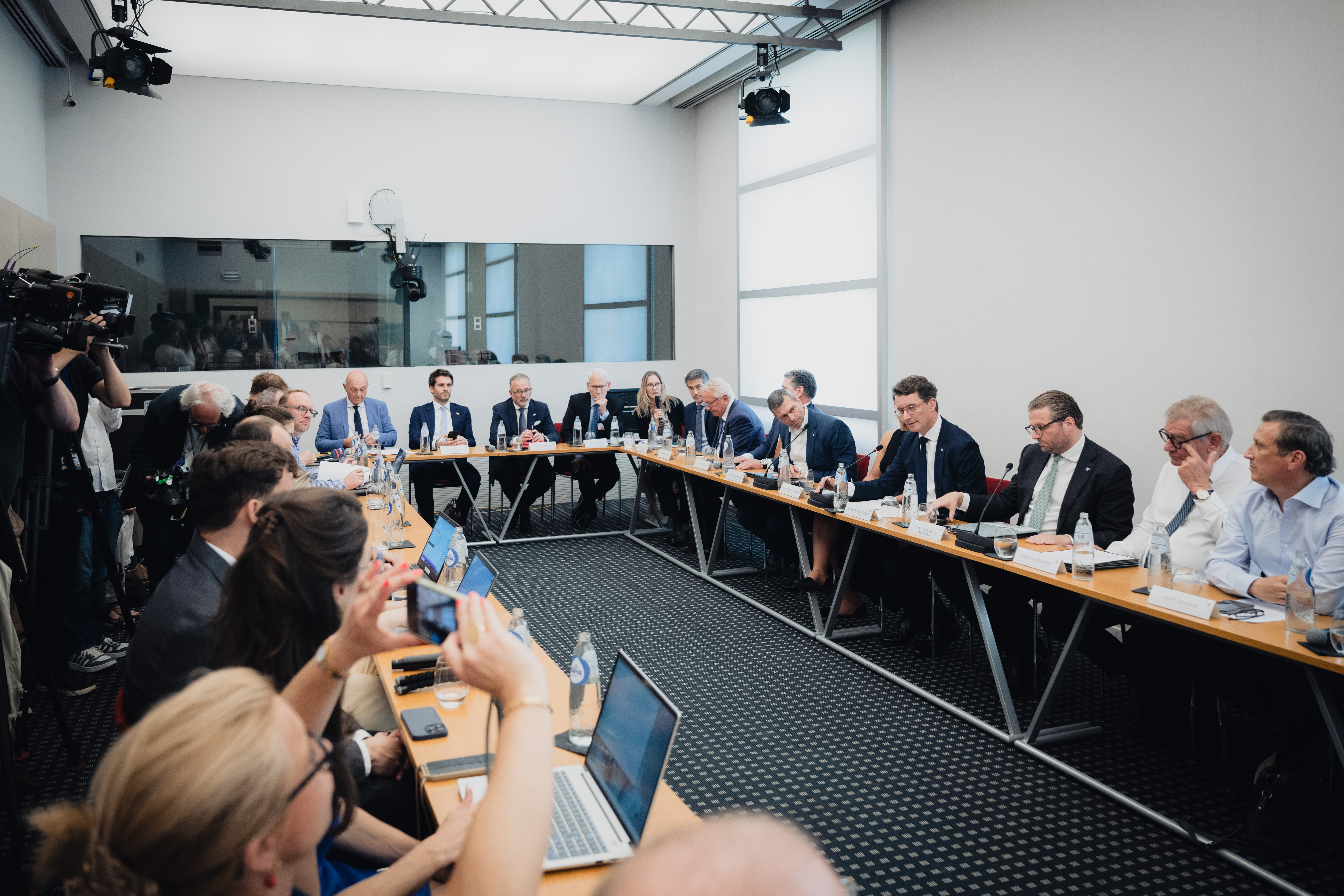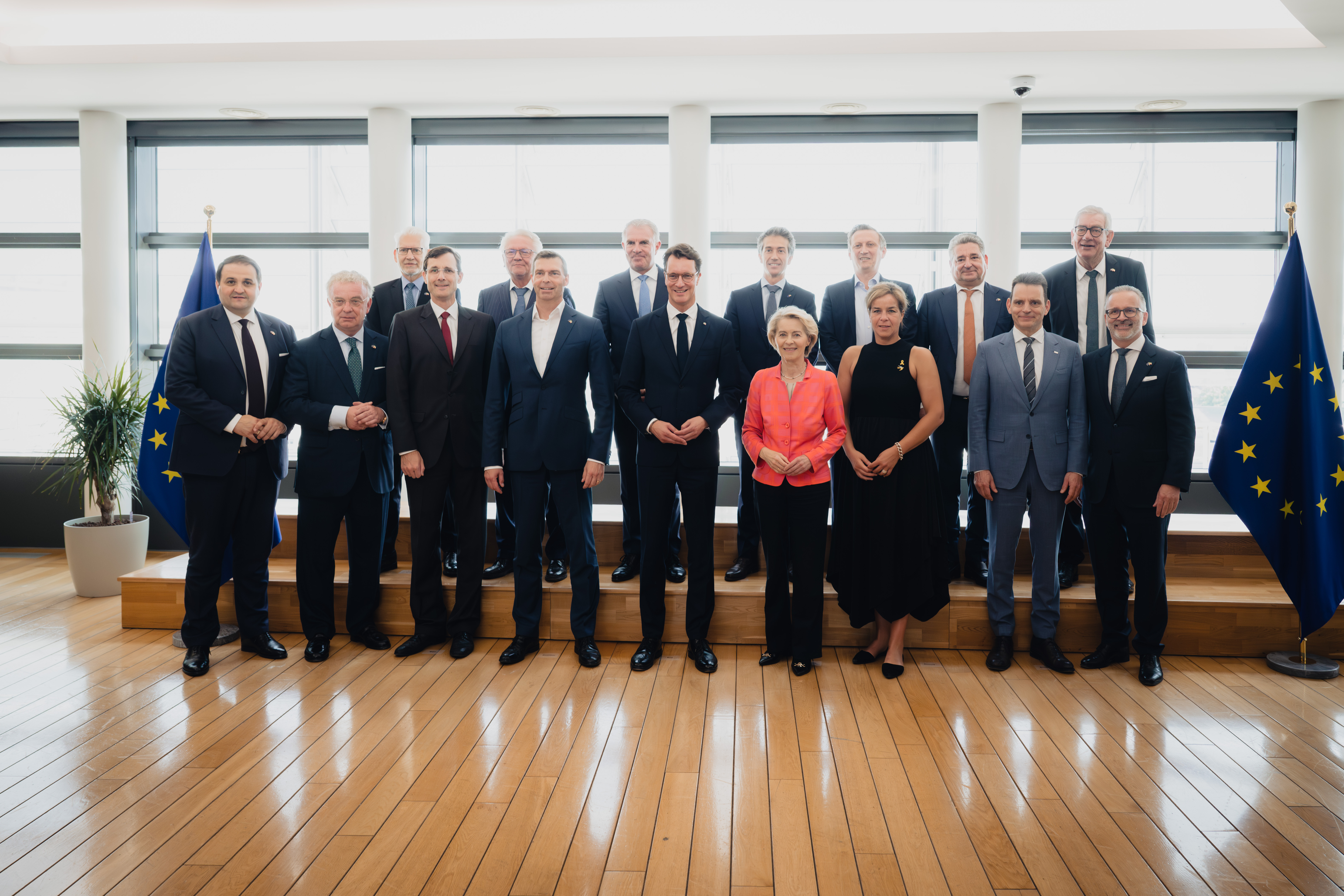 Ministerpräsident Wüst mit elf Vorstandsvorsitzenden deutscher Unternehmen bei EU-Kommissionspräsidentin von der Leyen in Brüssel