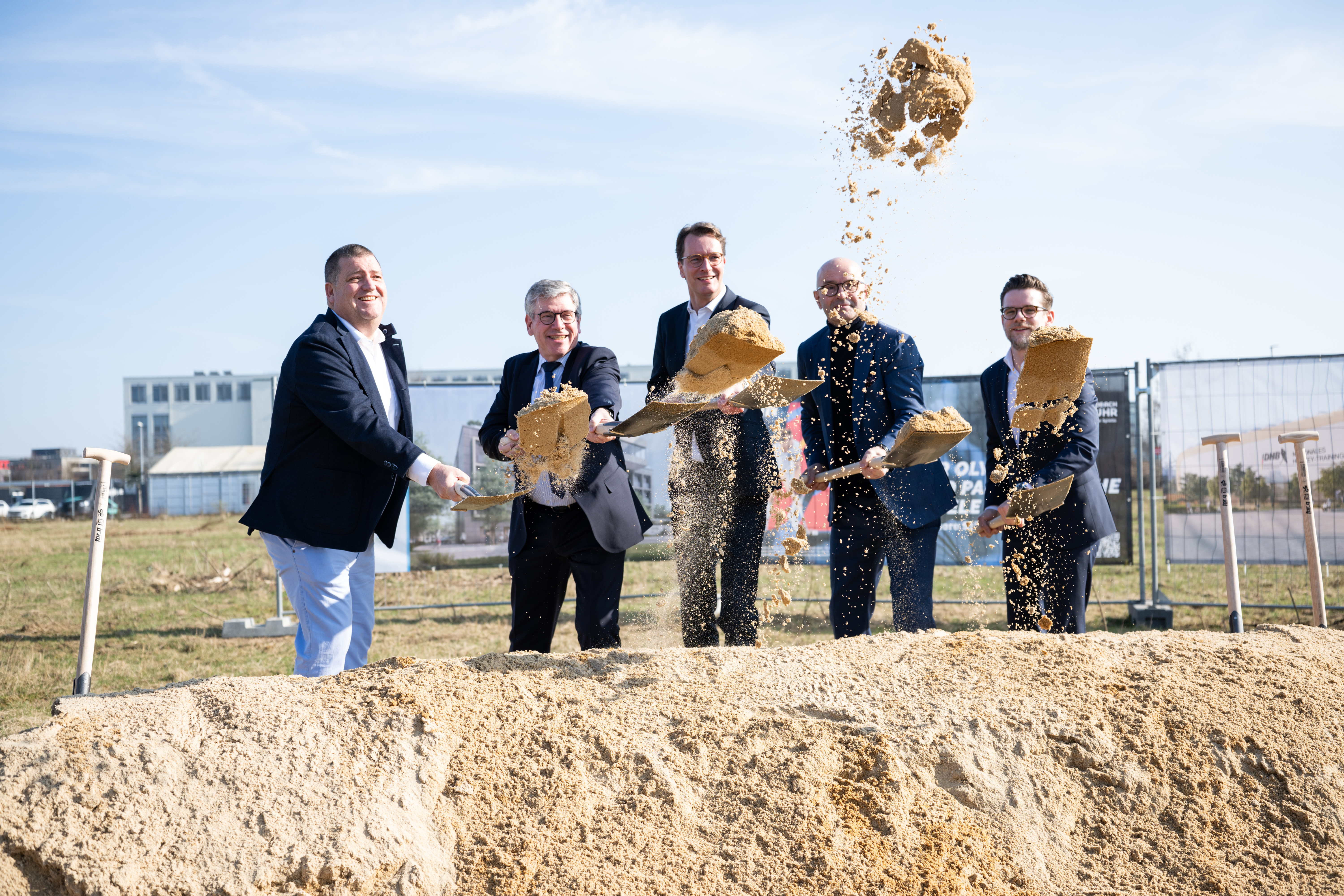 Ministerpräsident Hendrik Wüst beim Spatenstich des Nationalen Hockey-Trainingszentrums in Mönchengladbach