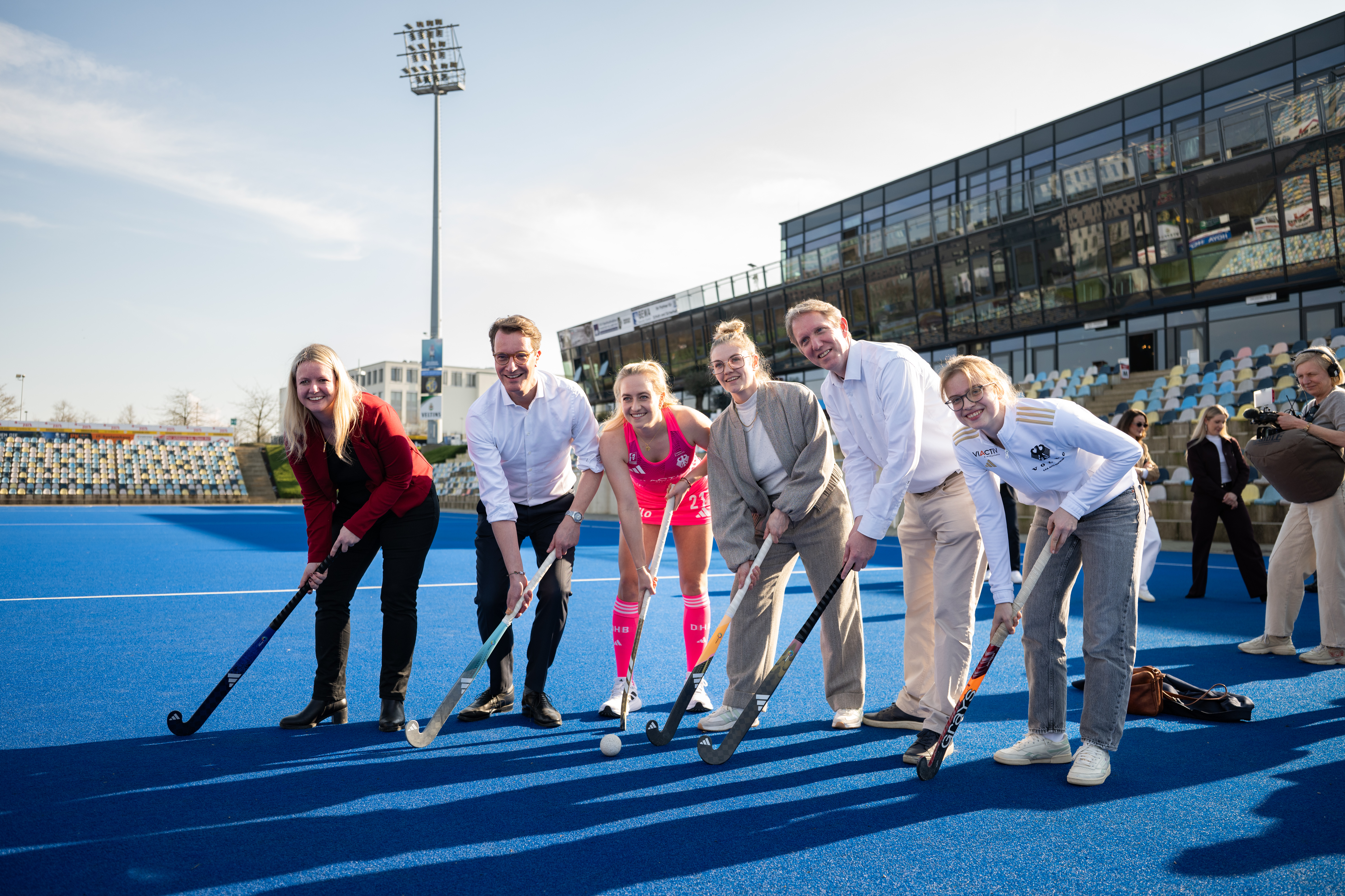 Mit dem Ausbau des bestehenden Hockeyparks entsteht in Mönchengladbach ein zukunftsweisender Standort für den Hockeysport mit ganzjährig bespielbarer Kaltlufthalle und moderner Sportschule. Der Bau wird von Bund und Land gefördert. Am 4. März 2026 findet der Spatenstich für den Baubeginn statt. Ministerpräsident Hendrik Wüst wird dazu ein Grußwort halten und anschließend an einem Rundgang durch den Hockeypark teilnehmen.