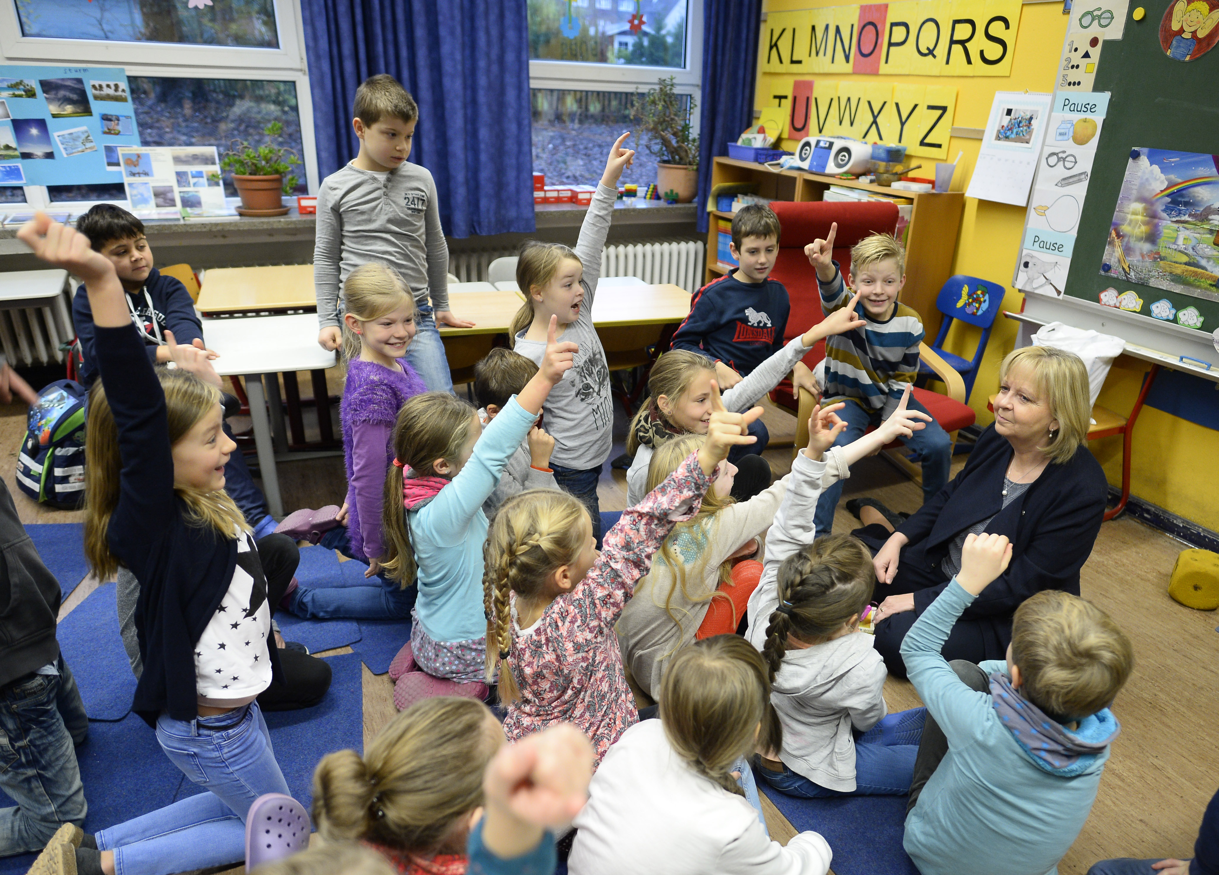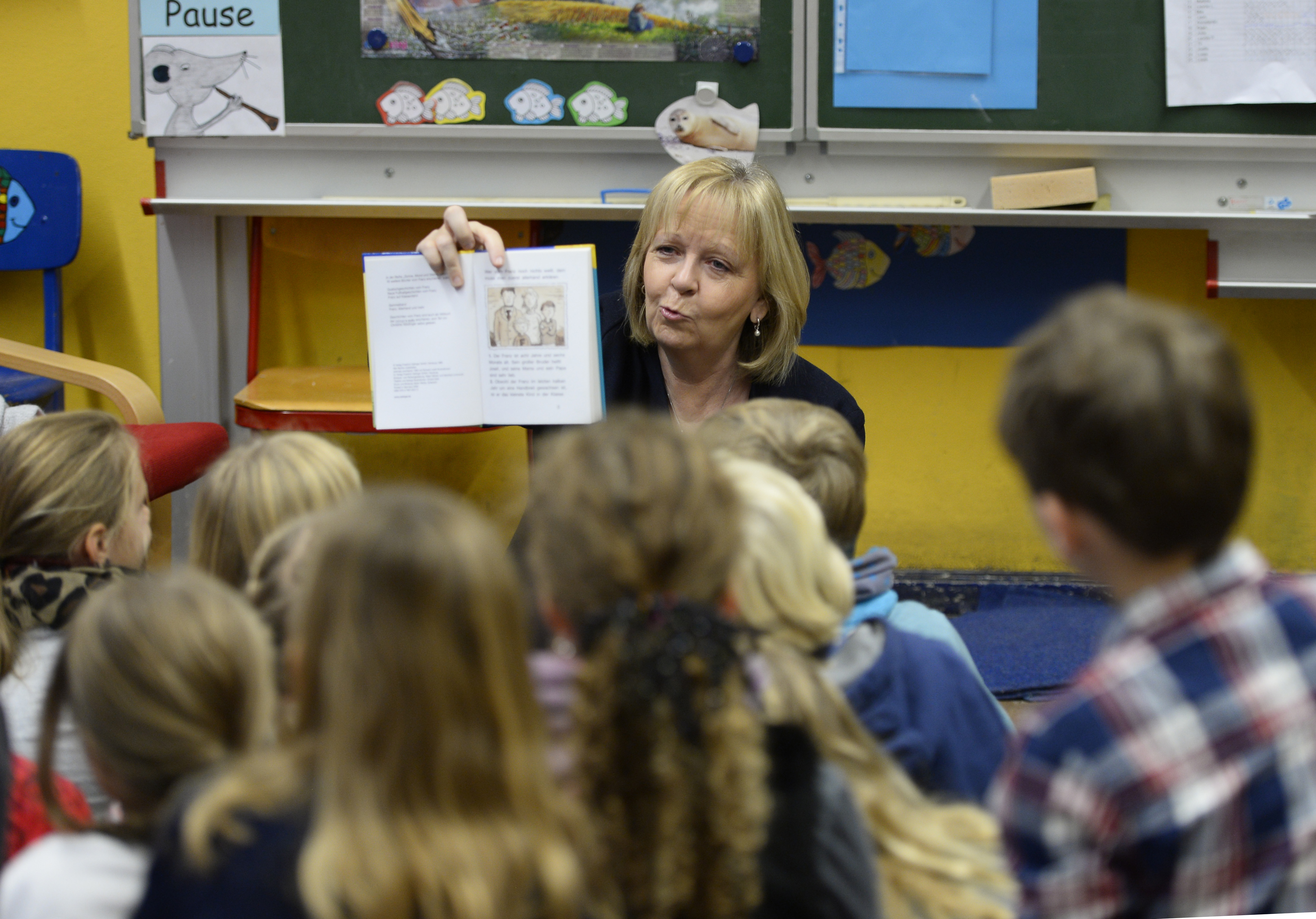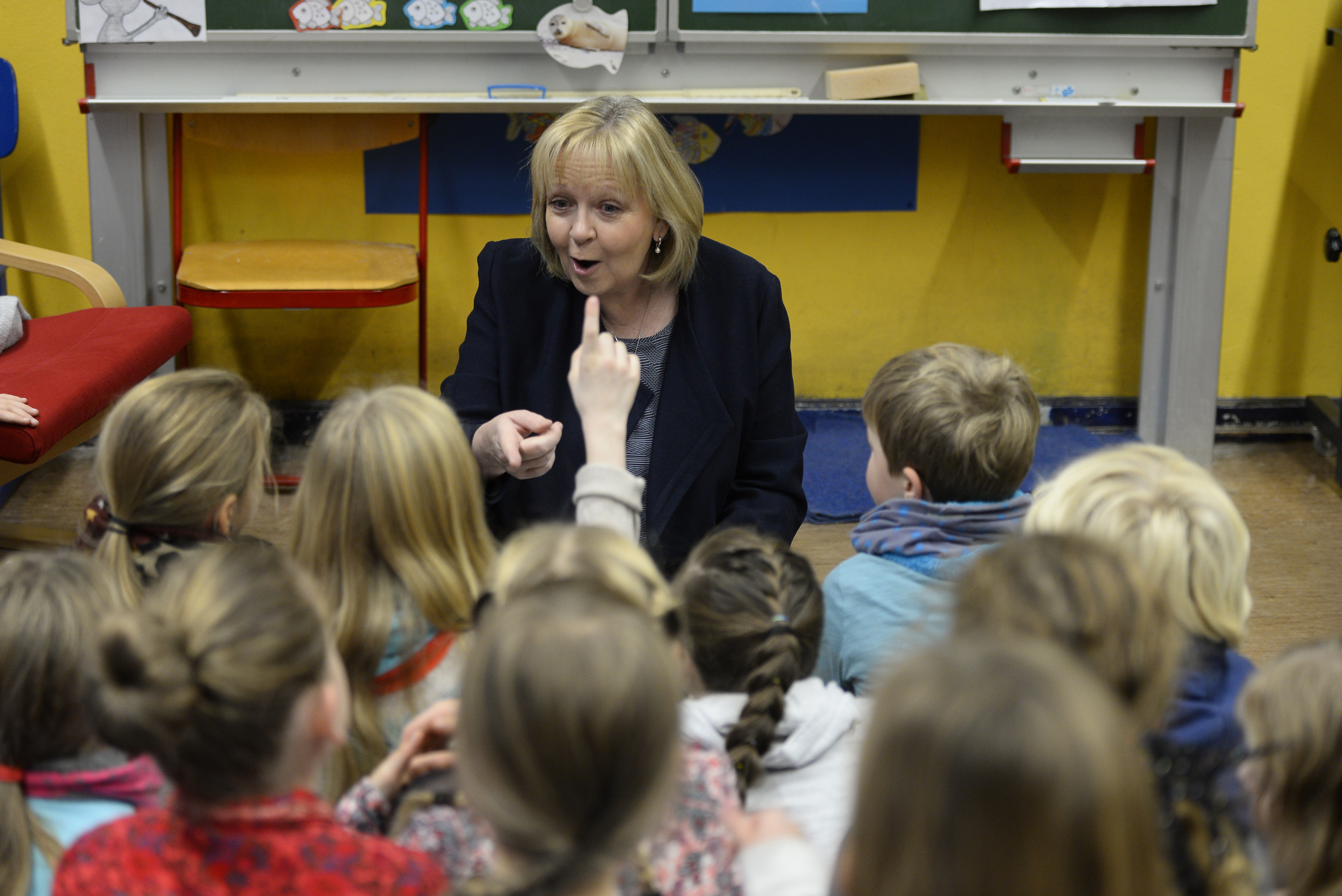 Ministerpräsidentin Hannelore Kraft las am 13. Bundesweiten Vorlesetag Kindern der Städtischen Gemeinschaftsgrundschule in Mülheim "Geschichten vom Franz" vor.