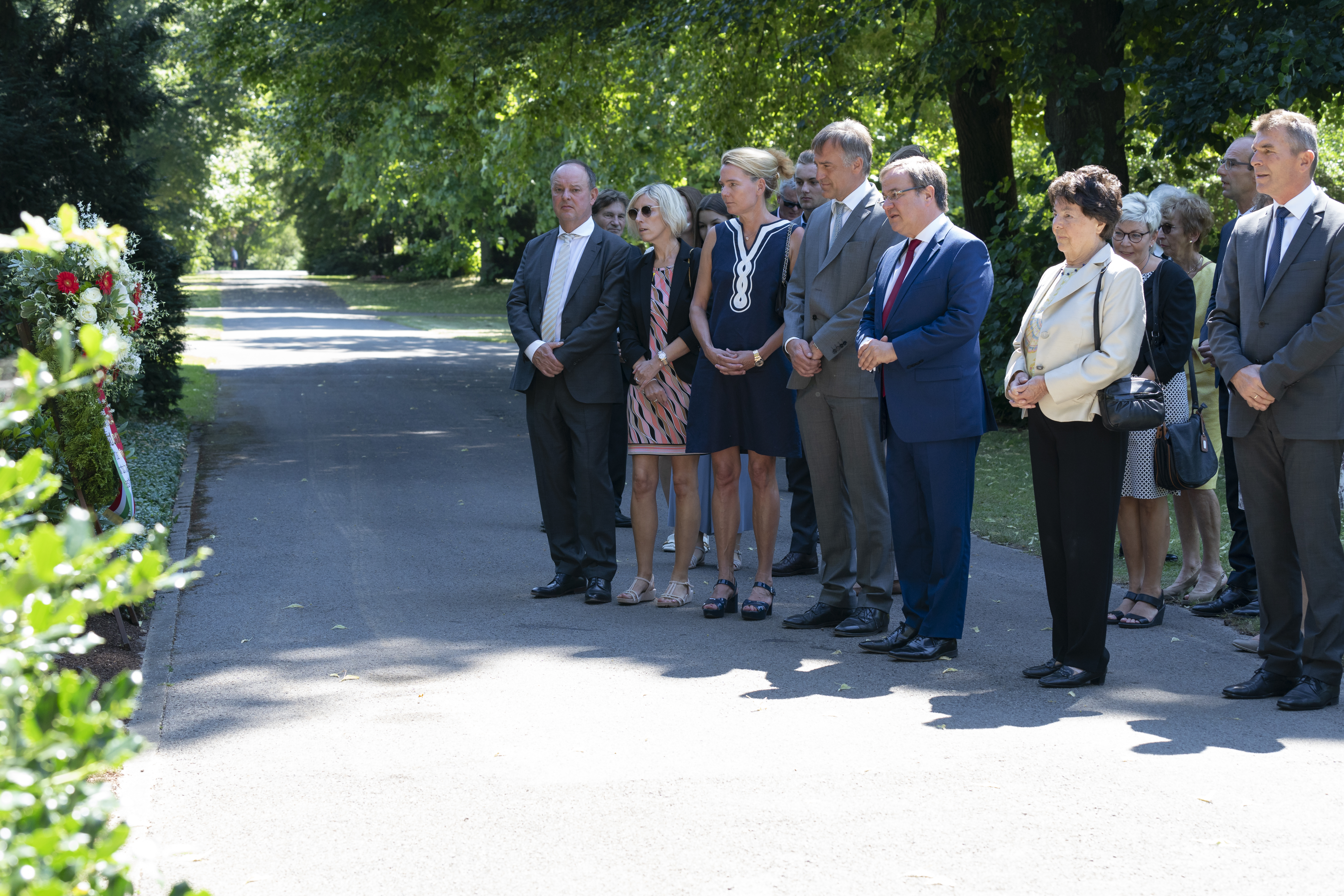 Ministerpräsident Armin Laschet hat am Freitag, 29 Juni 2018, anlässlich des 60. Todestages, an den Ministerpräsidenten a.D. Karl Arnold gedacht. Der Ministerpräsident besucht das Grab von Karl Arnold in Düsseldorf, gemeinsam mit den Nachfahren des ehemaligen Ministerpräsidenten. Arnold war zweite Ministerpräsident Nordrhein-Westfalens. Karl Arnold wurde Ministepräsident zu einer Zeit, in der Nordrhein-Westfalen, Deutschland, Europa und die ganze Welt kurz vorher aus den Fugen geraten waren.