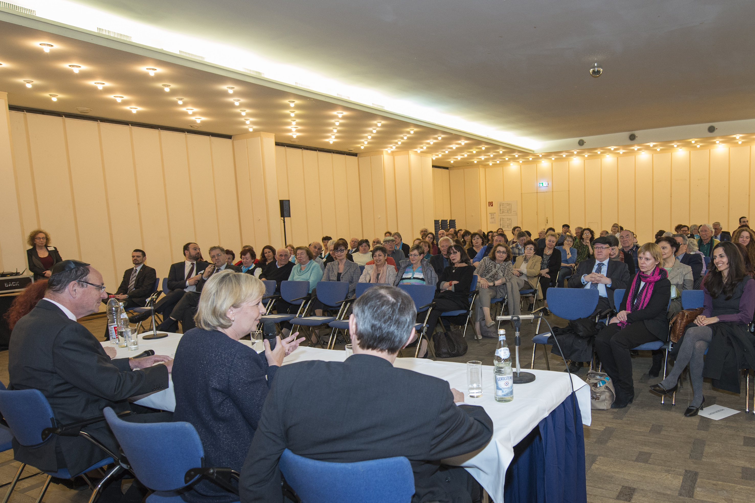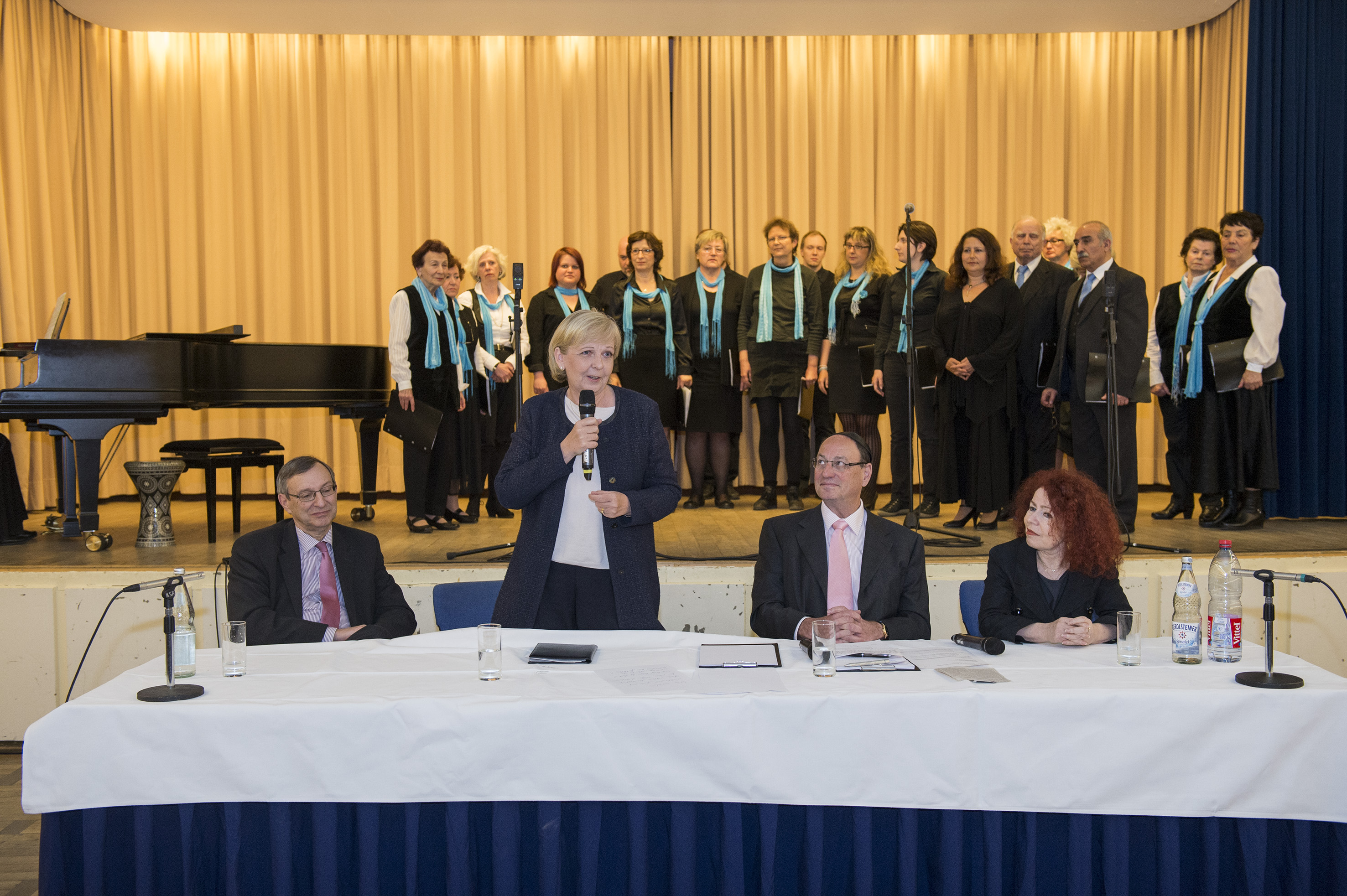 Ministerpräsidentin Kraft mit der Geschäftsführung und dem Vorstand der Gemeinde. Foto: Land NRW / M. Hermenau