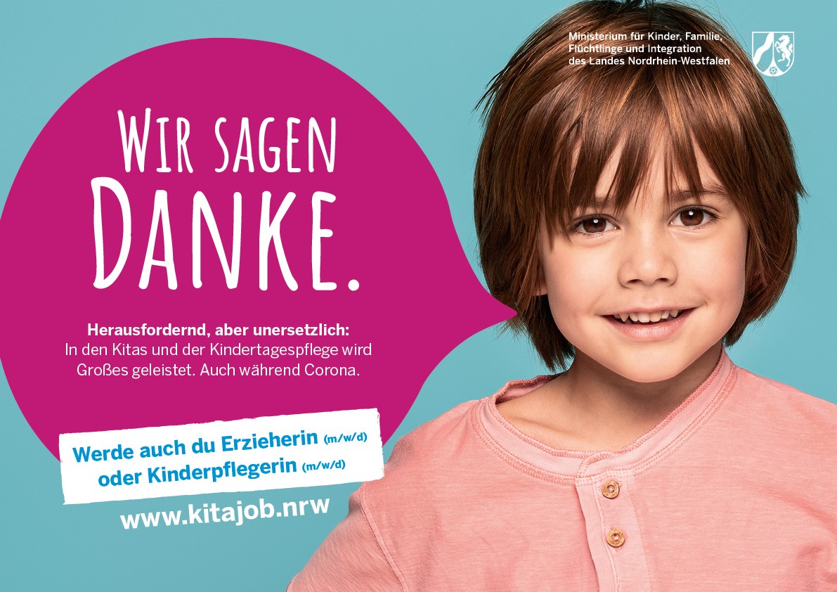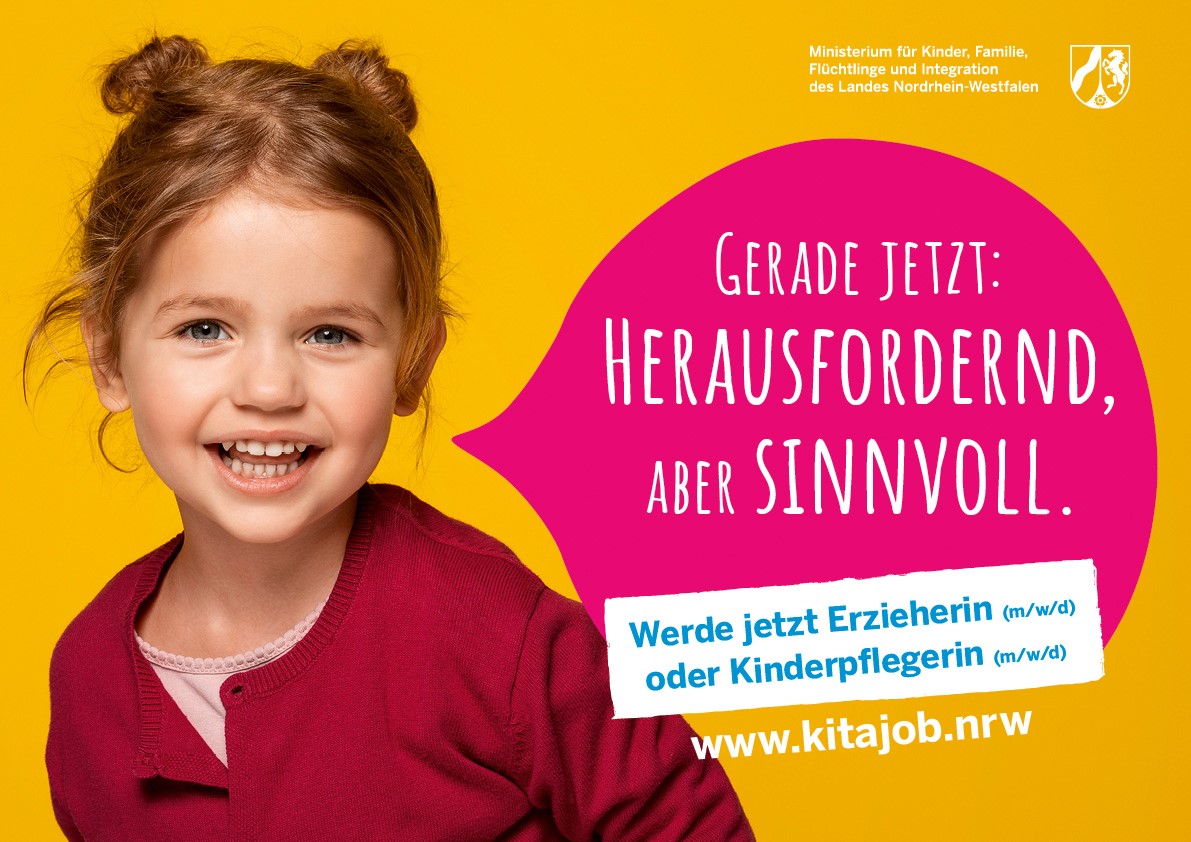 Das Familienministerium wirbt ab Dienstag, 2. März 2021, landesweit für die praxisintegrierte Ausbildung zur Erzieherin oder Kinderpflegerin (m/w/d) in Kindertageseinrichtungen. Die neue Kampagne startet sowohl analog als auch digital in Nordrhein-Westfalen.