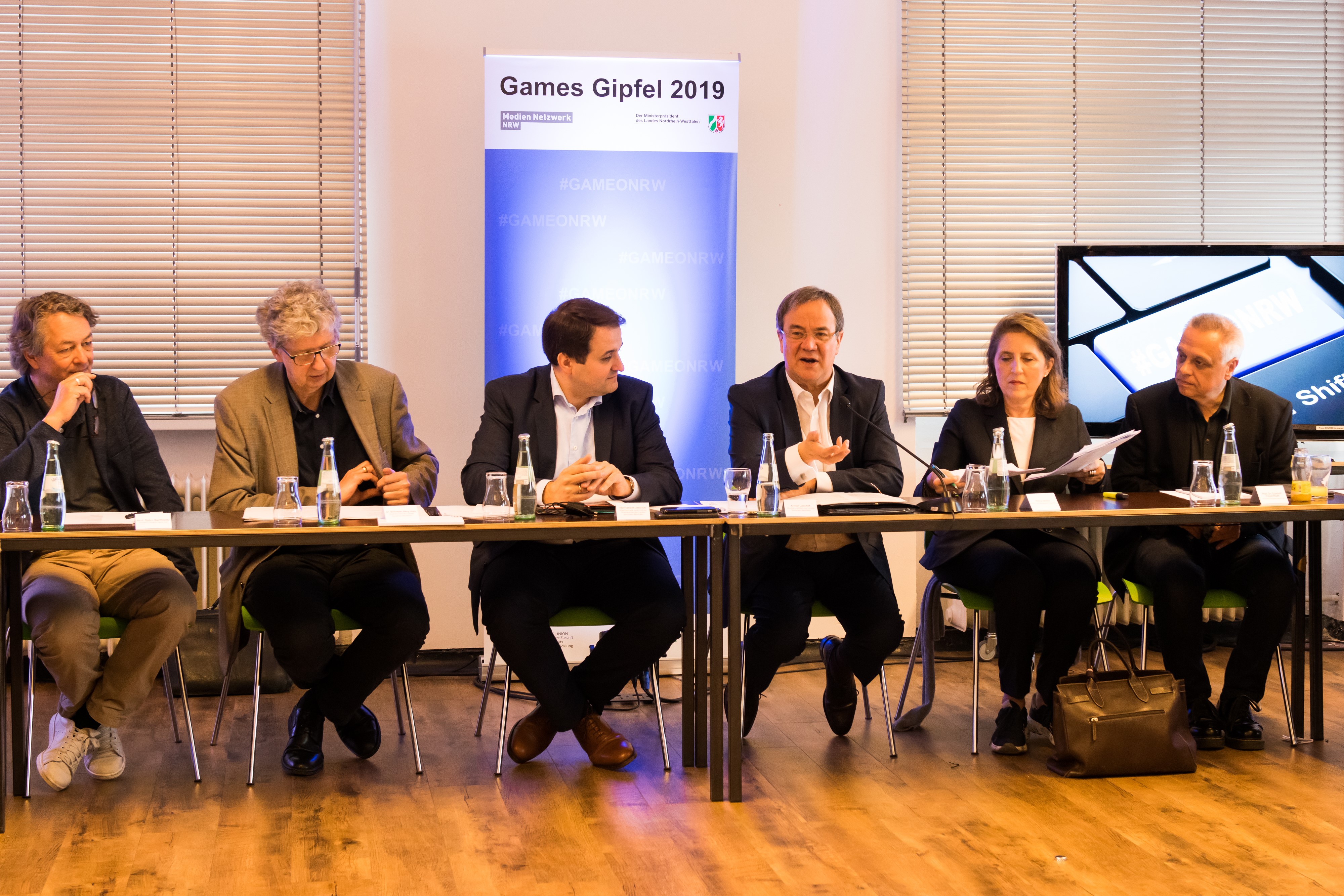 Auf Einladung von Ministerpräsident Armin Laschet sind mehr als 30 hochrangige Vertreterinnen und Vertreter der nordrhein-westfälischen Gamesbranche im Cologne Game Lab der Technischen Hochschule Köln zum 2. Games-Gipfel der Landesregierung zusammengekommen.