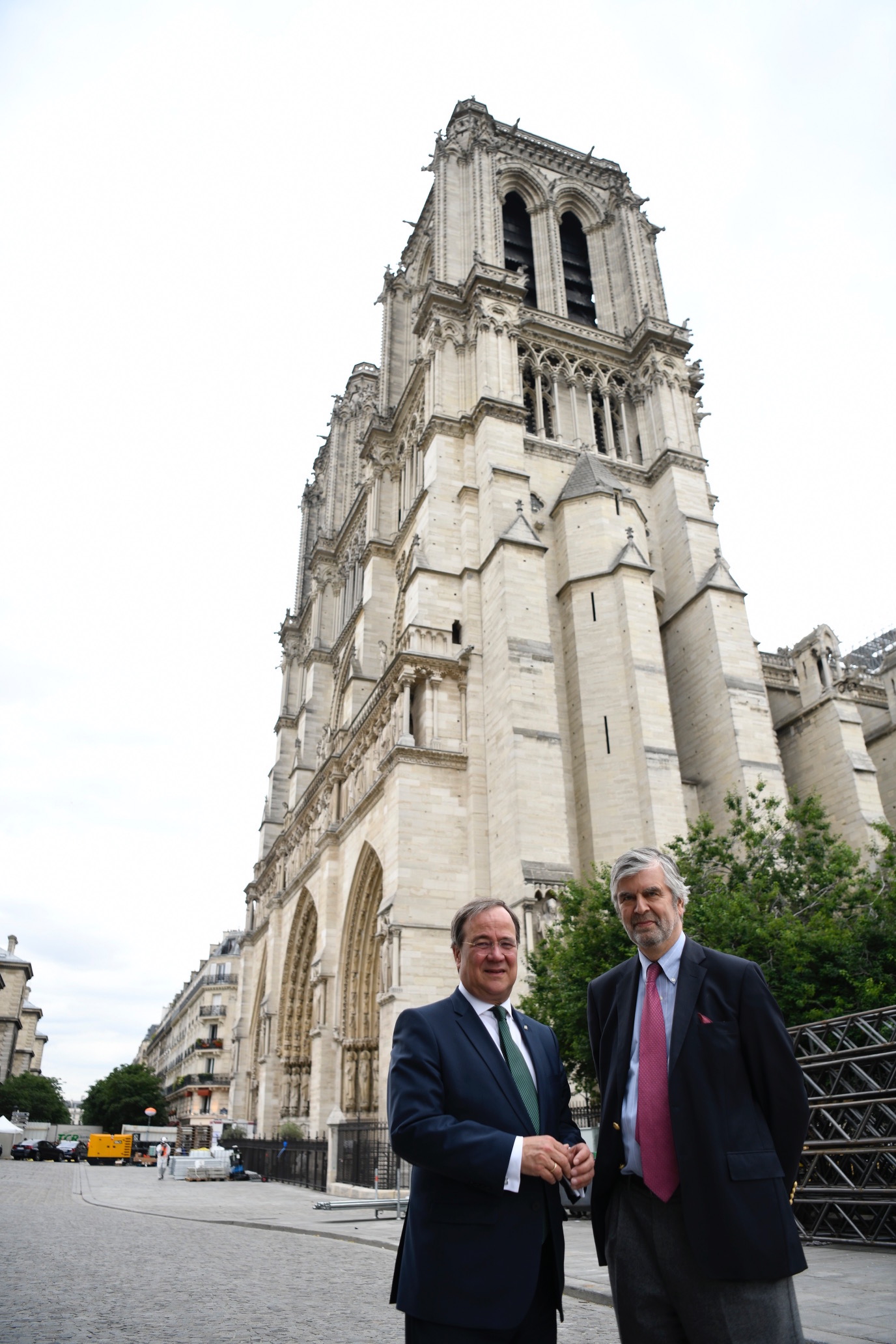 Der Bevollmächtigte der Bundesrepublik Deutschland für kulturelle Angelegenheiten im Rahmen des Vertrags über die deutsch-französische Zusammenarbeit, Ministerpräsident Armin Laschet, hat sich vor Ort über den Stand des Wiederaufbaus und die Schäden informiert, die der verheerende Brand vom 15. April 2019 an der Kathedrale von Notre-Dame de Paris verursacht hat.