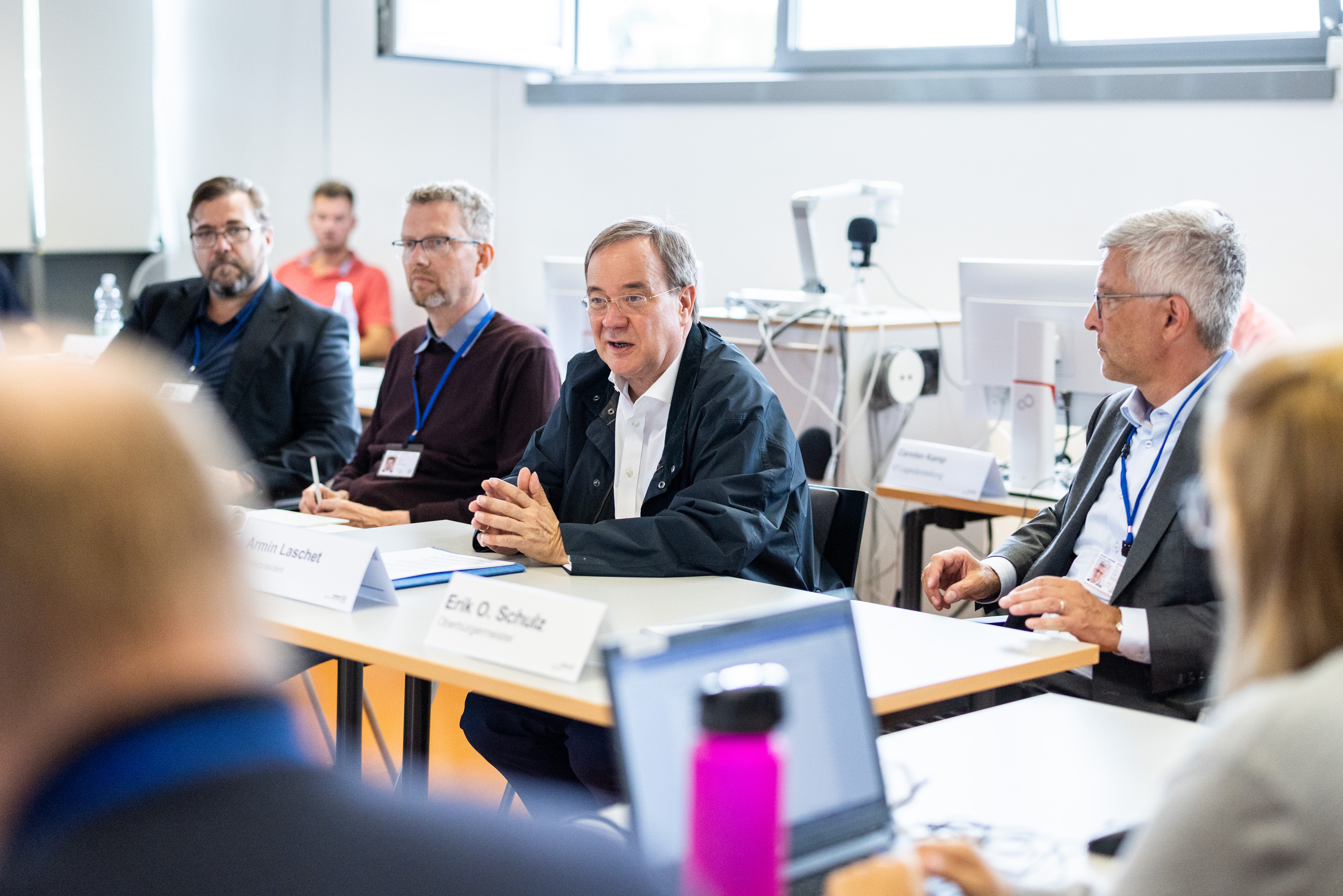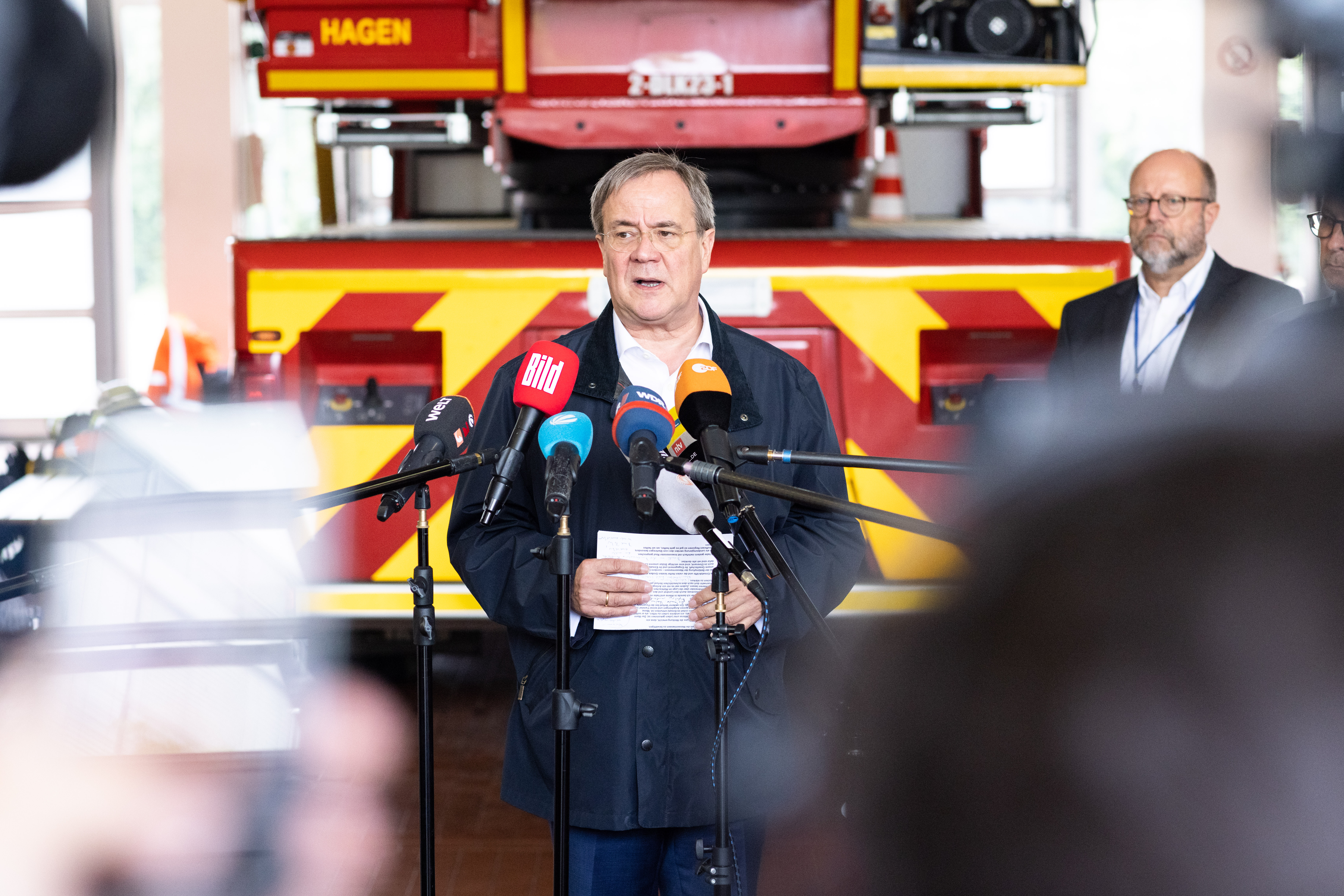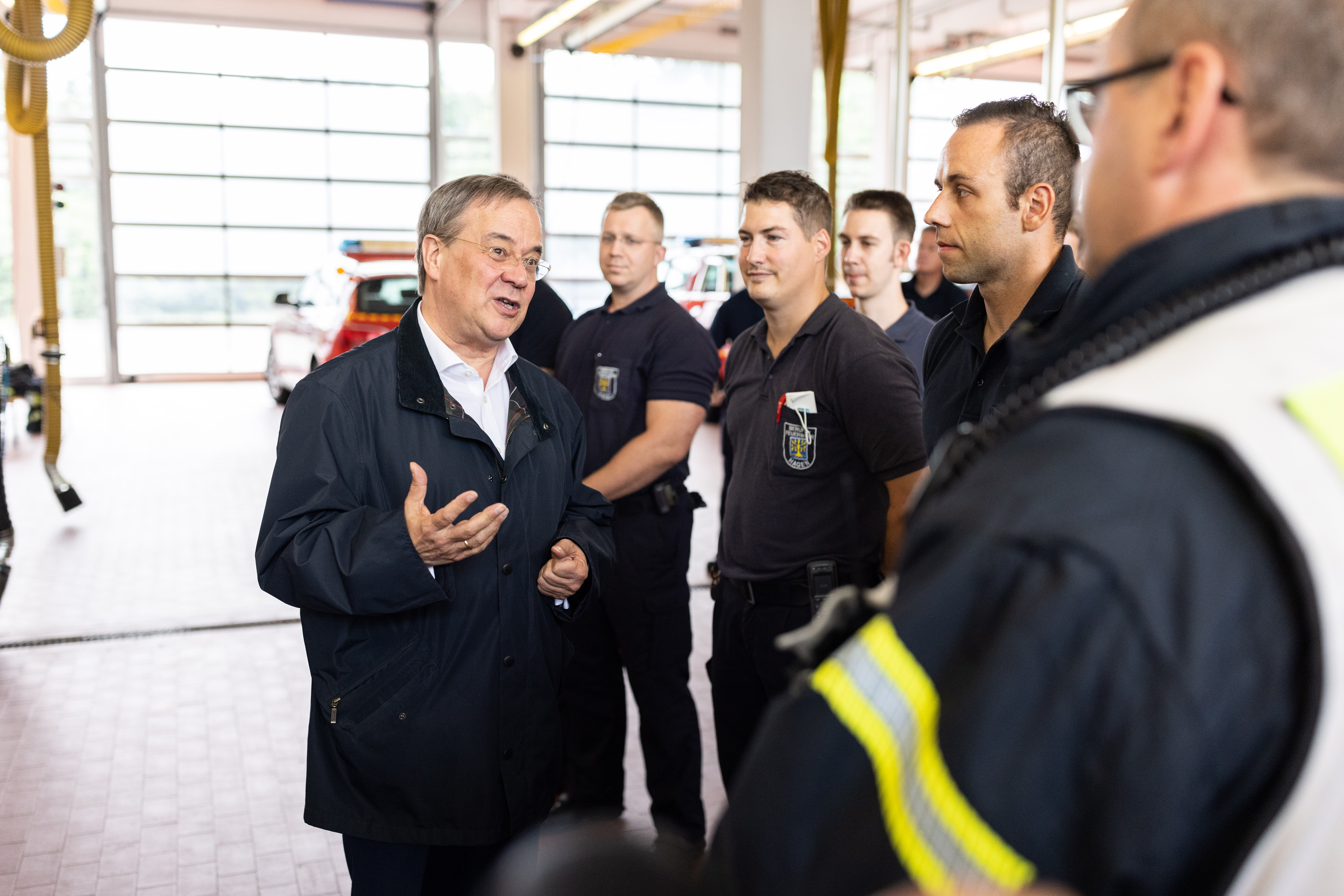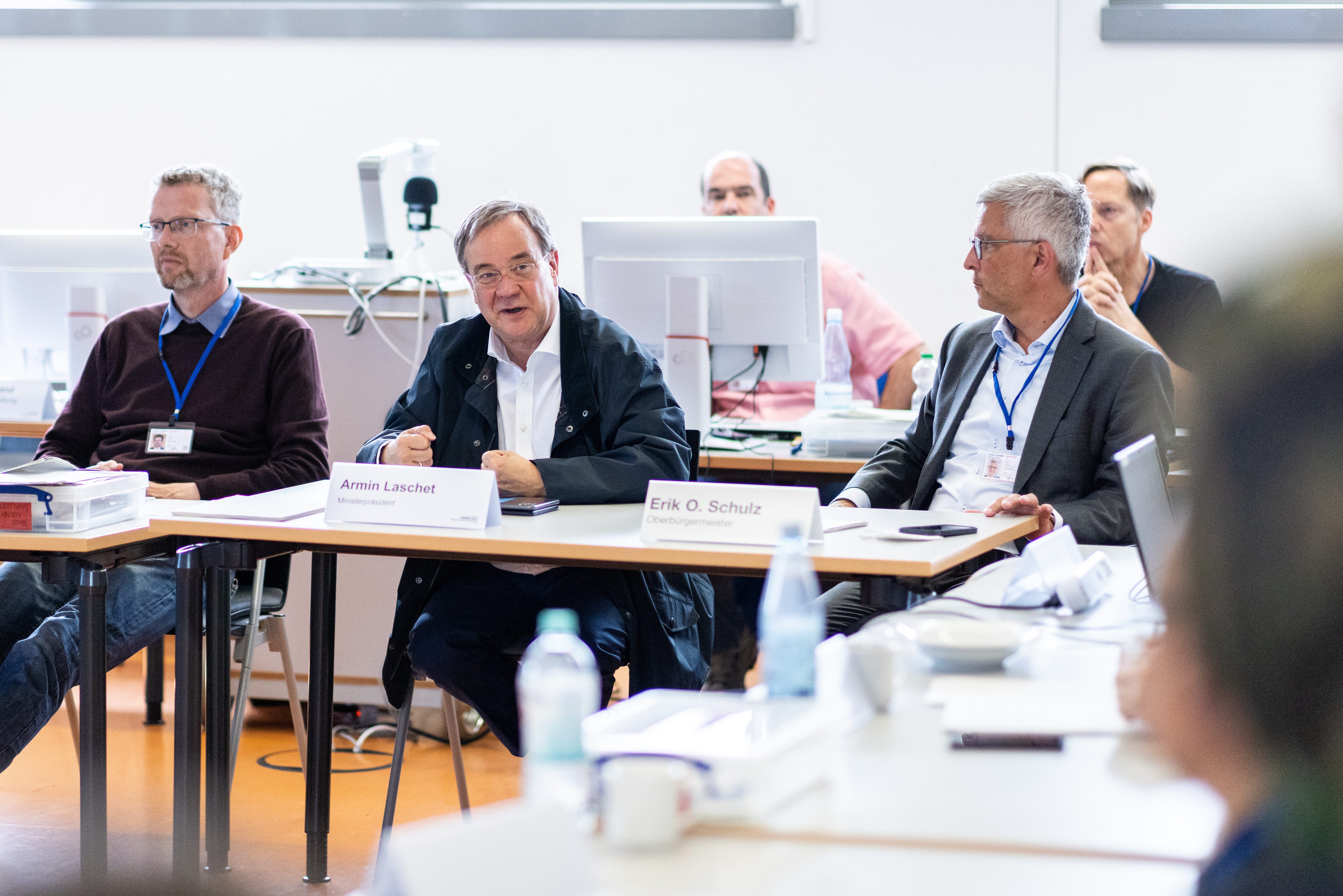 Ministerpräsident Armin Laschet besucht die von Unwettern besonders stark betroffene Stadt Hagen, um sich mit dem Oberbürgermeister Erik O. Schulz im Krisenstab der Stadt ein Bild von der Lage vor Ort zu machen.