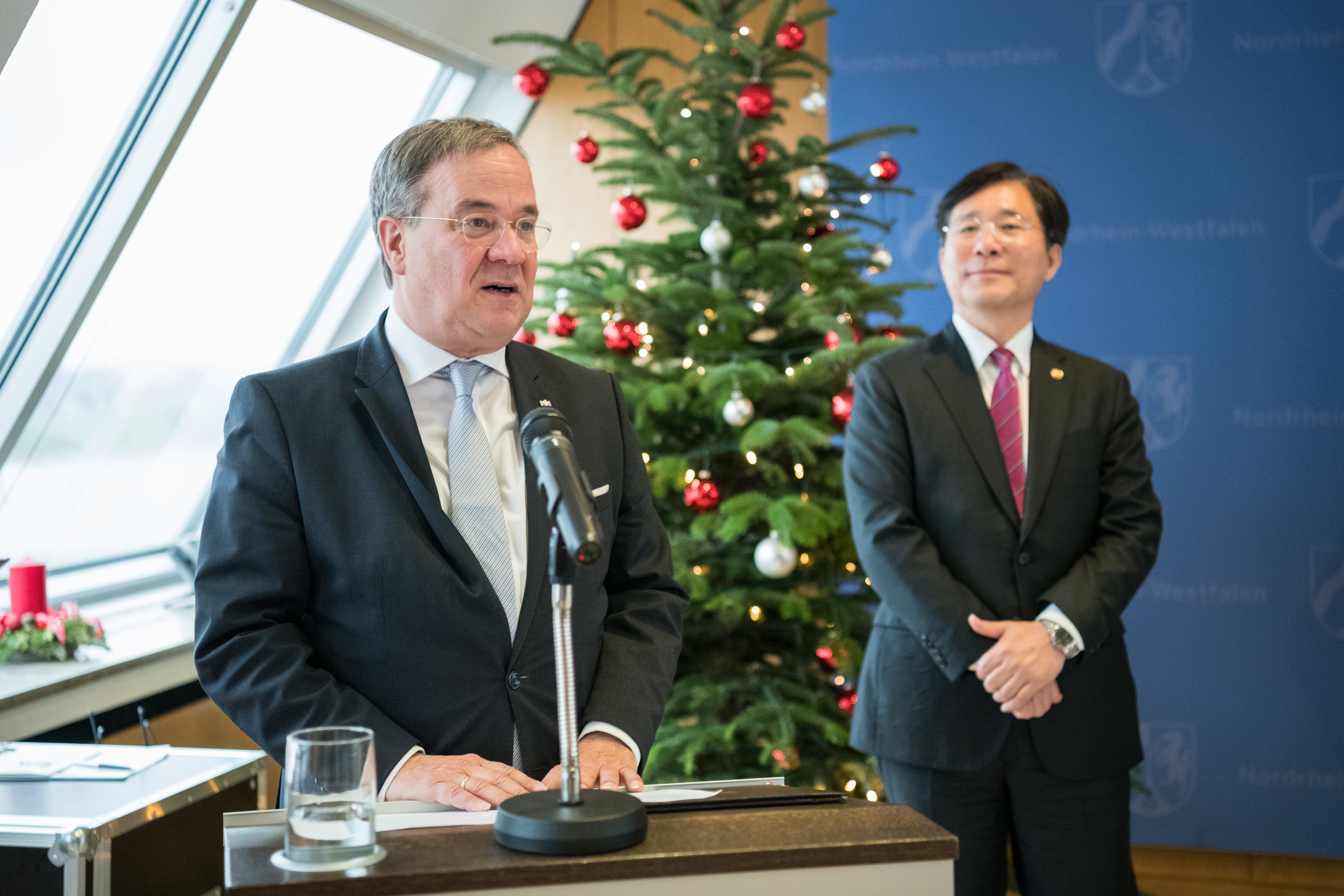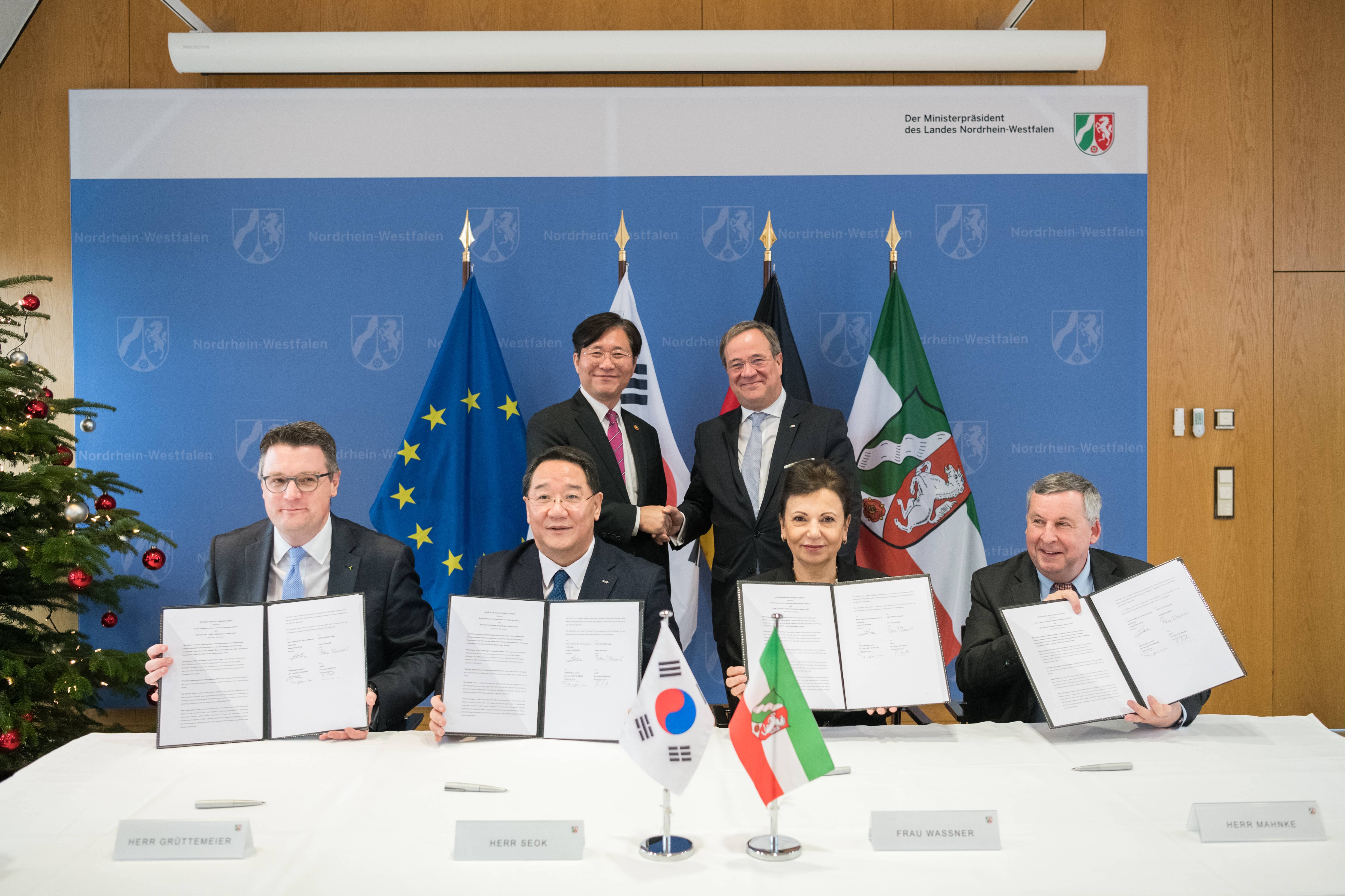 Ministerpräsident Armin Laschet hat den Minister für Handel, Industrie und Energie der Republik Korea, Yun-mo Sung, zu einem Gespräch in der Staatskanzlei in Düsseldorf empfangen. Schwerpunkt des Gesprächs war die wirtschaftliche Zusammenarbeit zwischen Nordrhein-Westfalen und der Republik Korea. Im Anschluss an das Gespräch unterzeichneten Vertreter des Korea Institute for Advancement of Technology (KIAT), der Städteregion Aachen, der Aachener Gesellschaft für Innovation und Technologietransfer (AGIT) und von NRW.INVEST im Beisein des Ministerpräsidenten und des Ministers ein Abkommen zur Gründung eines „Technology Cooperation Center“, eines Forschungs- und Entwicklungszentrums in Herzogenrath.