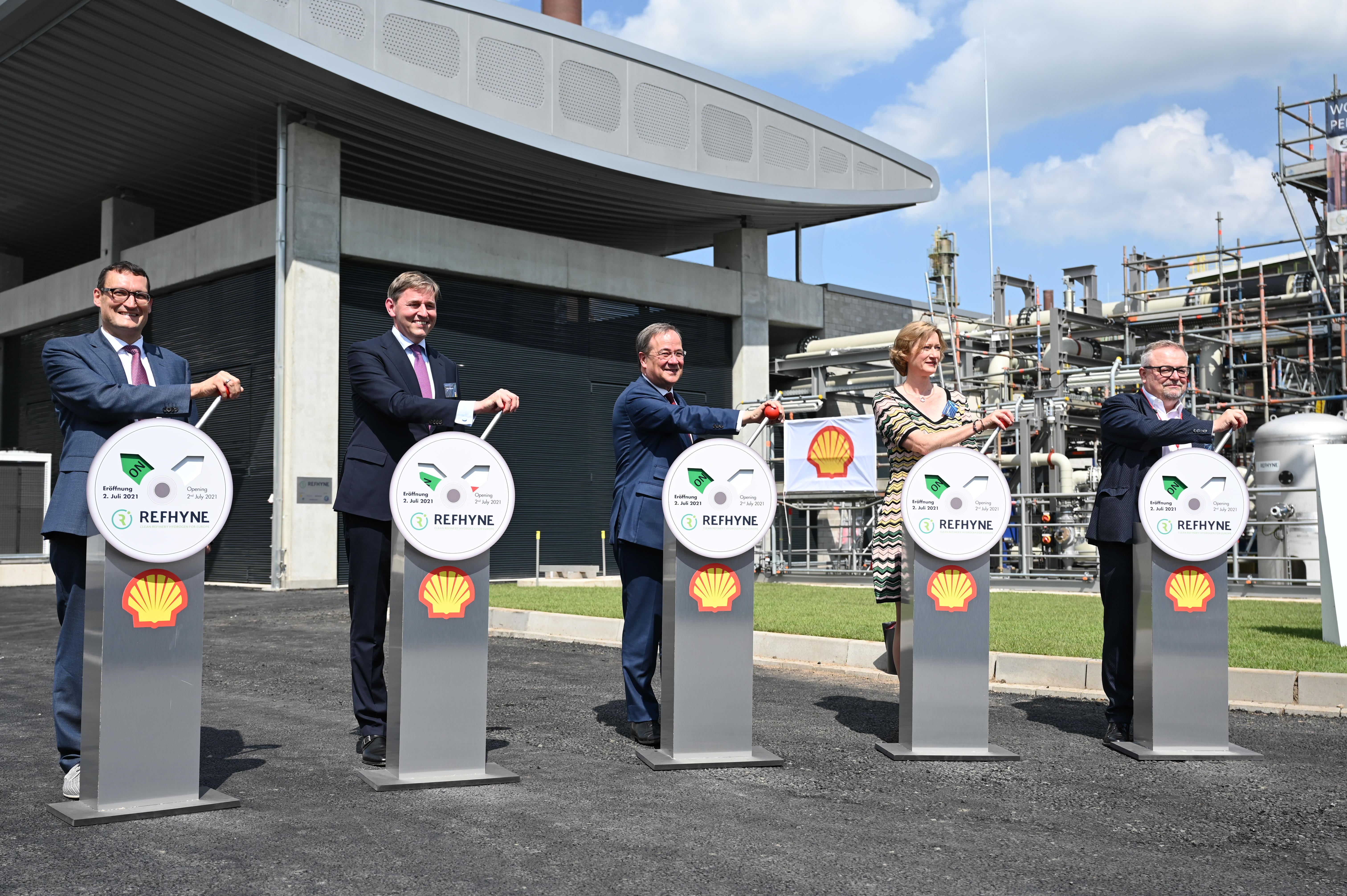 Ministerpräsident Armin Laschet hat am Freitag, 2. Juli, eine der weltweit ersten Anlagen zur Produktion von grünem Wasserstoff auf dem Gelände der „Shell Energy an Chemicals Park Rheinland“ in Wesseling eröffnet. Die Wasserstoff-Elektrolyse-Anlage „REFHYNE“ soll künftig nachhaltigen Flugkraftstoff produzieren.