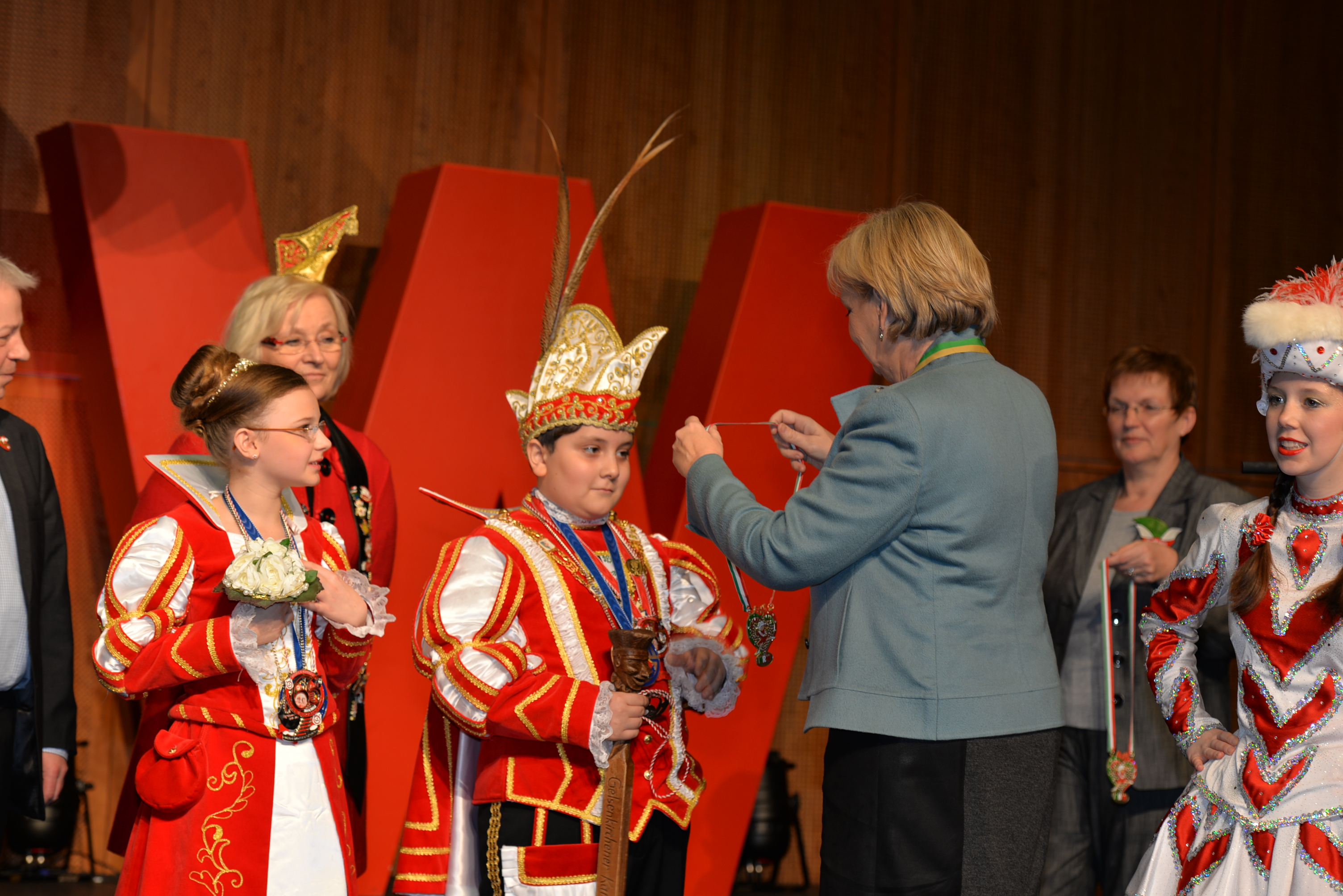 Ministerpräsidentin Hannelore Kraft hat in Gelsenkirchen 27 Kinderprinzenpaare und Kinderdreigestirne aus allen Landesteilen von Nordrhein-Westfalen empfangen.