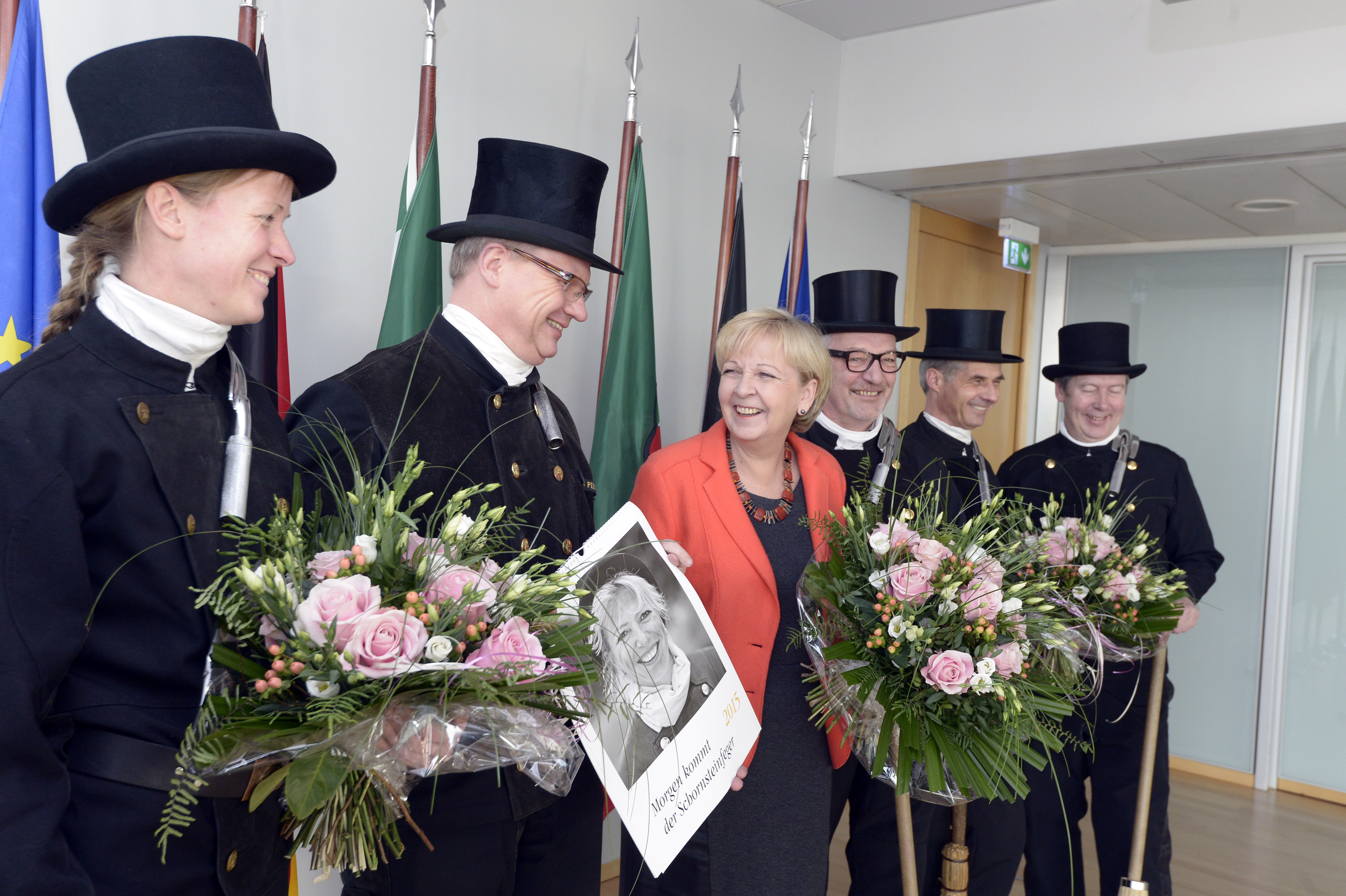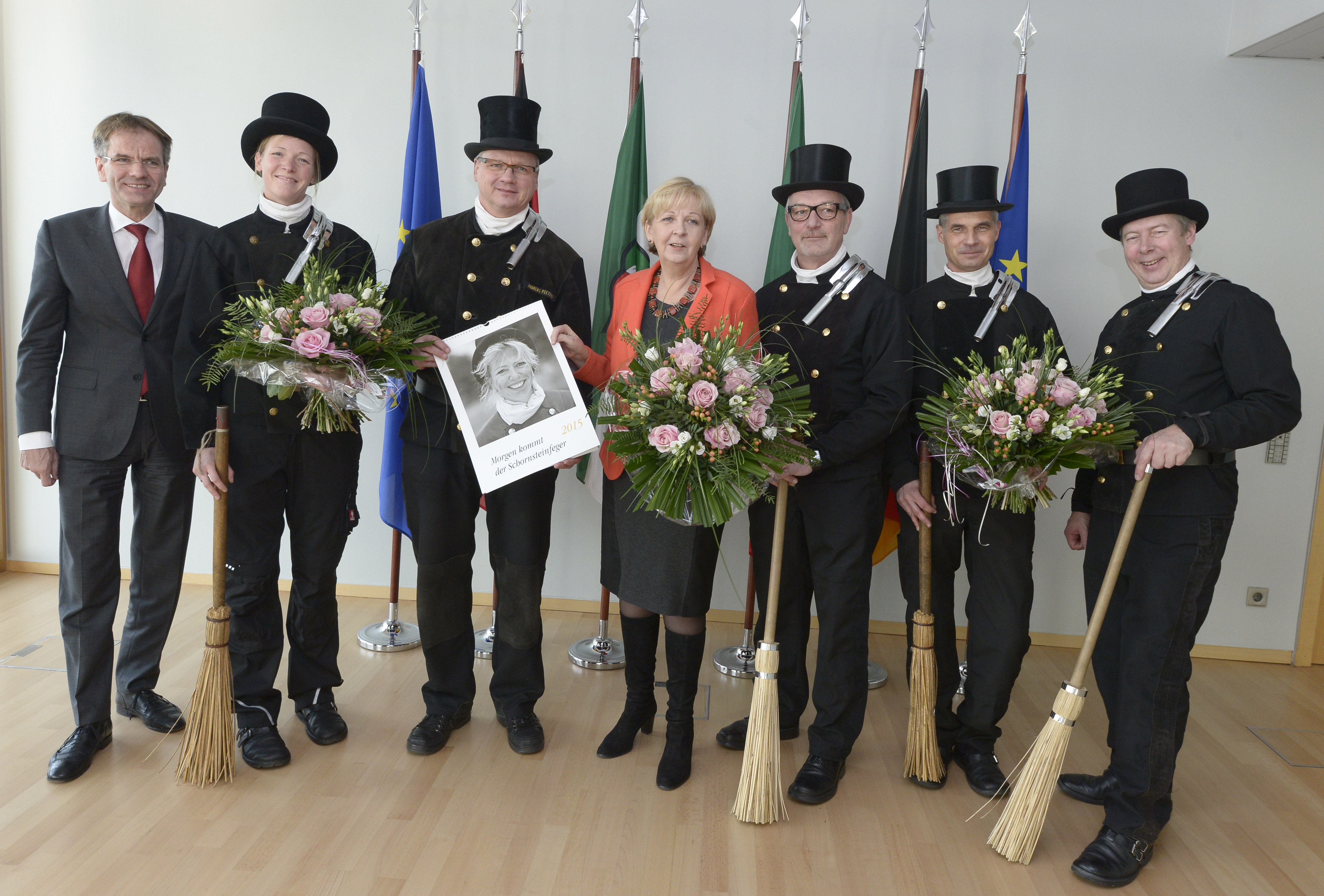 Am Nachmittag des 6. Januars 2015 hieß Ministerpräsidentin Kraft mehrere Vertreter des Fachverbands des Schornsteinfegerhandwerks NRW willkommen. Diese überbrachten ihre Neujahrswünsche der Ministerpräsidentin stellvertretend für die Landesregierung und auch für die Bürgerinnen und Bürger von Nordrhein-Westfalen.