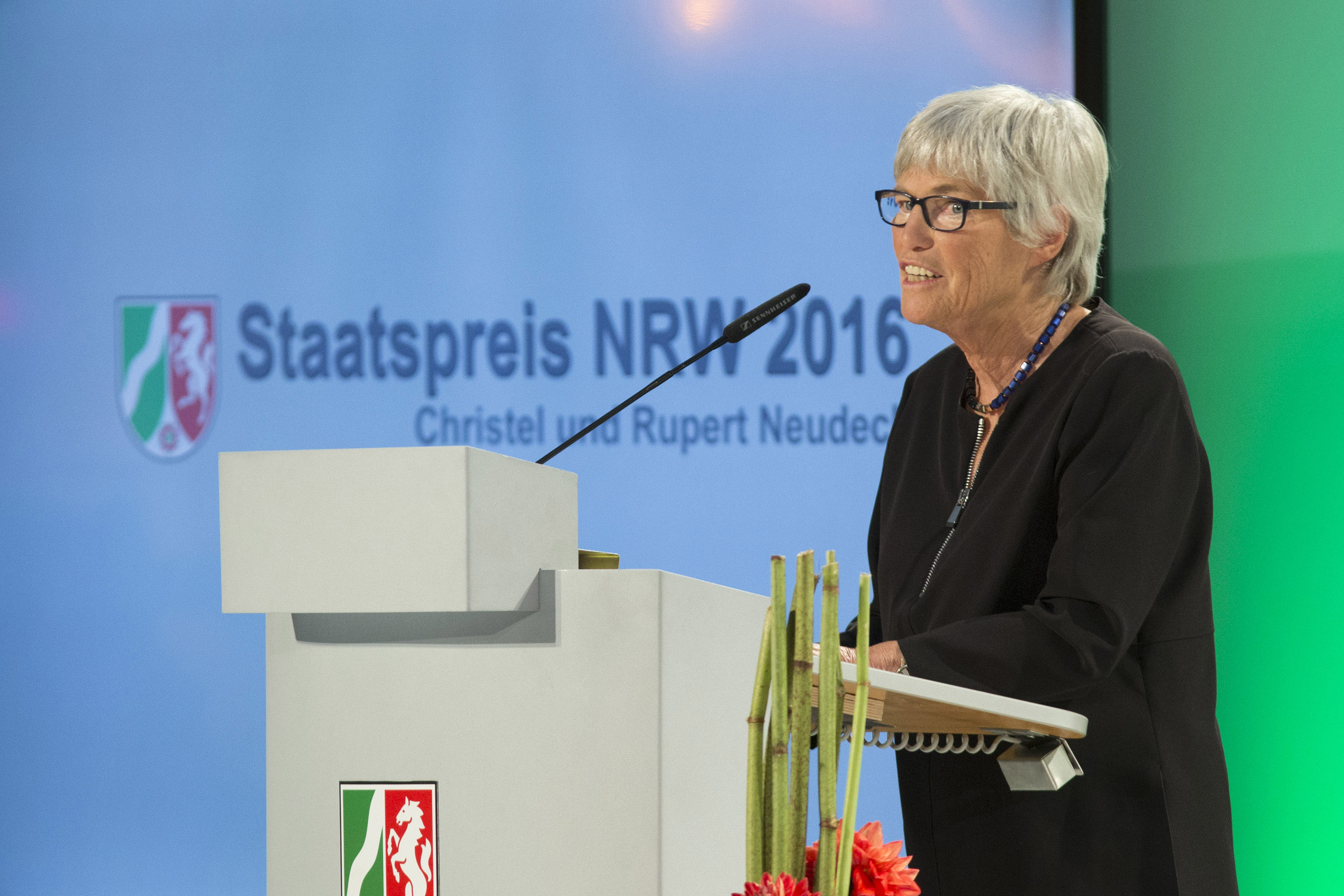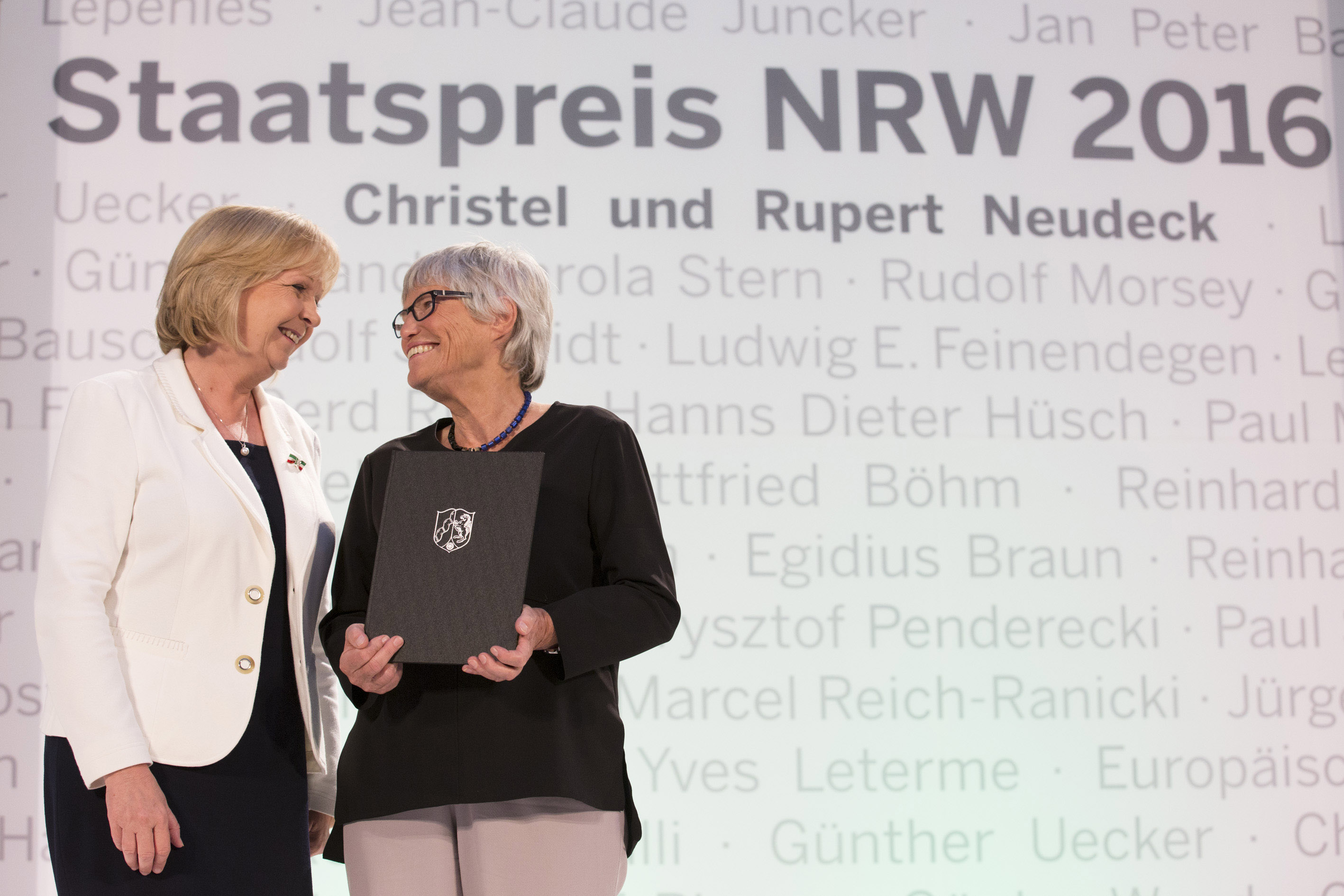 Ministerpräsidentin Hannelore Kraft hat den diesjährigen Staatspreis an Christel Neudeck und Rupert Neudeck (posthum) verliehen.