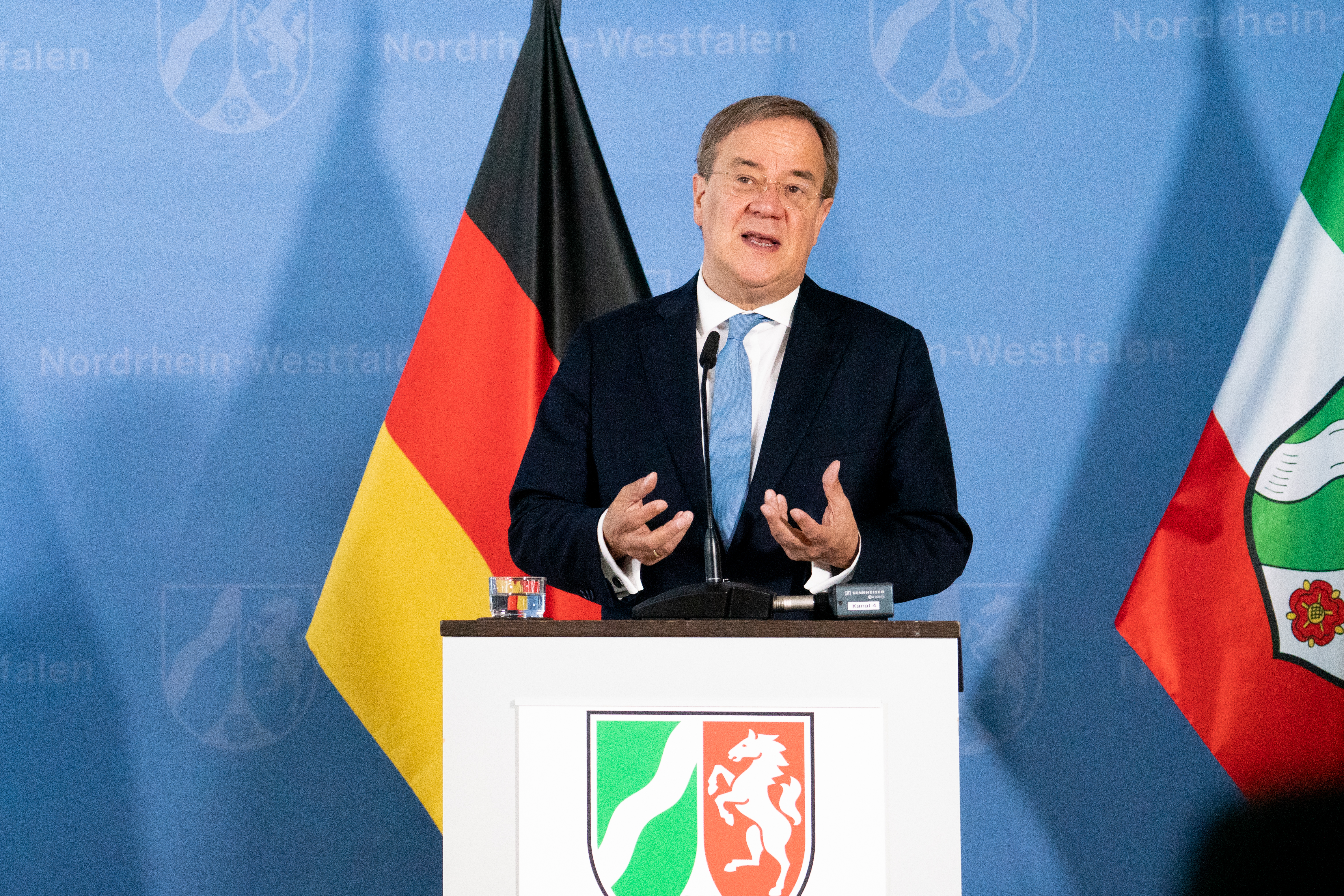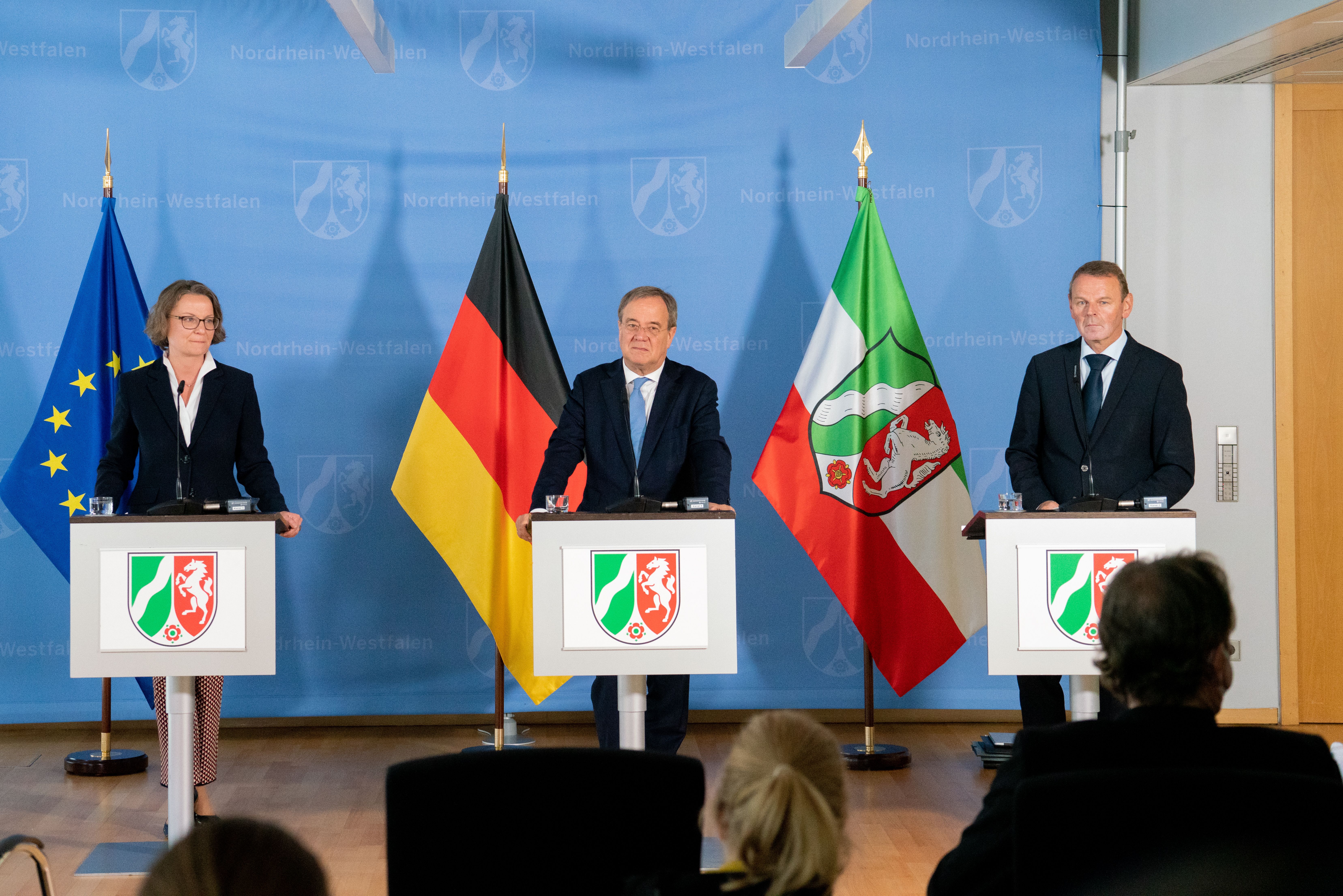 Ministerpräsident Armin Laschet stellt gemeinsam mit der Ministerin für Heimat, Kommunales, Bau und Gleichstellung Ina Scharrenbach den Beauftragten für den Wiederaufbau in den Flutgebieten, Dr. Fritz Jaeckel, vor und informiert zum aktuellen Stand und dem weiteren Vorgehen beim Wiederaufbau in den von der Hochwasserkatastrophe betroffenen Regionen in Nordrhein-Westfalen.