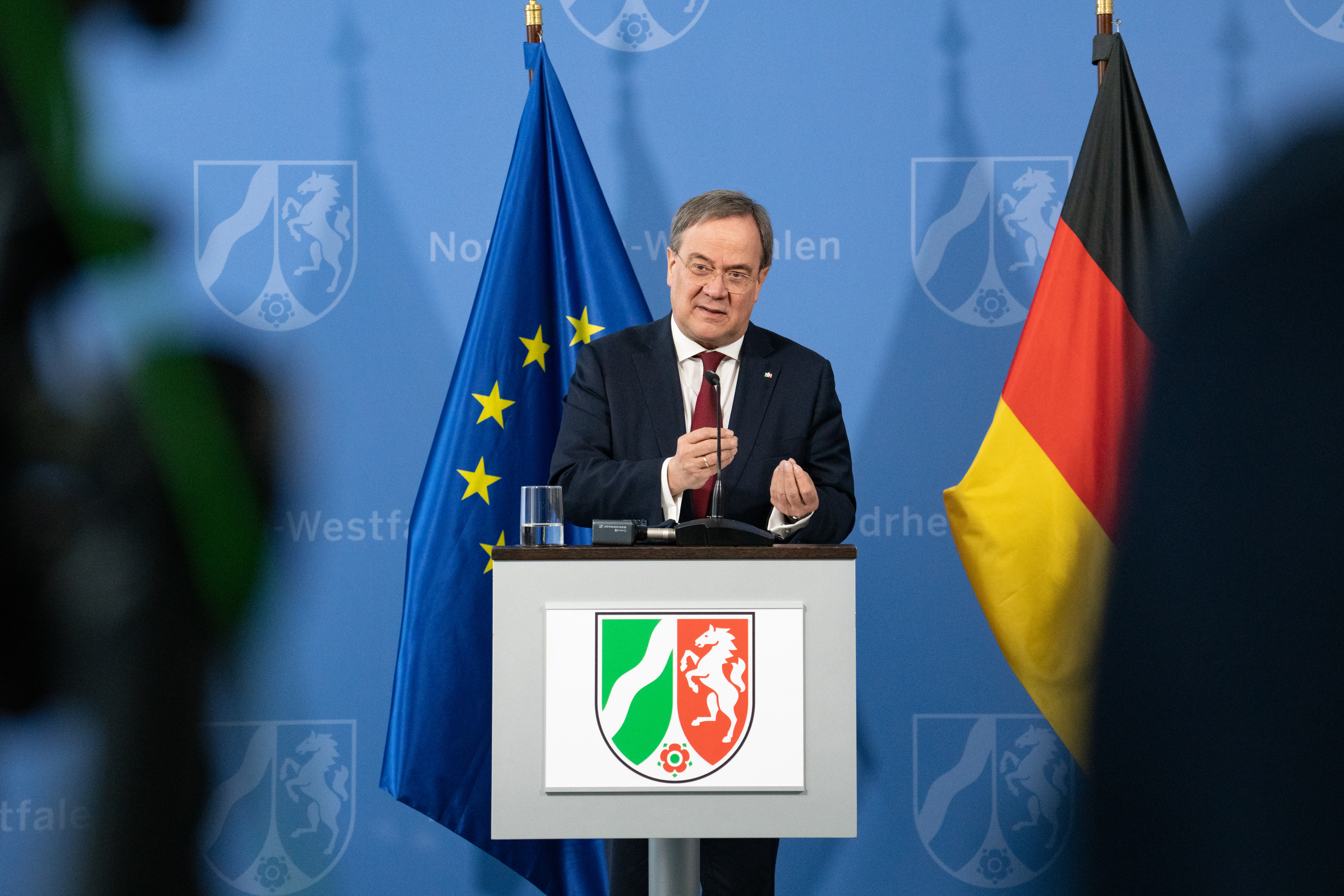 Ministerpräsident Armin Laschet und der stellvertretende Ministerpräsident Joachim Stamp informieren in einem Presse-Statement zur aktuellen Lage der Corona-Virus-Pandemie.
