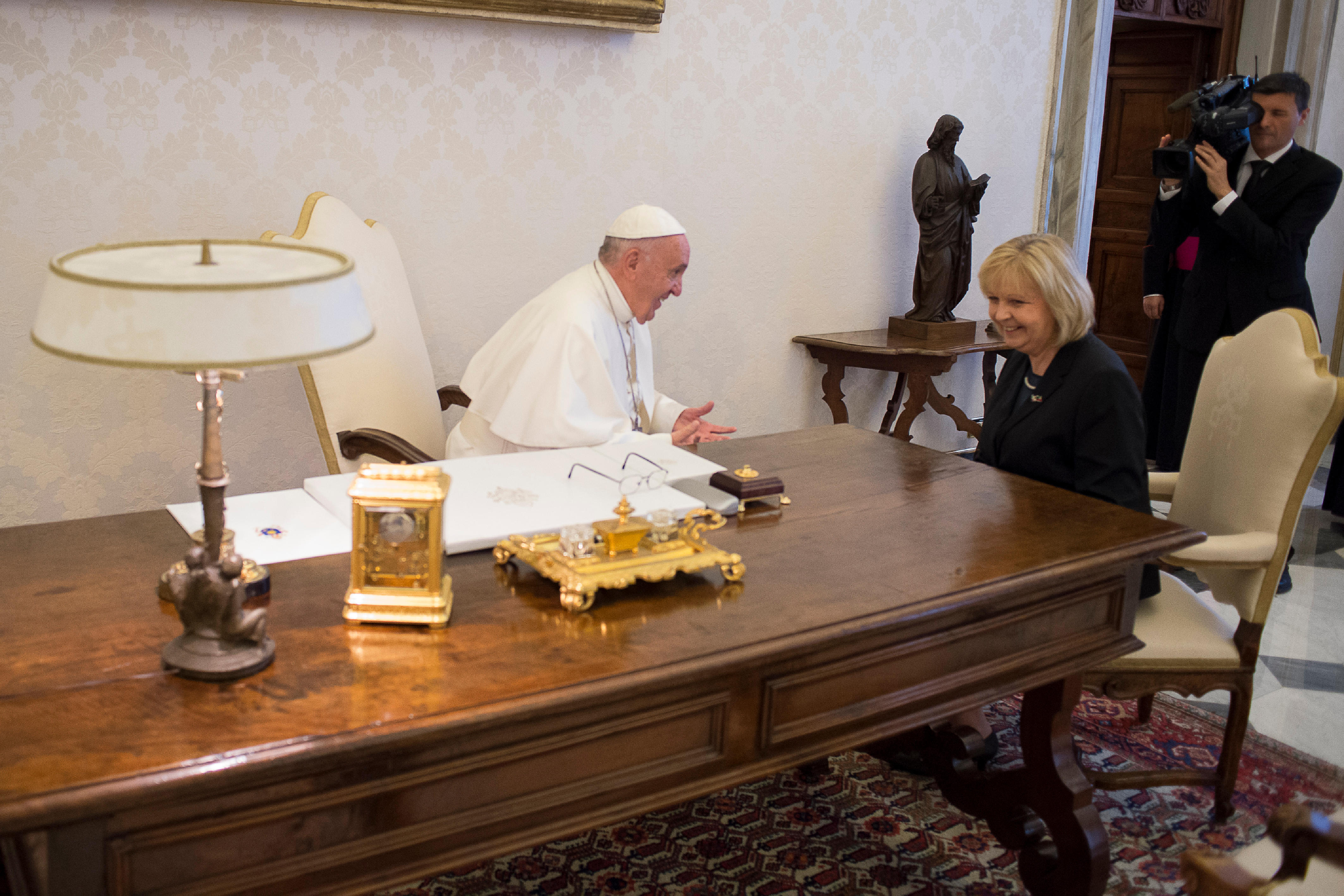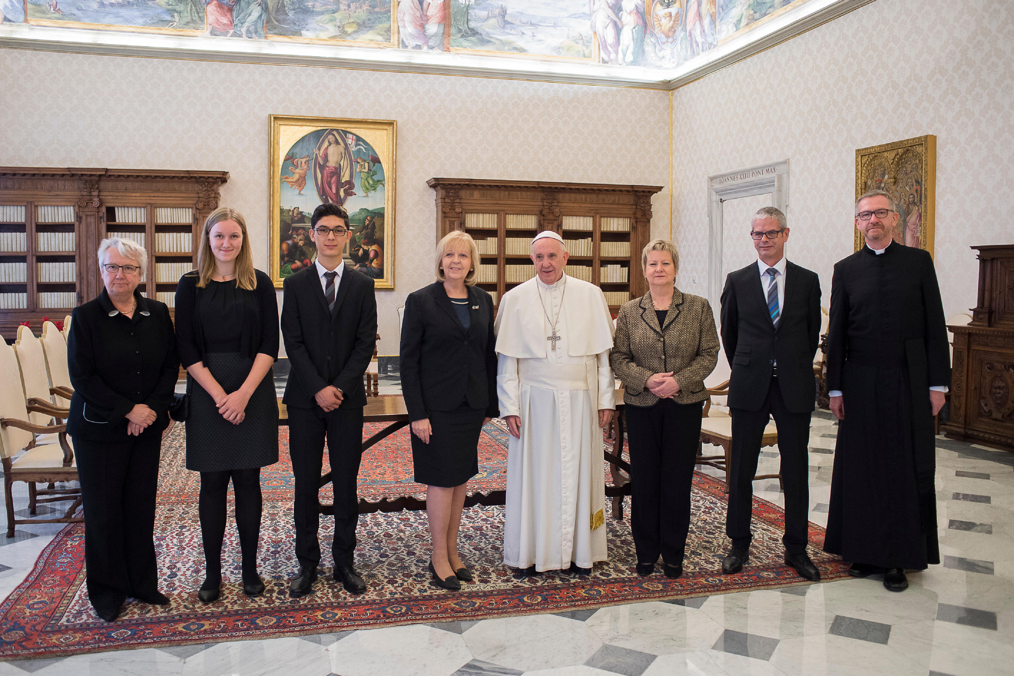 Ministerpräsidentin Hannelore Kraft und die stellvertretende Ministerpräsidentin Sylvia Löhrmann wurden am Samstag mit einer Delegation in Rom von Papst Franziskus zu einer Privataudienz empfangen.