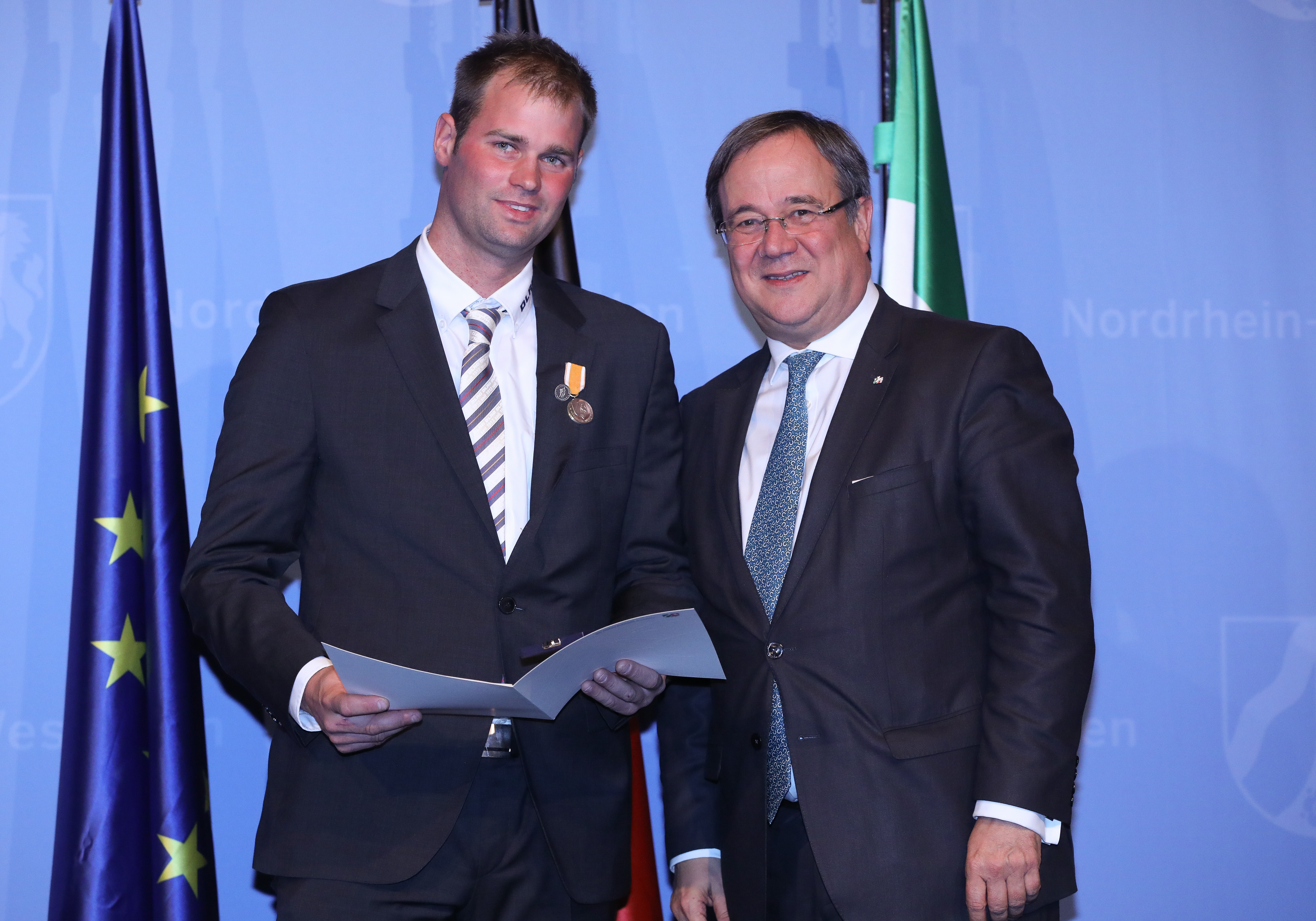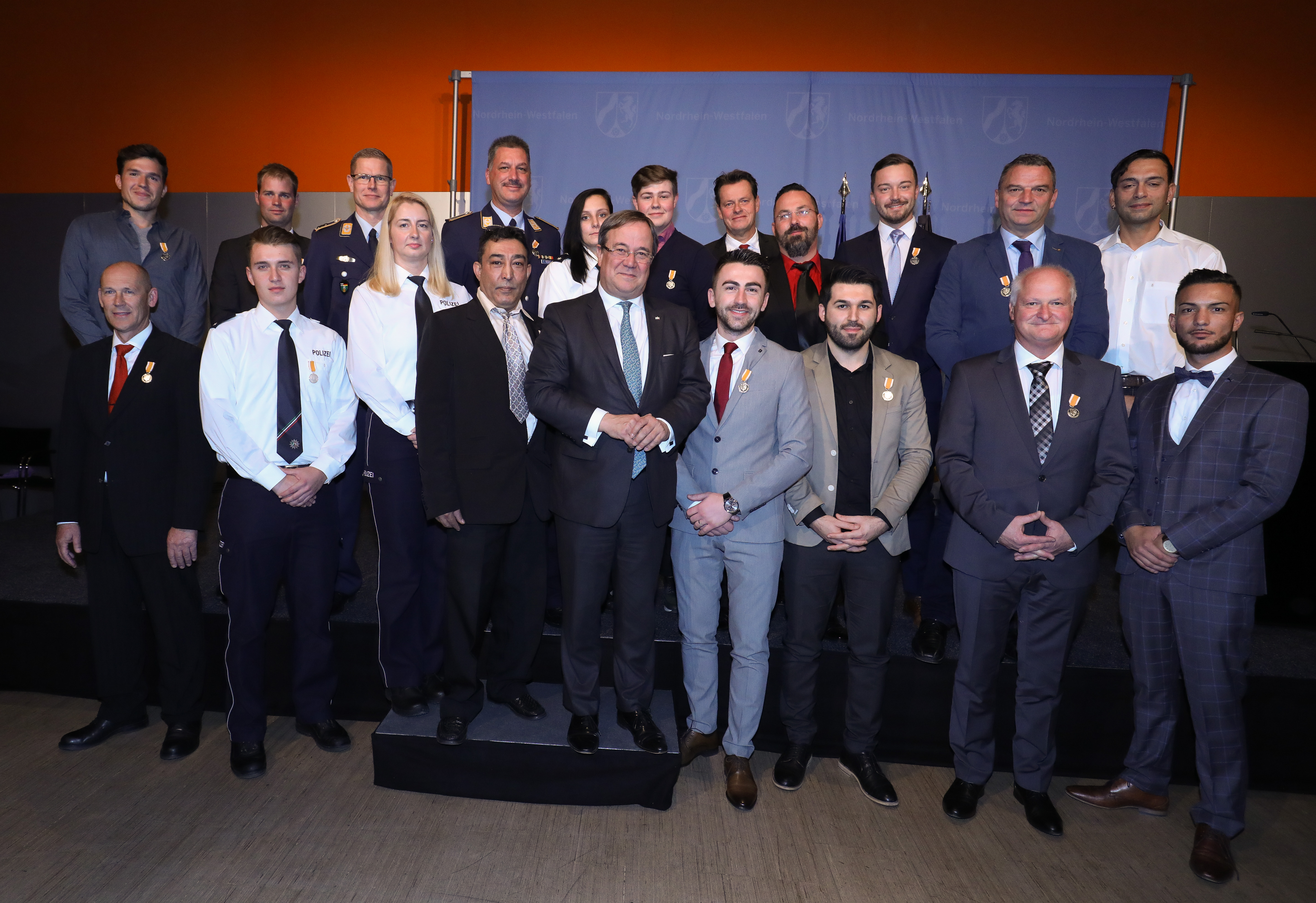 Ministerpräsident Armin Laschet im Weltkulturerbe Zollverein 21 Retterinnen und Retter mit der Rettungsmedaille des Landes Nordrhein-Westfalen ausgezeichnet.