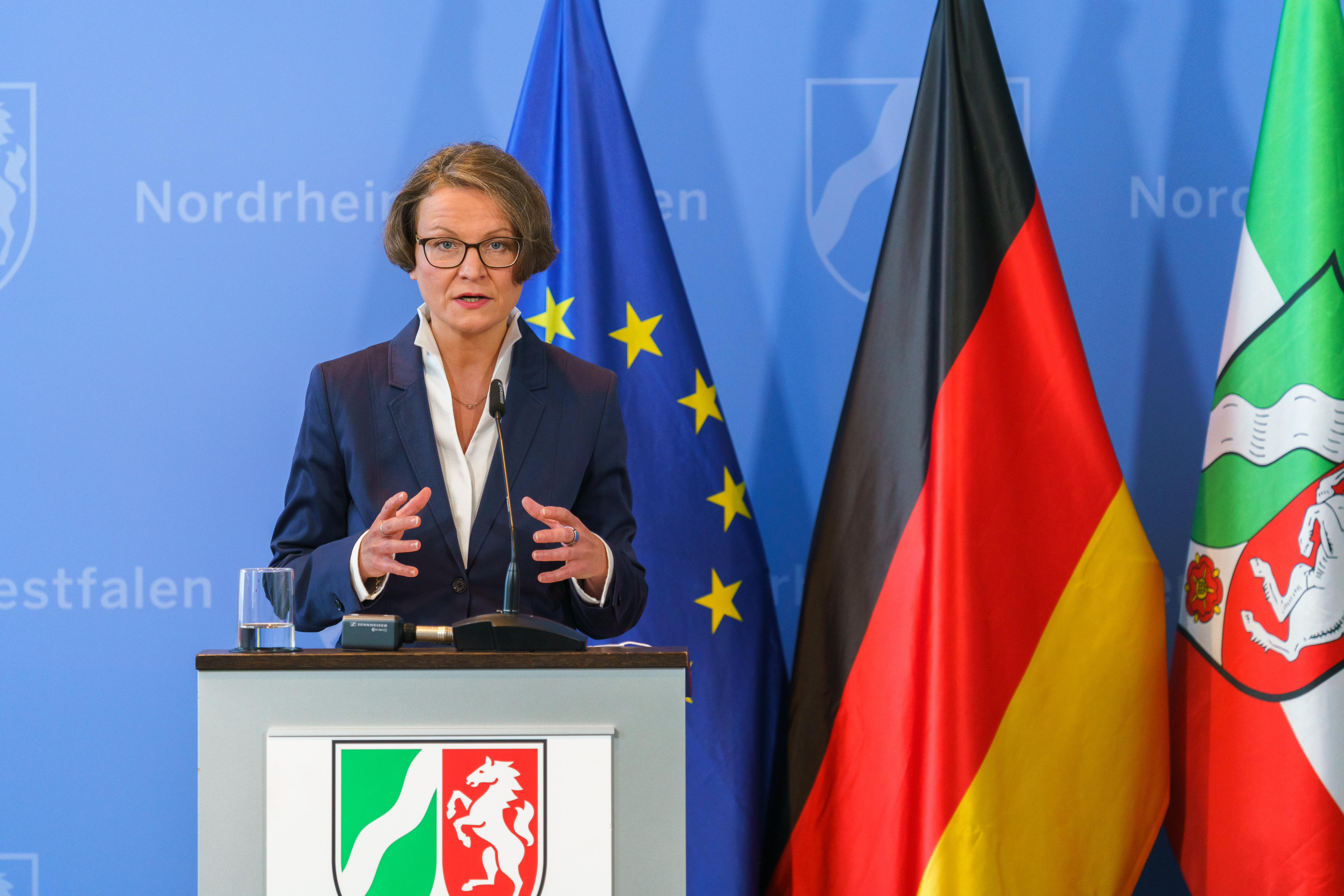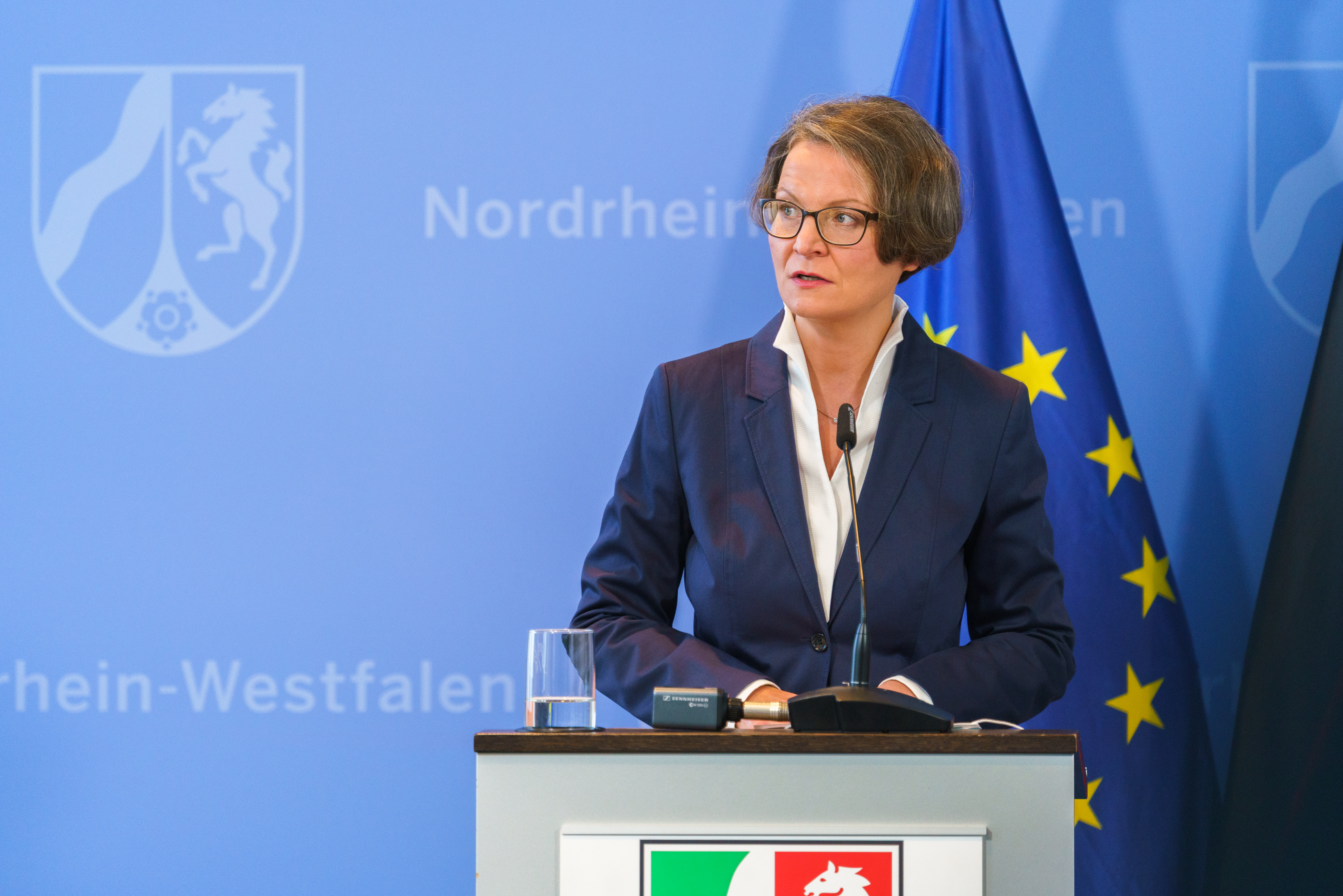 Schulministerin Yvonne Gebauer und Kommunalministerin Ina Scharrenbach informieren über den angepassten Schulbetrieb in Corona-Zeiten nach den Herbstferien.