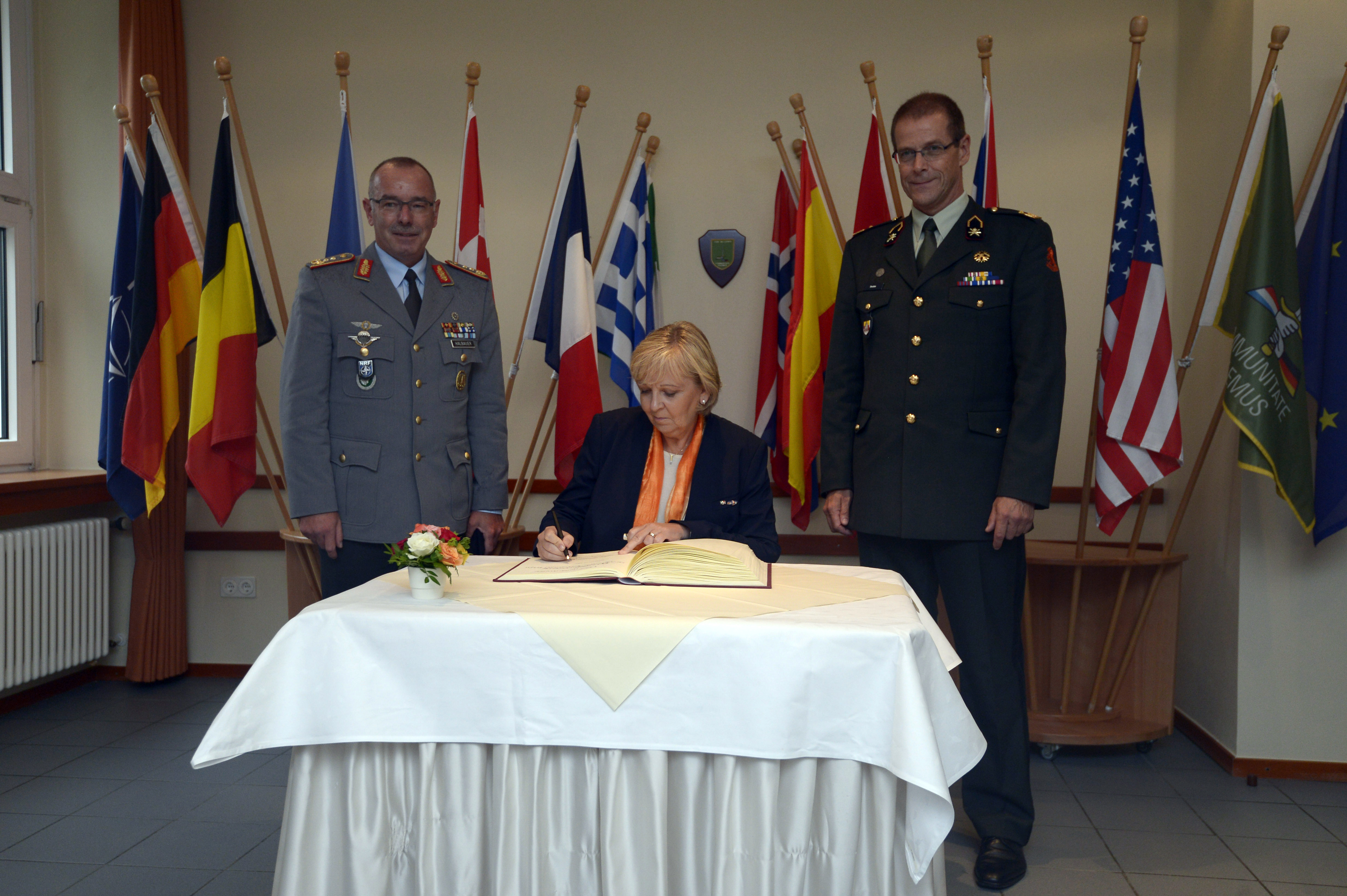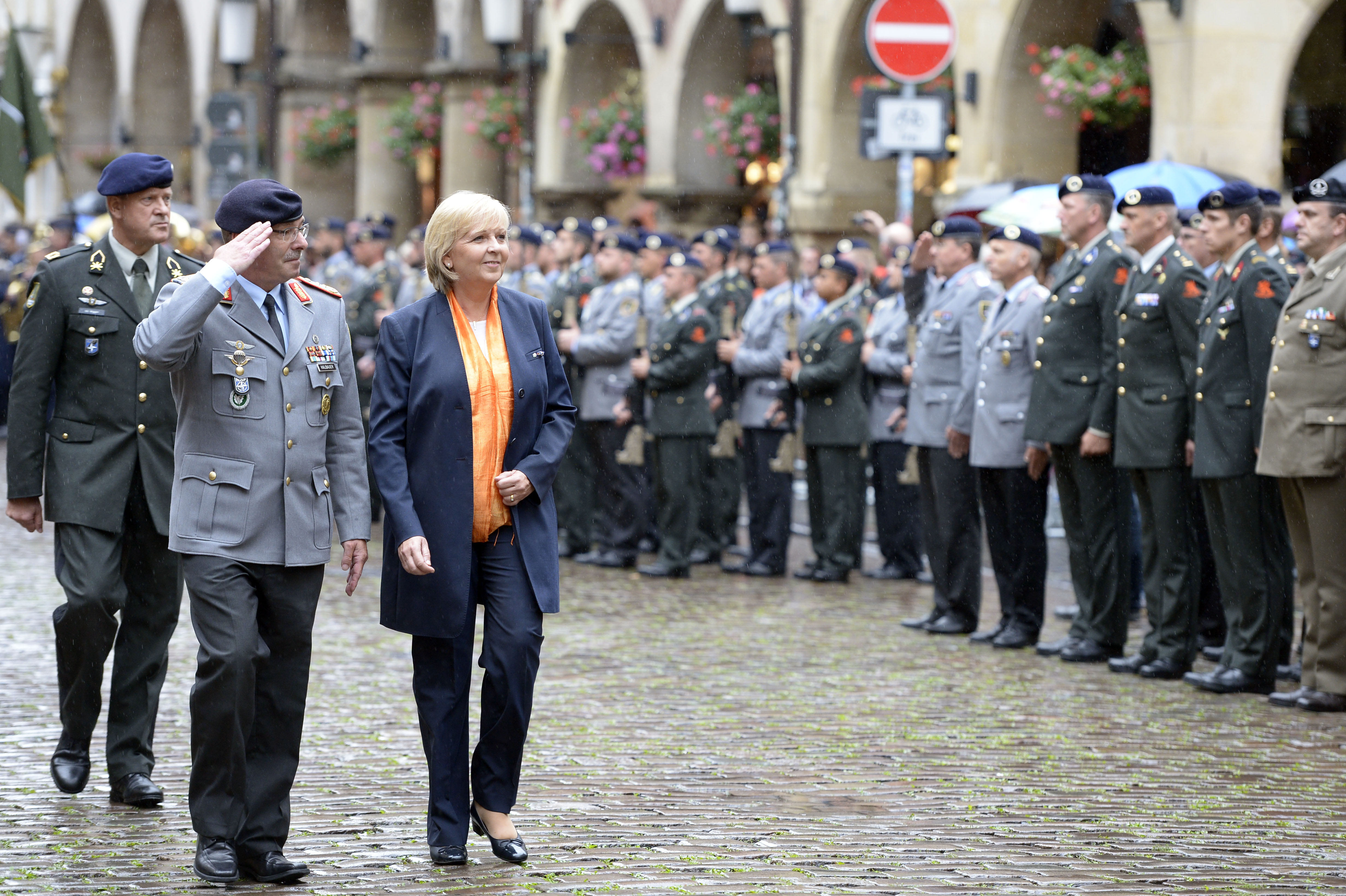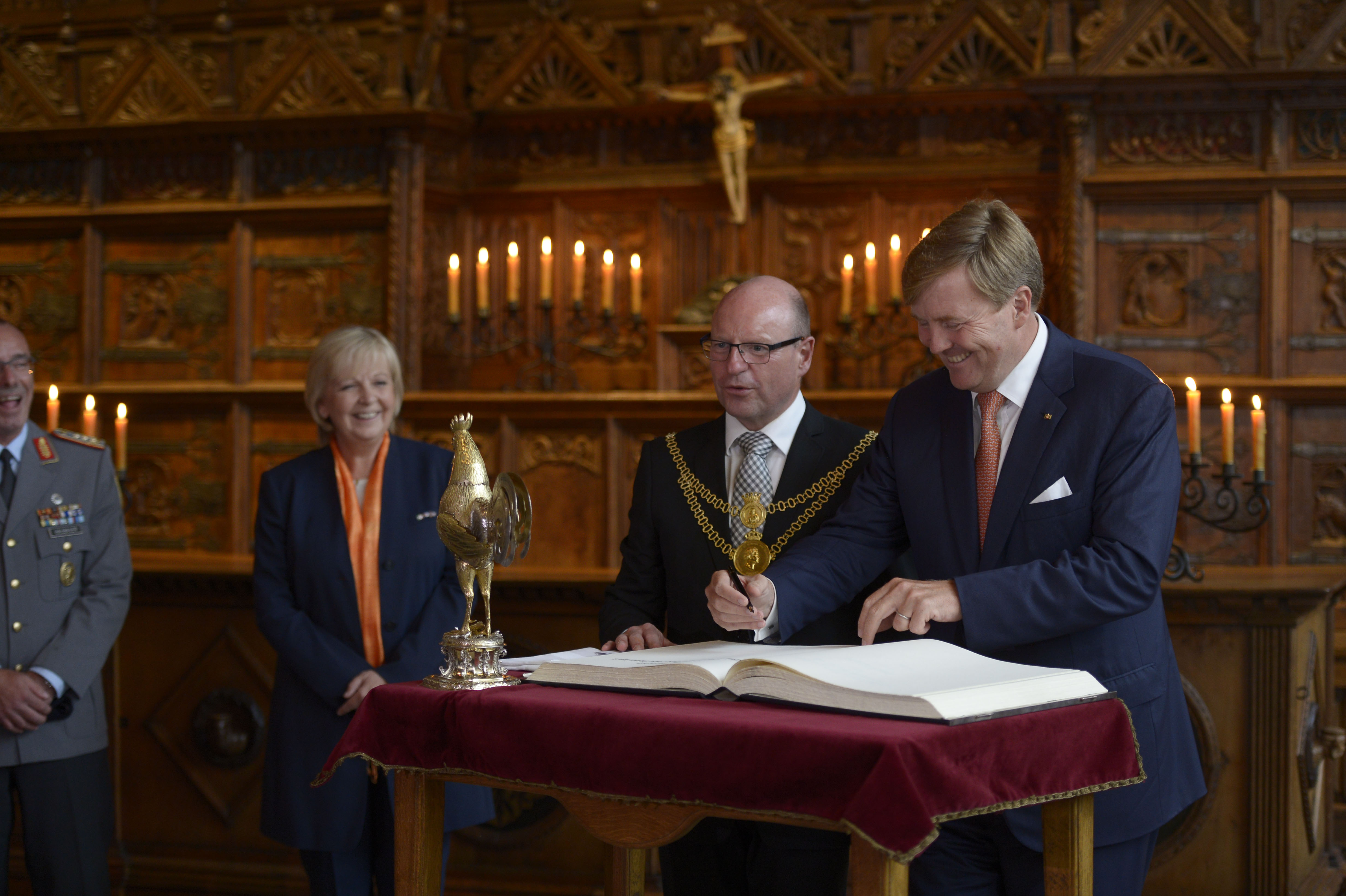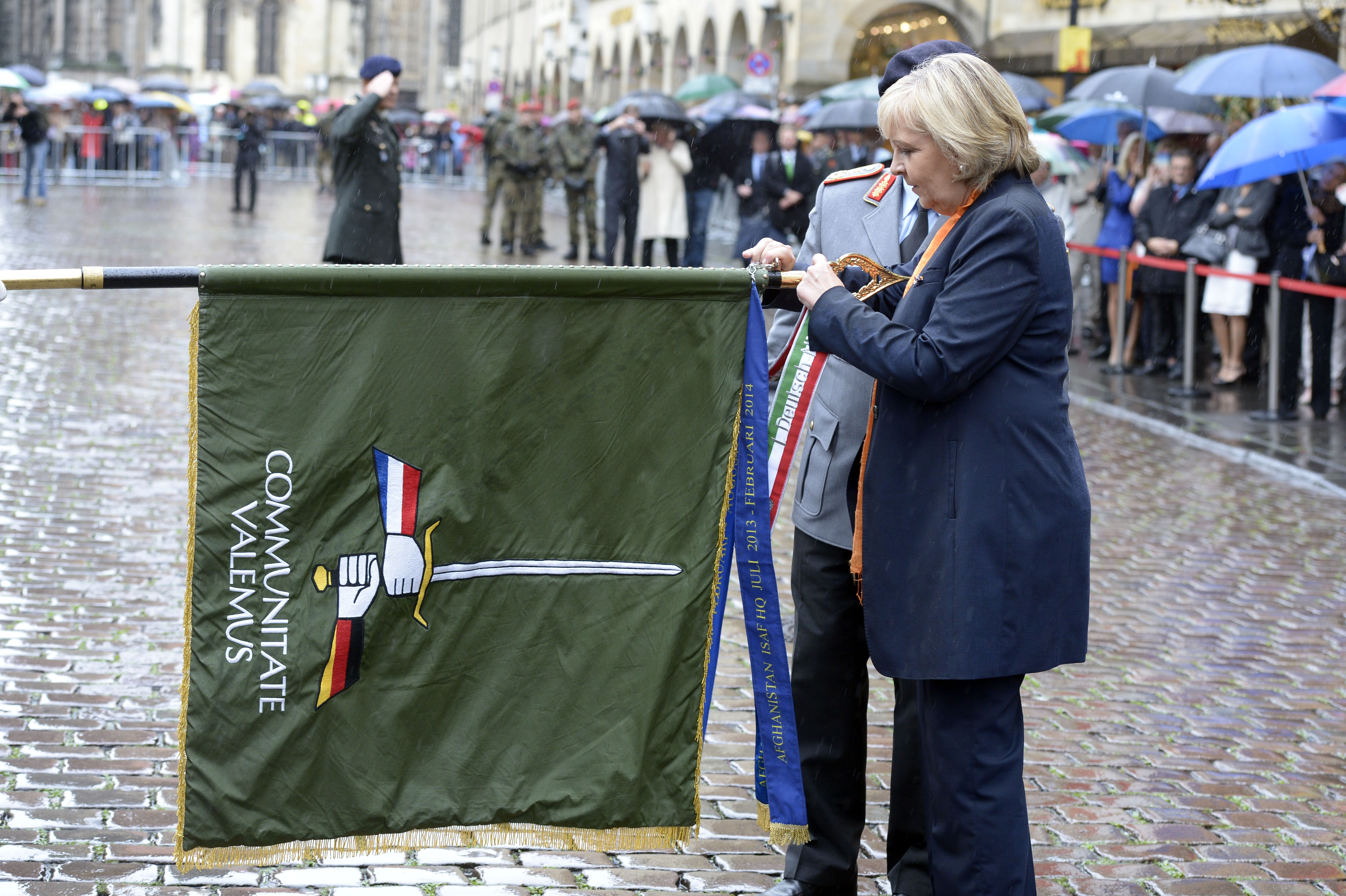 Ministerpräsidentin Hannelore Kraft hat das Fahnenband des Landes Nordrhein-Westfalen im Beisein S.M. König Willem-Alexander der Niederlande an das 1. Deutsch-Niederländische Korps in Münster verliehen.