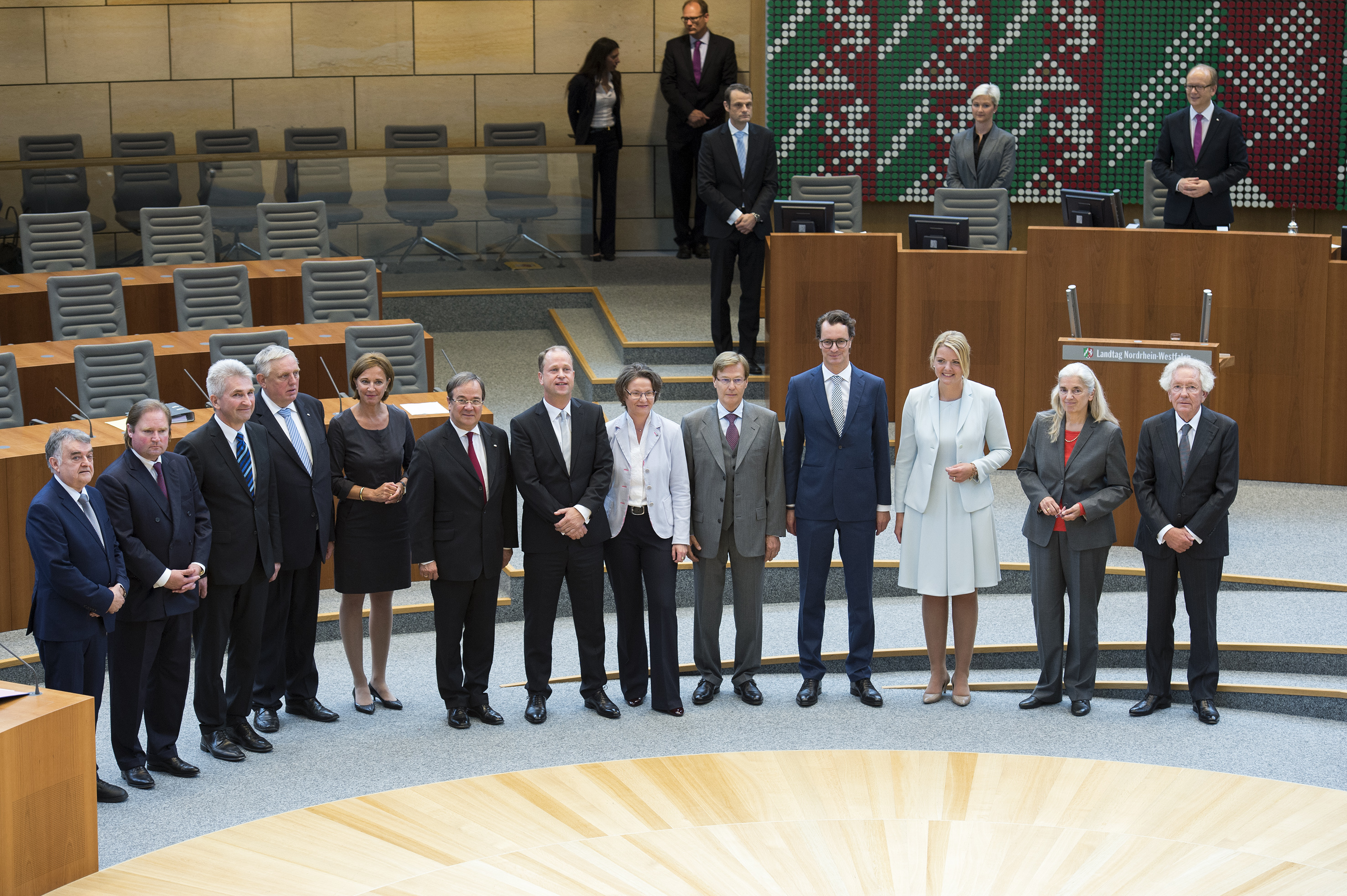 Ministerpräsident Armin Laschet hatte zuvor sein Kabinett in der Staatskanzlei offiziell ernannt. Dem neuen Kabinett gehören zwölf Ministerinnen und Minister an.