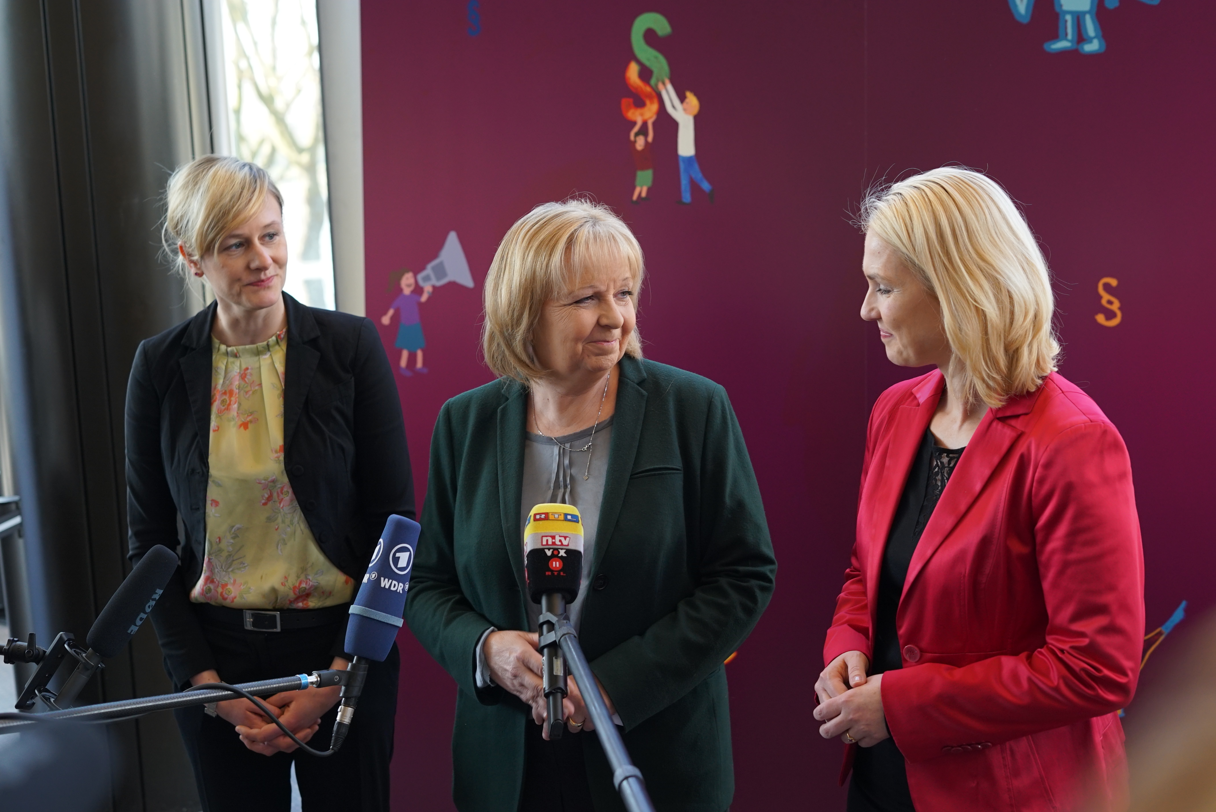 NRW-Ministerpräsidentin Hannelore Kraft, die Bundesministerin für Familie, Senioren, Frauen und Jugend, Manuela Schwesig, und die Ministerin für Familie, Kinder, Jugend, Kultur und Sport des Landes Nordrhein-Westfalen, Christina Kampmann, gaben im Rahmen des Deutschen Kinder- und Jugendhilfetages ein Pressestatement zum Thema Kinderrechte ab.
