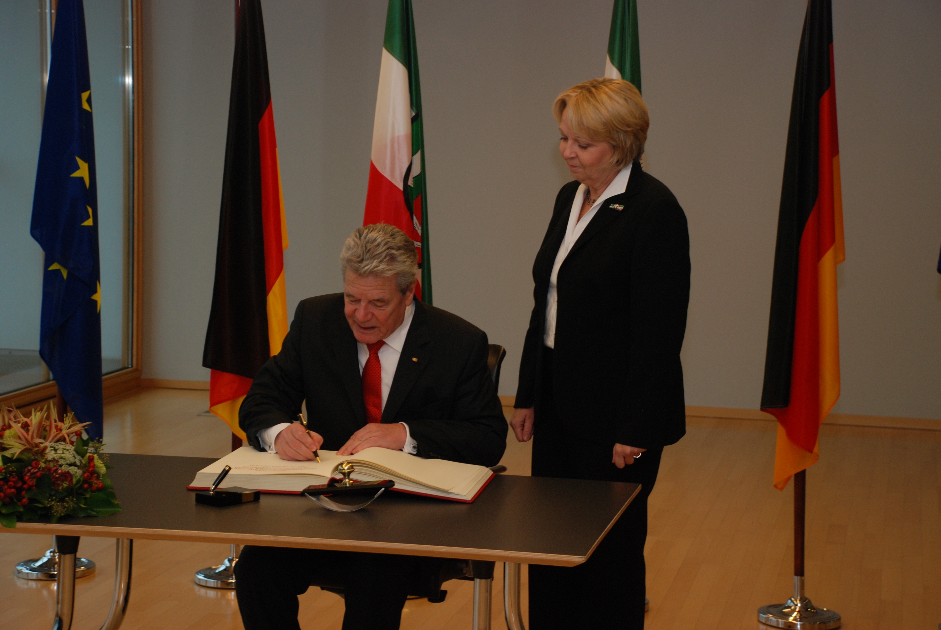 Sie sind hier:StartseiteNRW informierenMediathek Staatskanzlei NRW / Foto: Wolfgang Meyer-Piehl Antrittsbesuch des Bundespräsidenten, 26.11.2012 26.11.2012: Antrittsbesuch von Bundespräsident Joachim Gauck in Nordrhein-Westfalen. Eintragung in das Gästebuch der Landesregierung. Mediendetails Dateityp Bild Auflösung 3872 x 2592 px Download (4 MB)