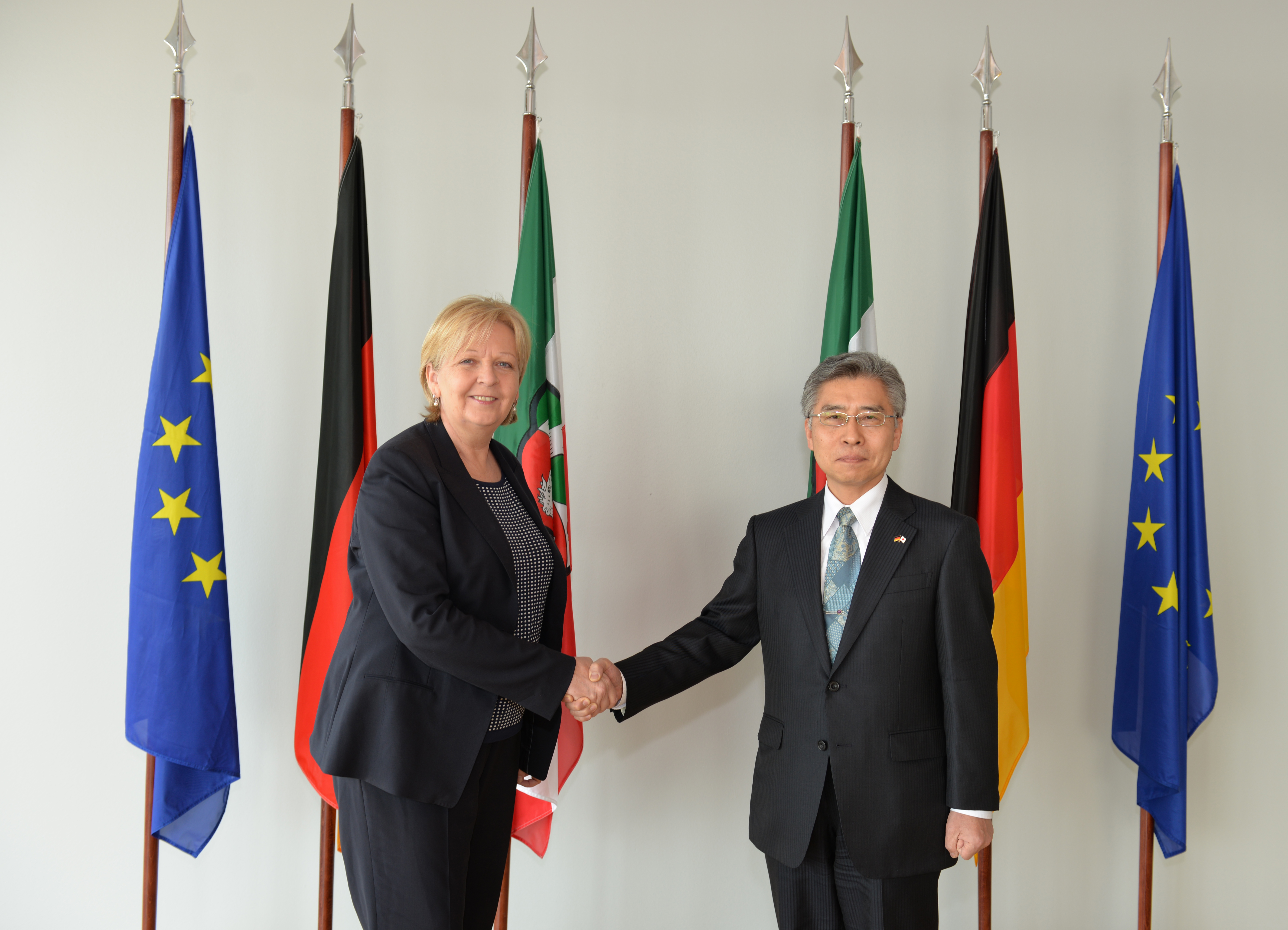 Ministerpräsidentin Hannelore Kraft empfängt am 21. März 2014 den japanischen Generalkonsuls Kaoru Shimazaki zu einem Gespräch im Rahmen seines Antrittsbesuchs.